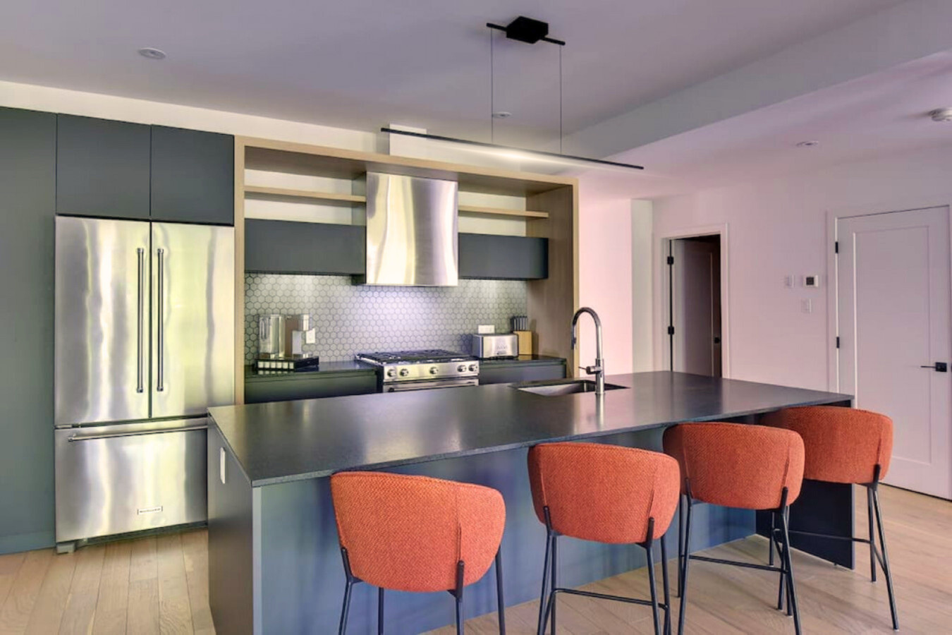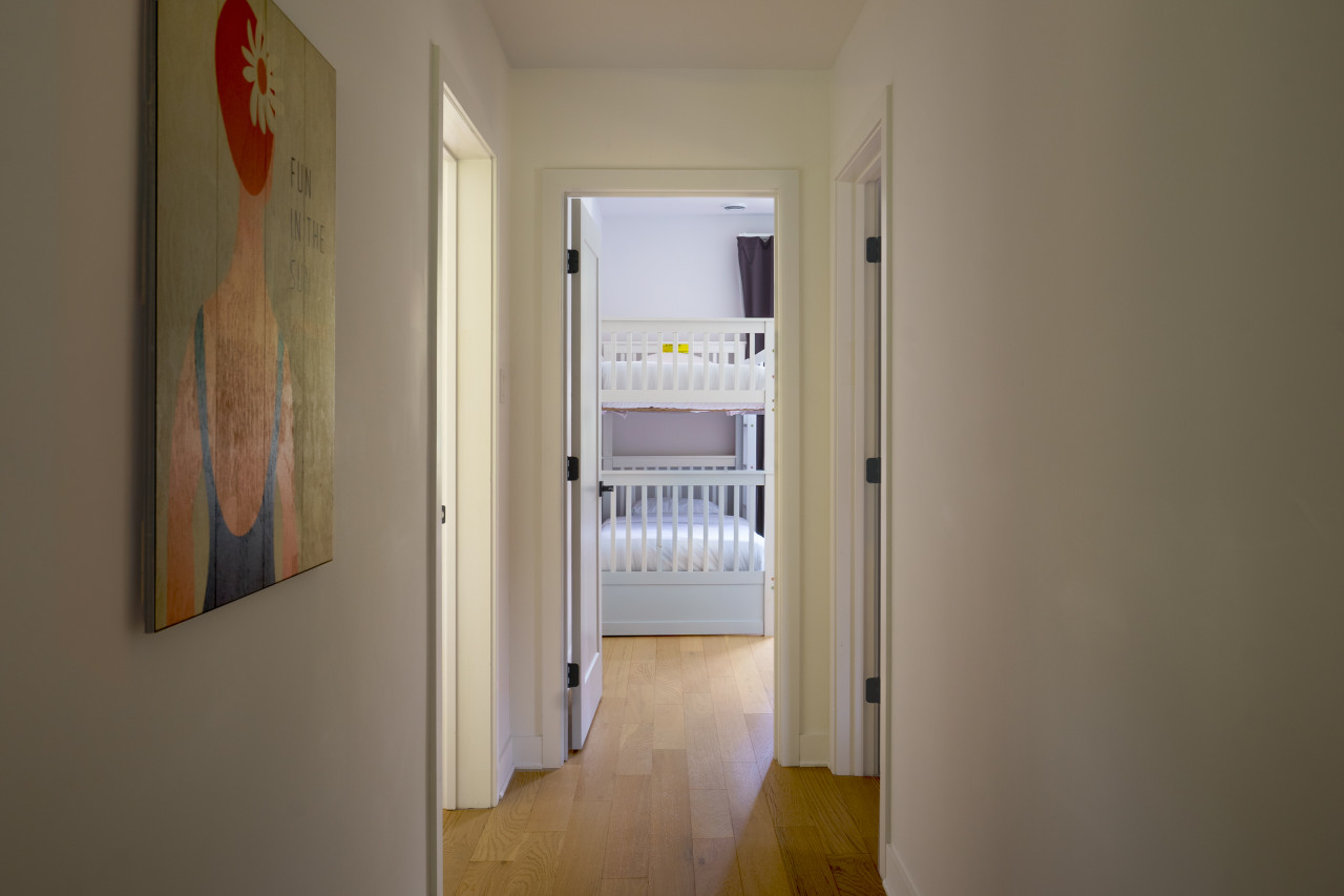 Cet appartement lumineux situé au rez-de-chaussée peut accueillir jusqu'à 8 personnes avec deux chambres king size et une chambre queen size. Profitez d'un salon confortable avec une cheminée à gaz, d'une cuisine entièrement équipée avec un grand îlot et d'une salle de bain avec chauffage au sol.