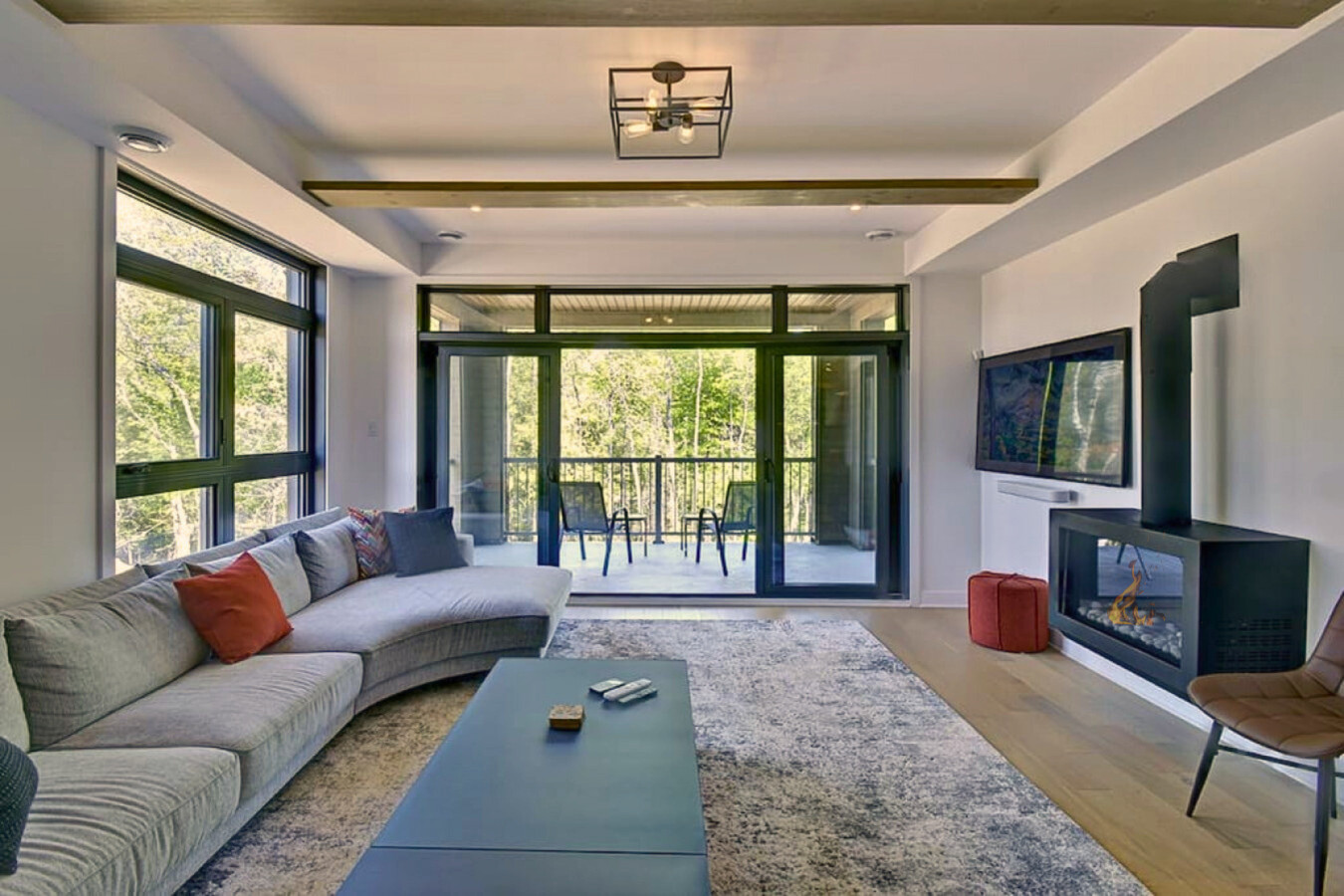 Bienvenue dans notre appartement moderne de 3 chambres et 2 salles de bain situé sur le parcours de golf Le Géant, à moins d'un kilomètre du village de Mont-Tremblant et des pistes. Profitez d'un service de navette gratuit, d'une vue sur la forêt et les montagnes, d'un parking souterrain avec recharge pour véhicules électriques et d'un design ouvert et élégant, idéal pour les familles ou les groupes.