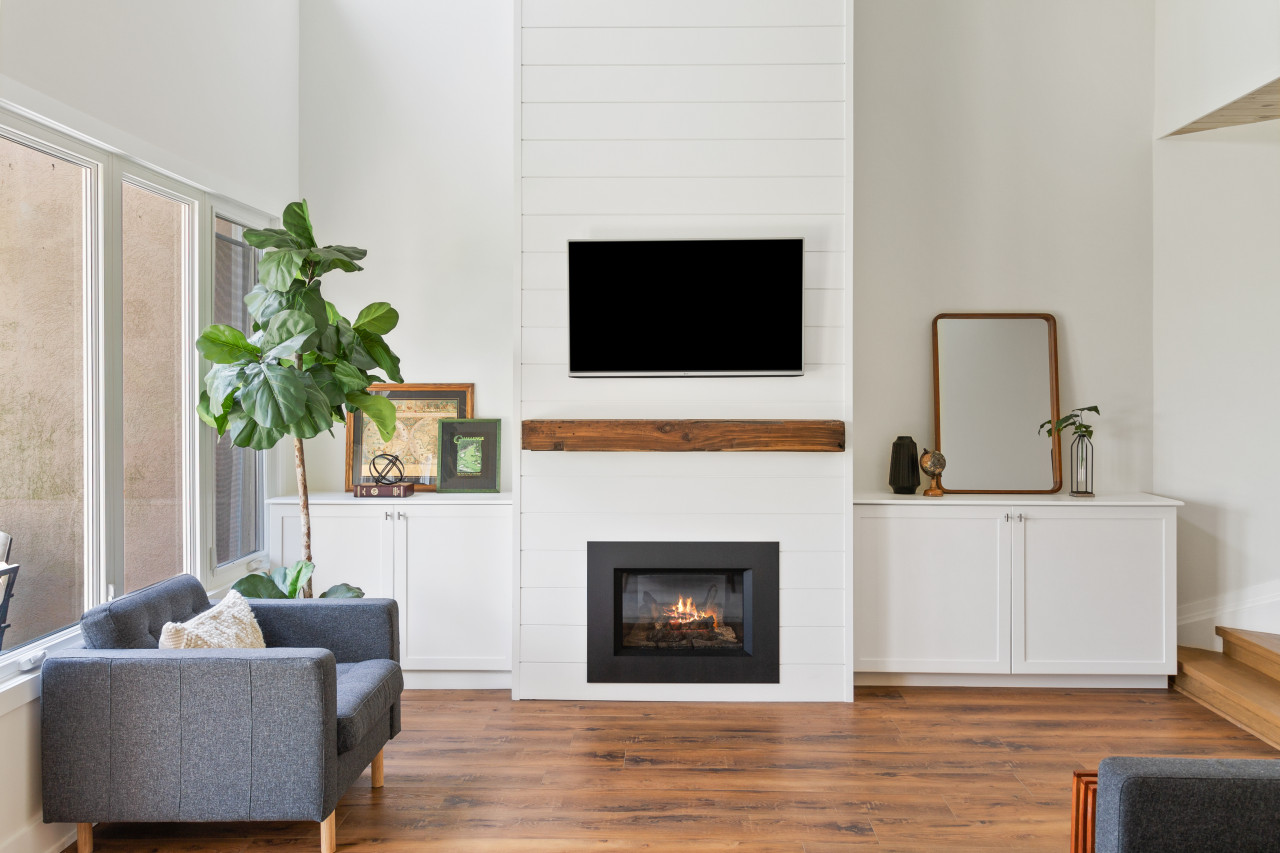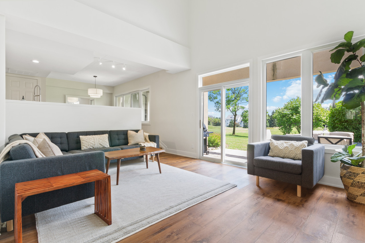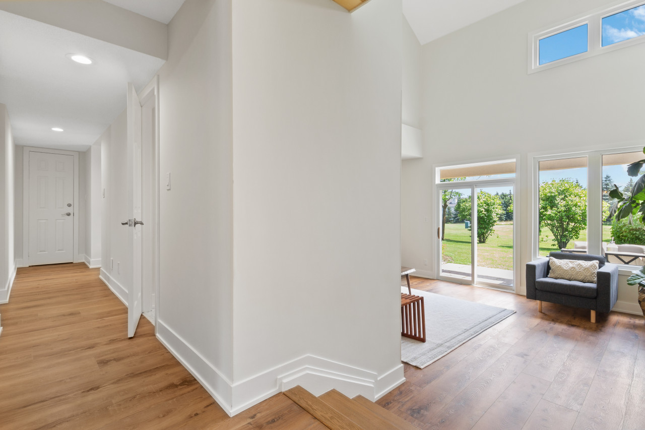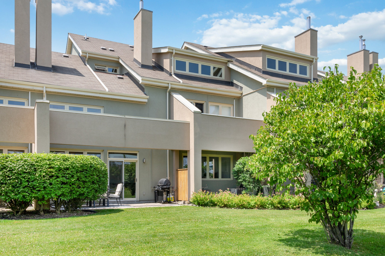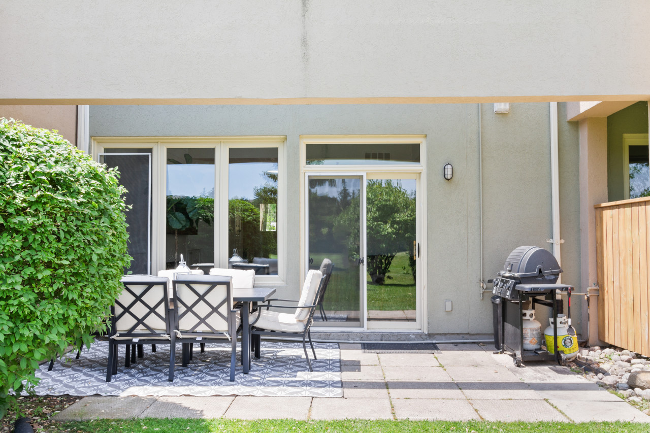 Guests can catch up after a day of adventure or decompress with their favourite TV show by the gas fireplace. The living room offers a peaceful, serene feel with generously sized windows that provide a view of the green space. The sliding glass doors give access to the backyard, where you can enjoy a BBQ in the summer or relax outdoors before retreating for the evening. You'll love making this your everyday gathering space with newly upgraded flooring, soaring ceilings, and grandeur design.