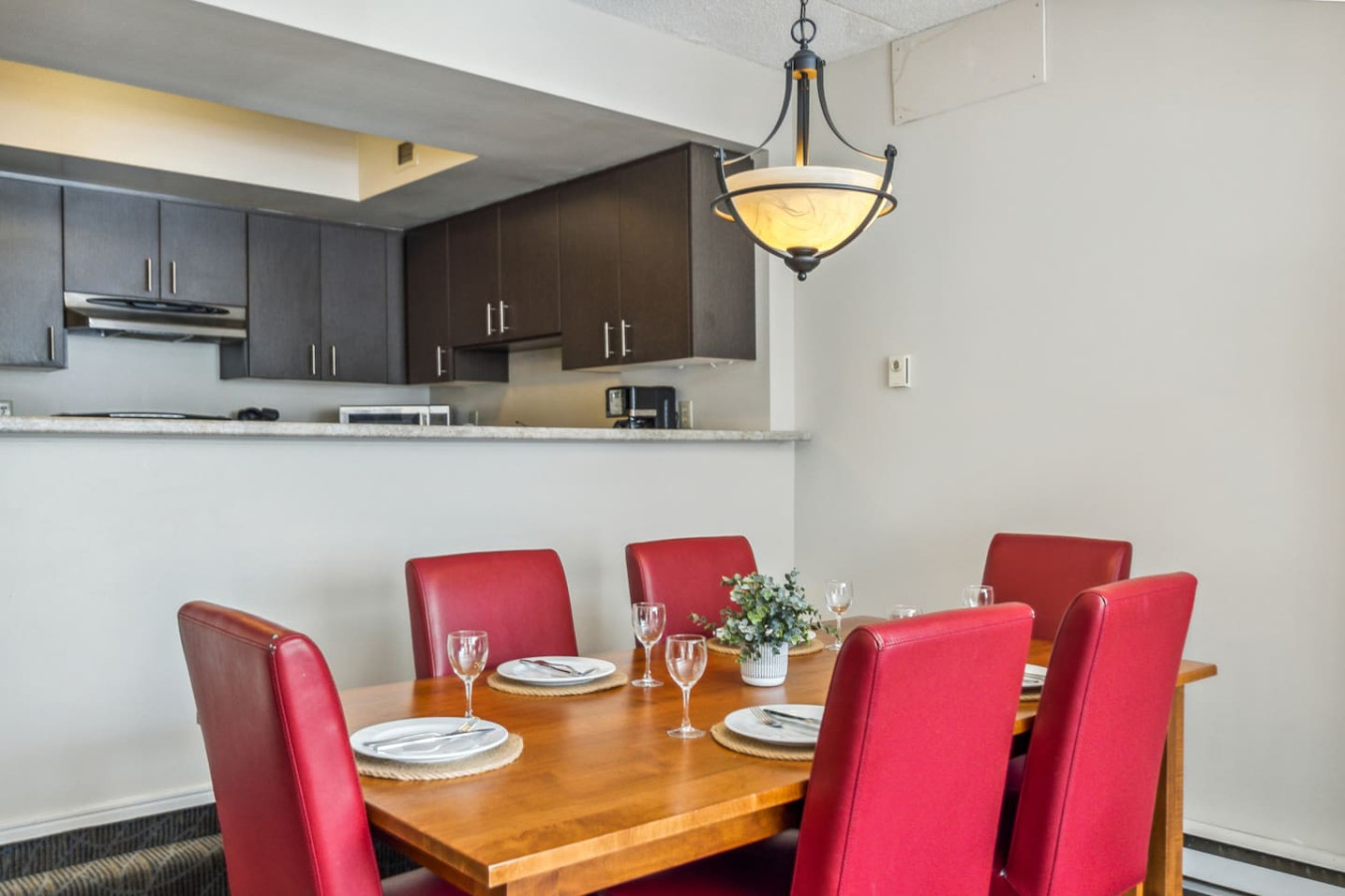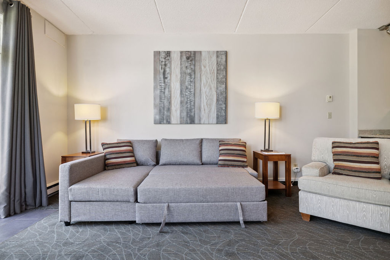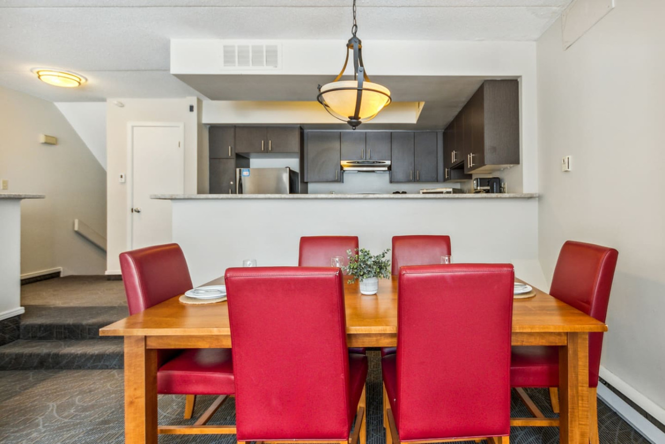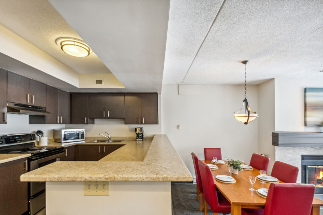 Perfect for relaxing and enjoying some “apres-ski”, this home features a cozy living area with comfortable seating surrounding the wood-burning fireplace (bring your own wood/kindling). Our unit is equipped with all the amenities you need for a comfortable stay, including high-speed Wi-Fi and Cable TV for your entertainment.