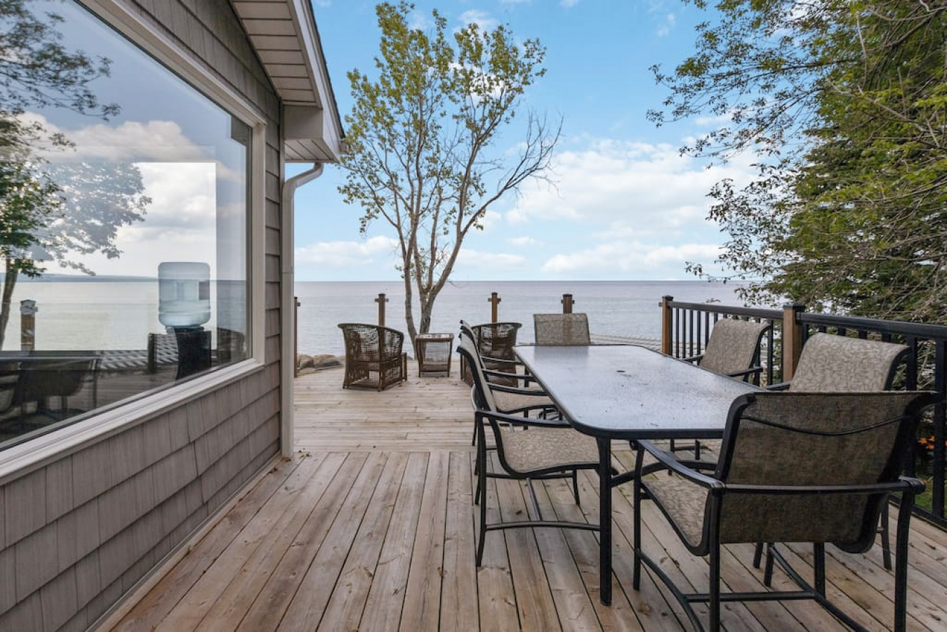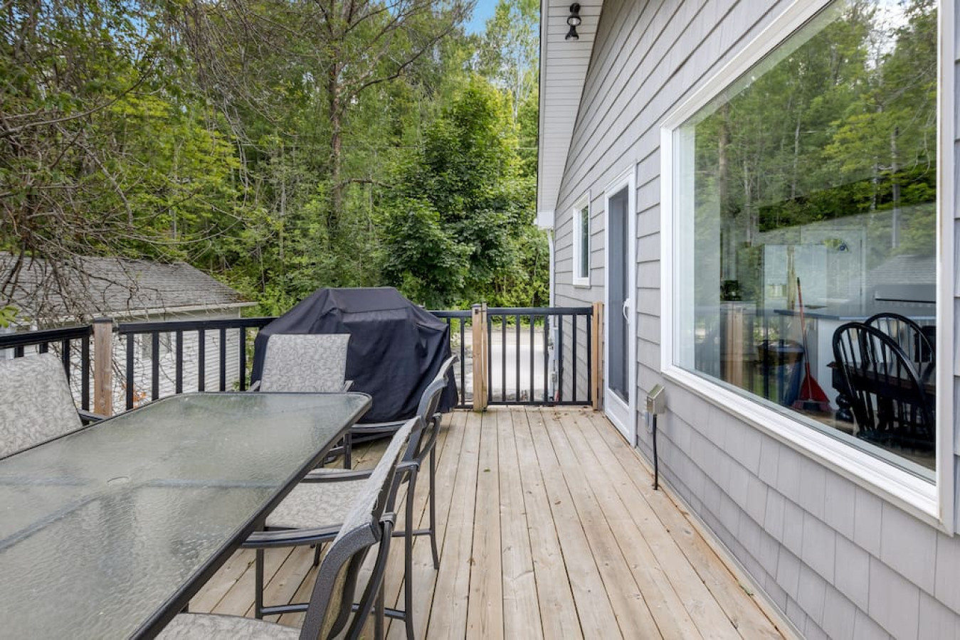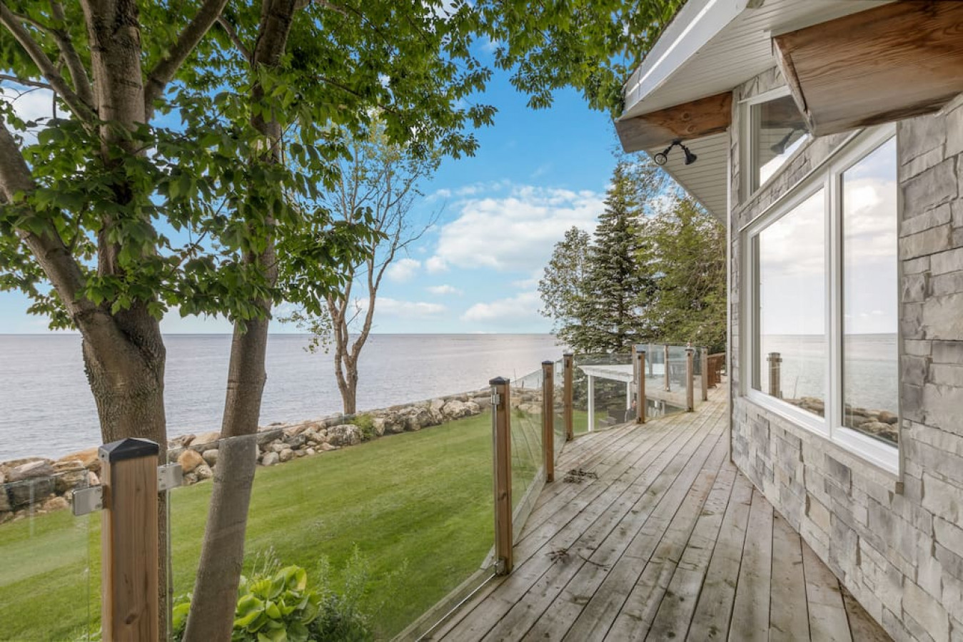 The expansive deck with glass railings is the perfect place to unwind and soak up the panoramic views of Georgian Bay. Whether you're basking in the sunlight or marvelling at the starry night sky, this outdoor oasis will become your favourite gathering spot. Enjoy evenings around the fire pit on the ground-level deck, creating lasting memories with loved ones.