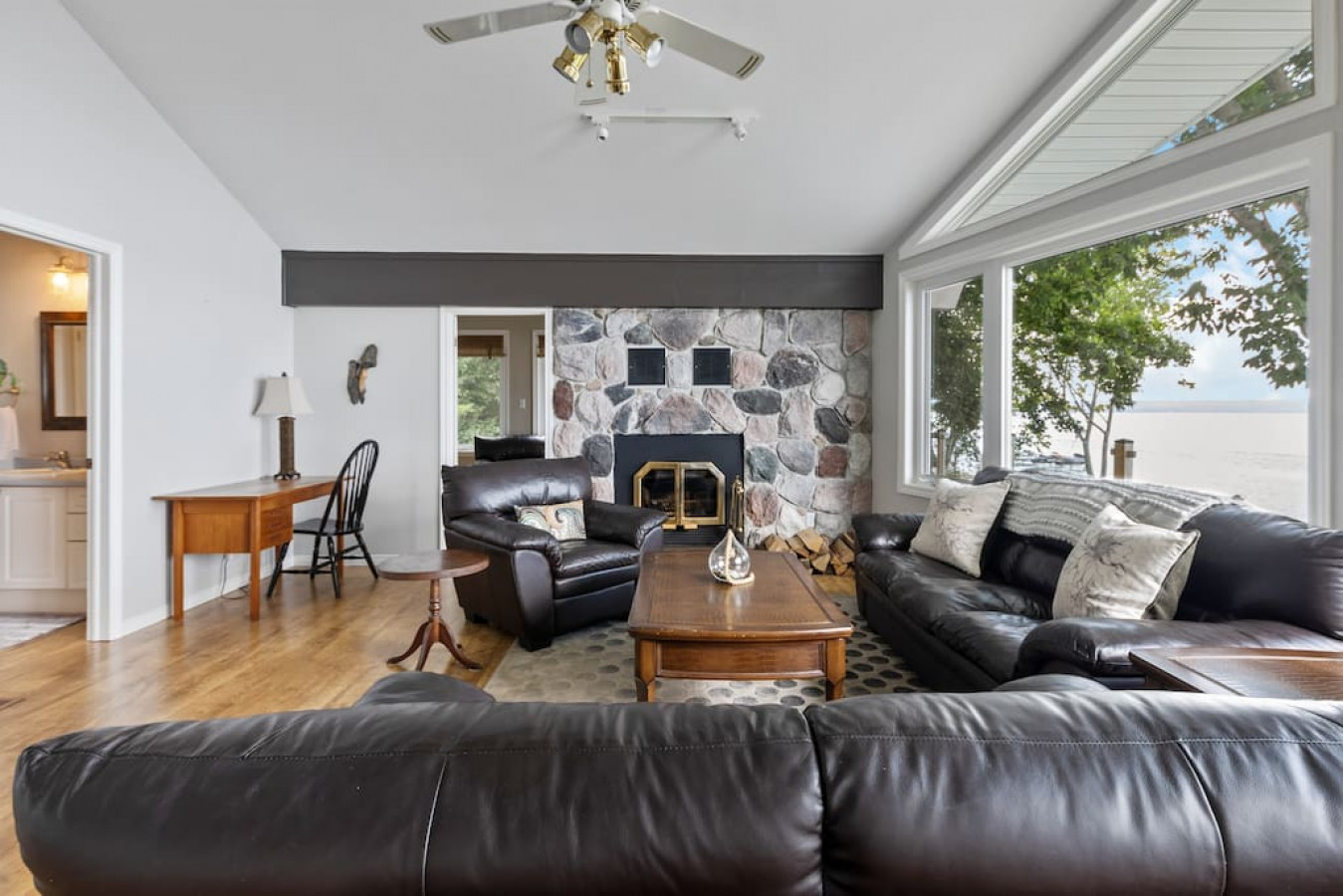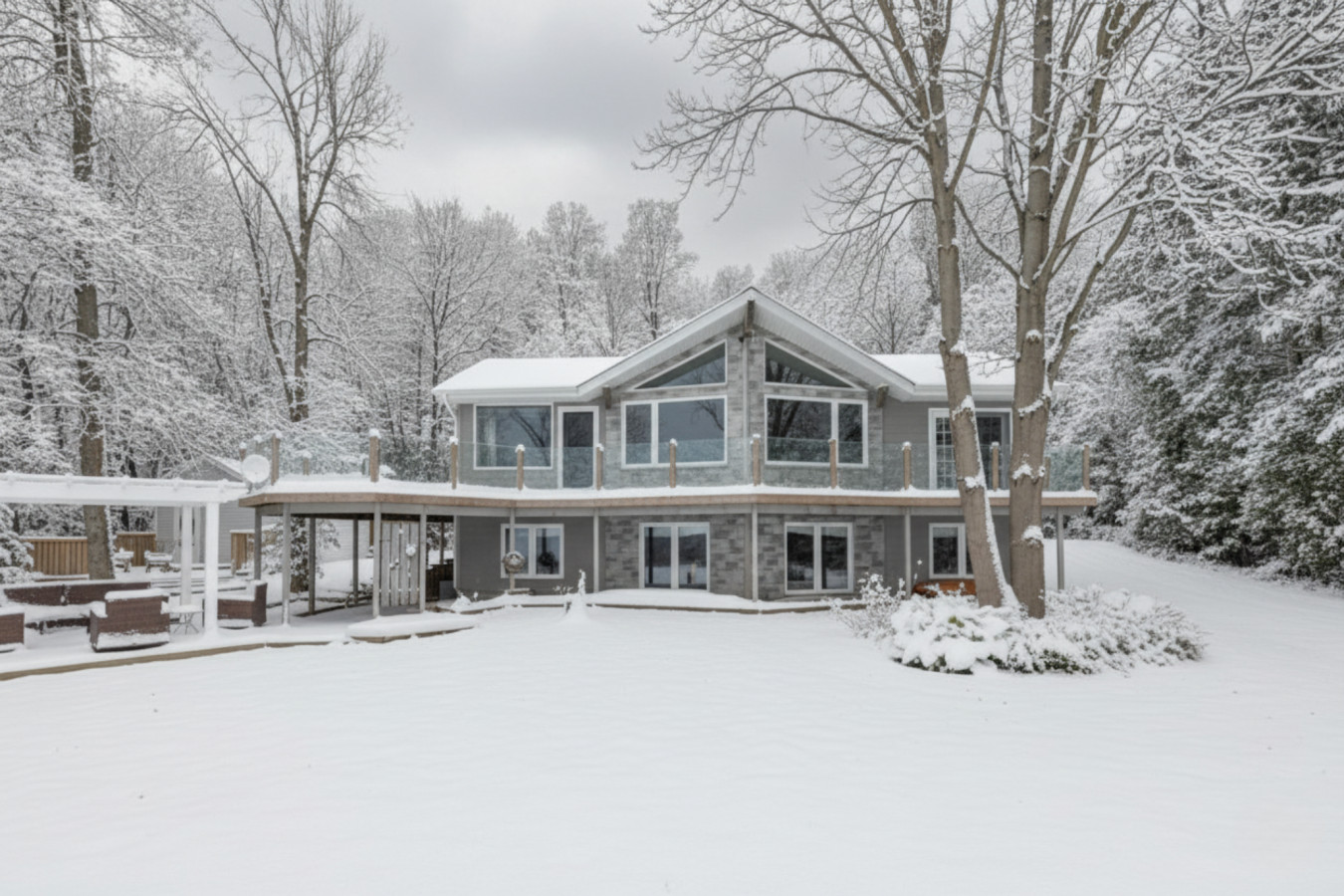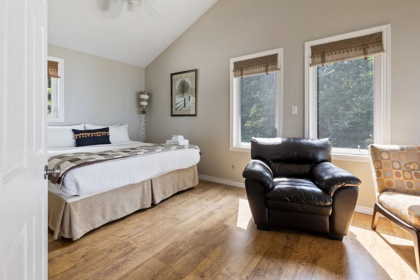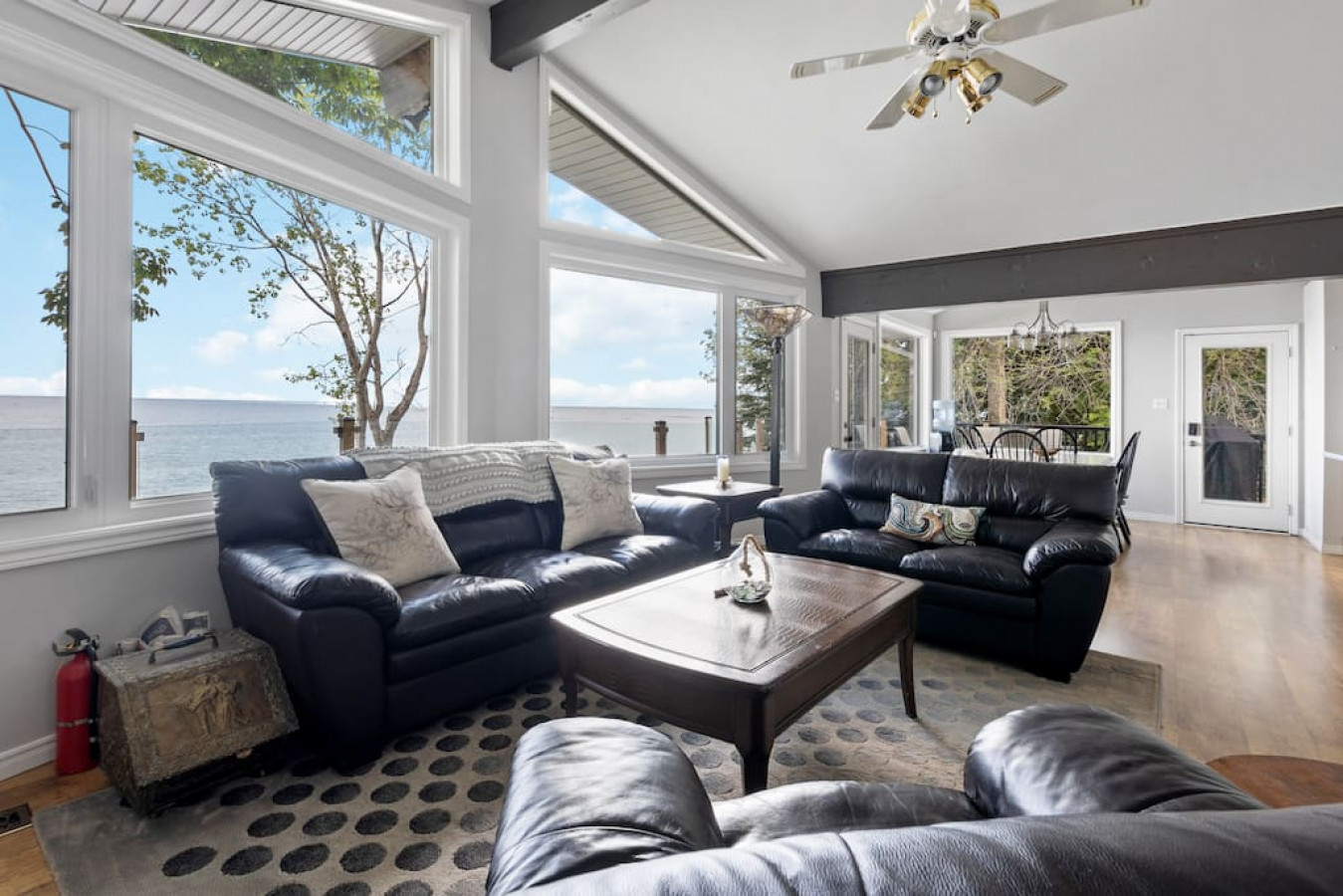 The expansive deck with glass railings is the perfect place to unwind and soak up the panoramic views of Georgian Bay. Whether you're basking in the sunlight or marvelling at the starry night sky, this outdoor oasis will become your favourite gathering spot. Enjoy evenings around the fire pit on the ground-level deck, creating lasting memories with loved ones.