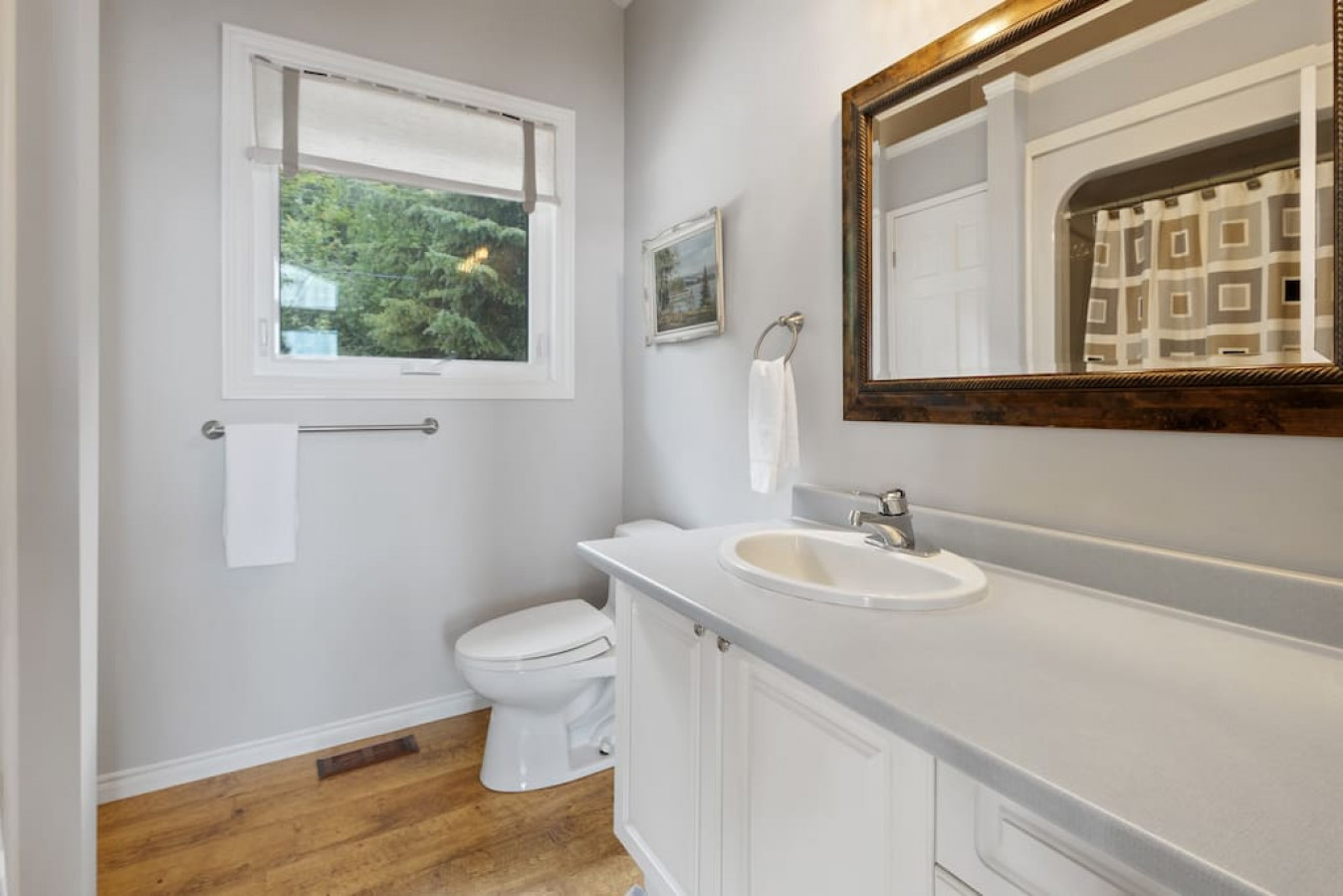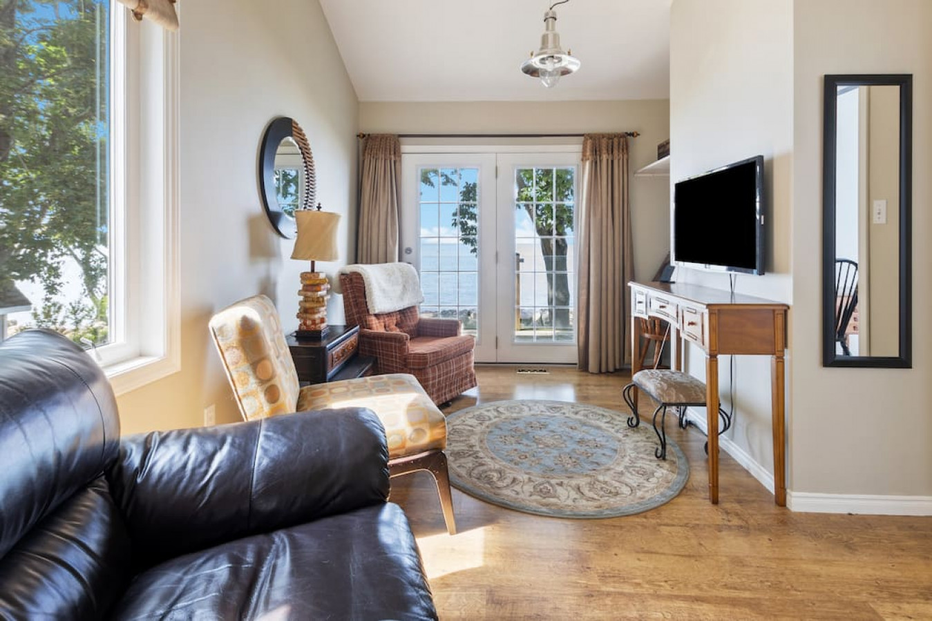 The main floor is home to the primary bedroom, where you can wake up to the gentle sounds of the bay. This serene retreat features a sitting area and French doors that lead to the expansive deck, providing a private sanctuary where you can soak in the beauty of your surroundings. On the lower level, you'll find two additional bedrooms and a family room, offering plenty of space for everyone to unwind and find their own slice of paradise.