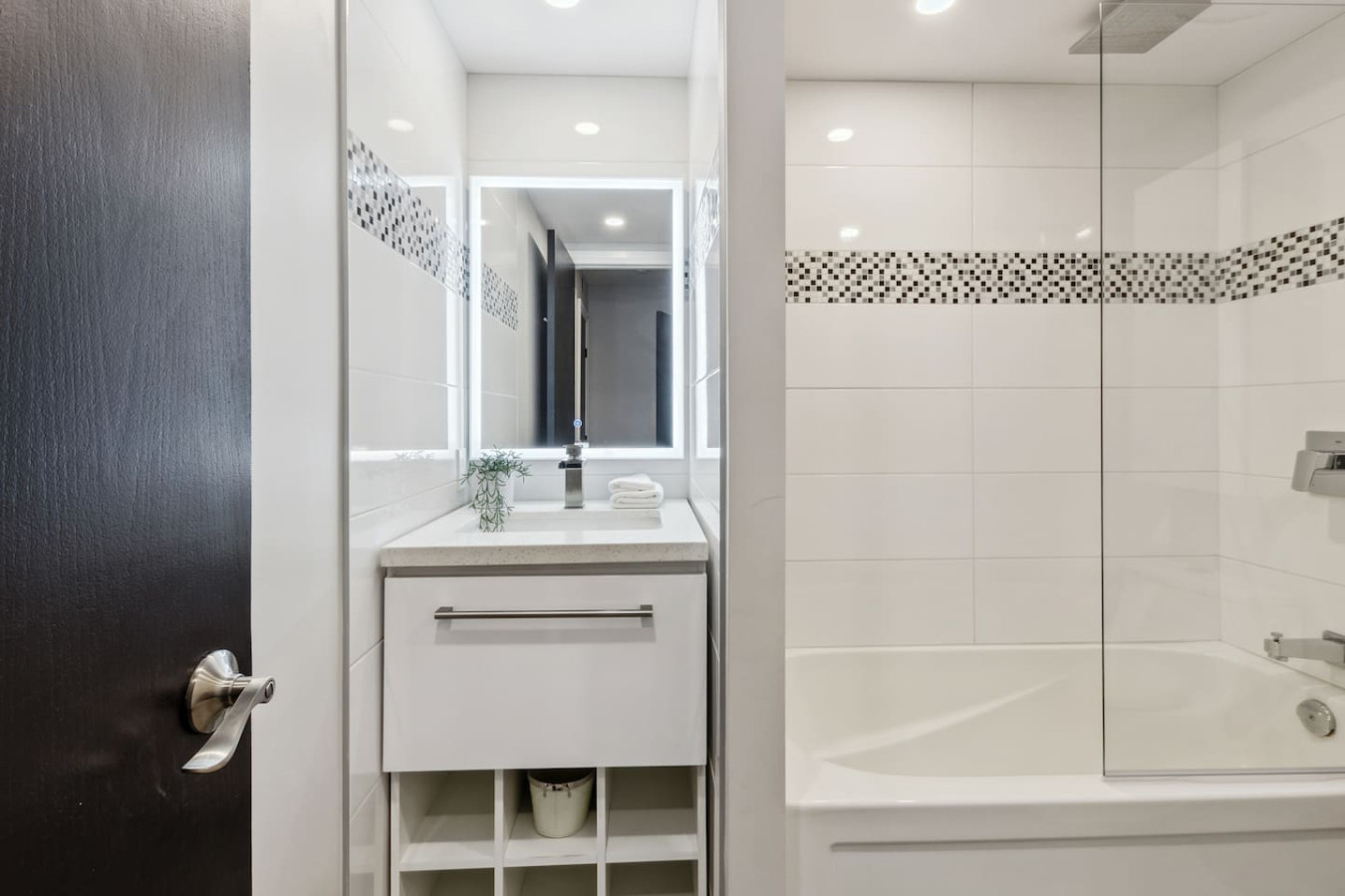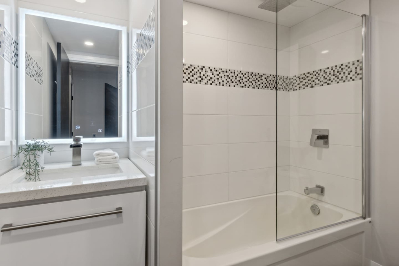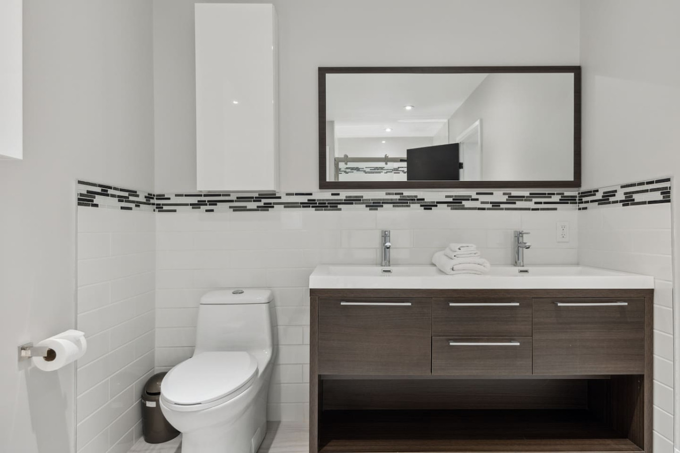 There are 2 bedrooms in this condo, both on the second floor. Bedroom 1, the primary, features one king size bed and a full ensuite bathroom. Bedroom 2 has a queen size bed and a double size sofa bed. The second full bathroom is across from bedroom 2 on the second floor. Guests can also enjoy the convenience of having a washer/dryer available for use, just bring your detergent!
