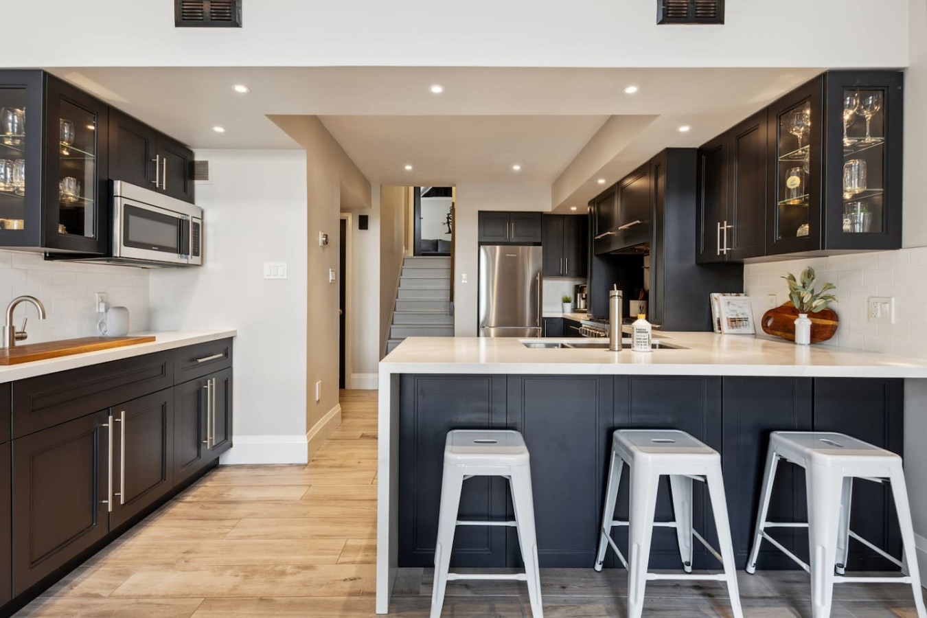 The kitchen and dining area is equipped with all cookware, bakeware, cutlery, utensils, an espresso machine, and a drip coffee maker, allowing everyone to gather on nights you’re not dining at one of Blue’s local restaurants! All you need is your food, spices, and coffee/filters!