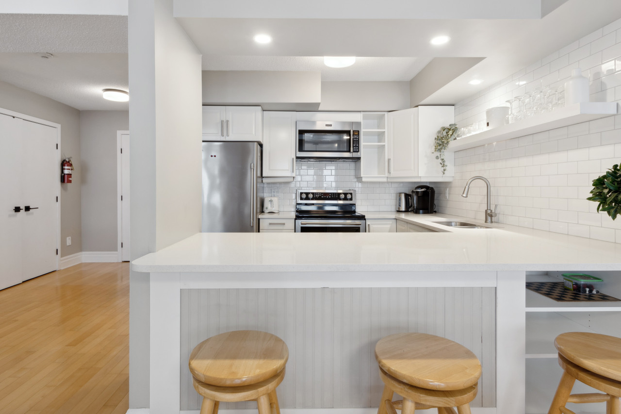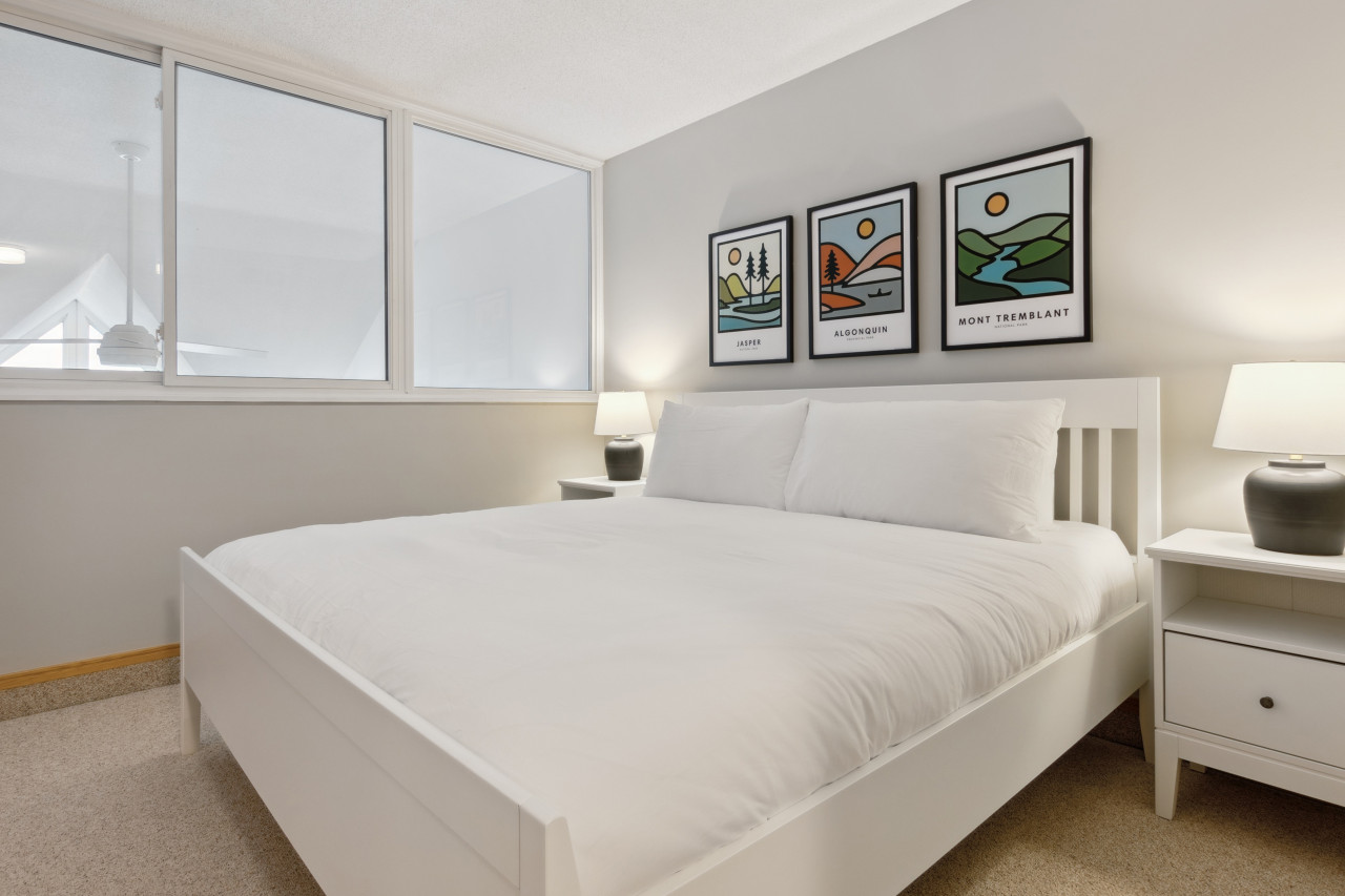 Our bright and spacious unit can accommodate up to 7 guests. With 2 bedrooms, 4 beds and 2 bathrooms, our chalet condo has plenty of space for families or groups of friends to relax after a day of adventure. Bedroom one includes 1 king size bed, bedroom 2 includes 1 king bed and 1 single over single bunk bed, and a double size day bed is available to accommodate a 7th guest in the living area with linens available upon request.