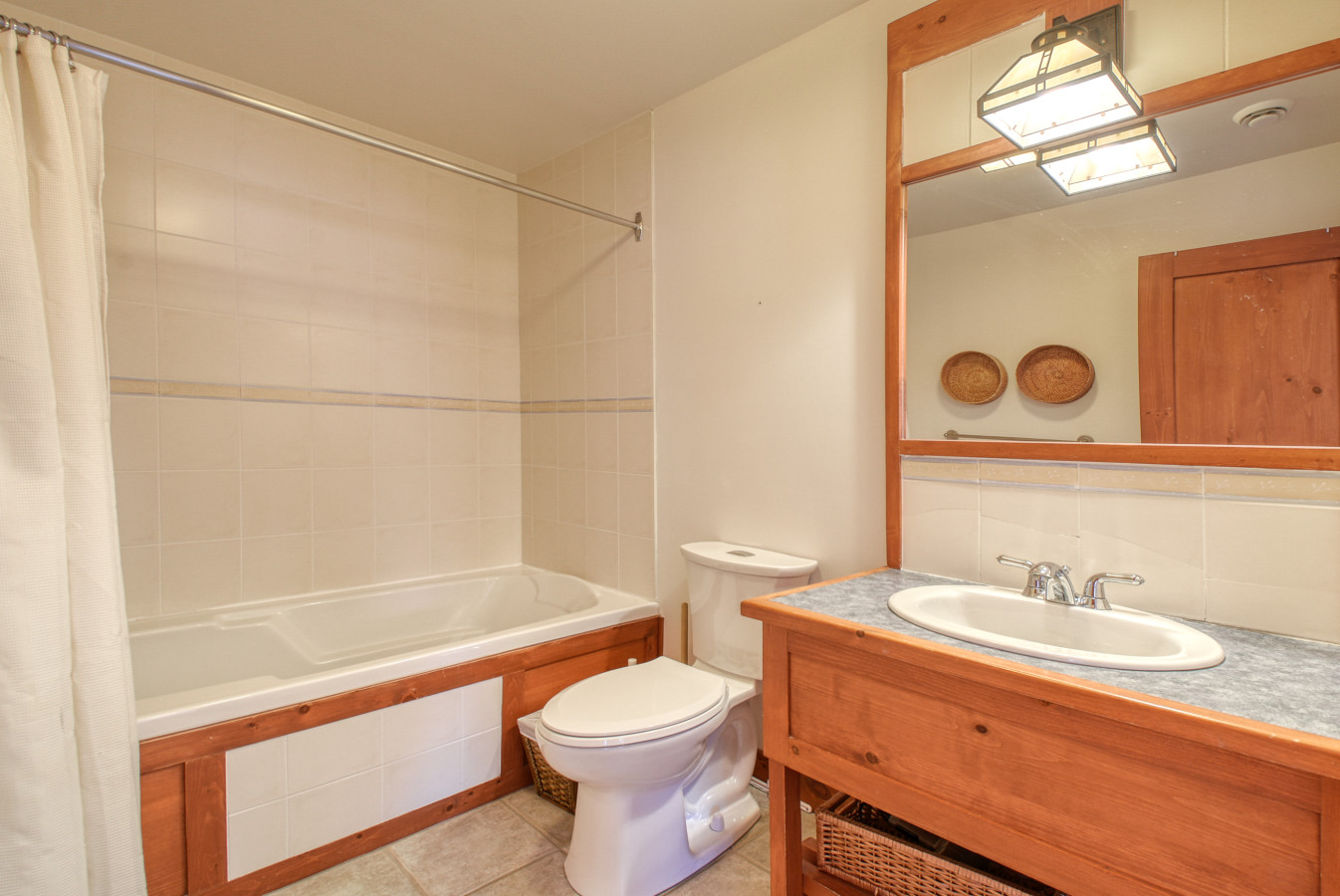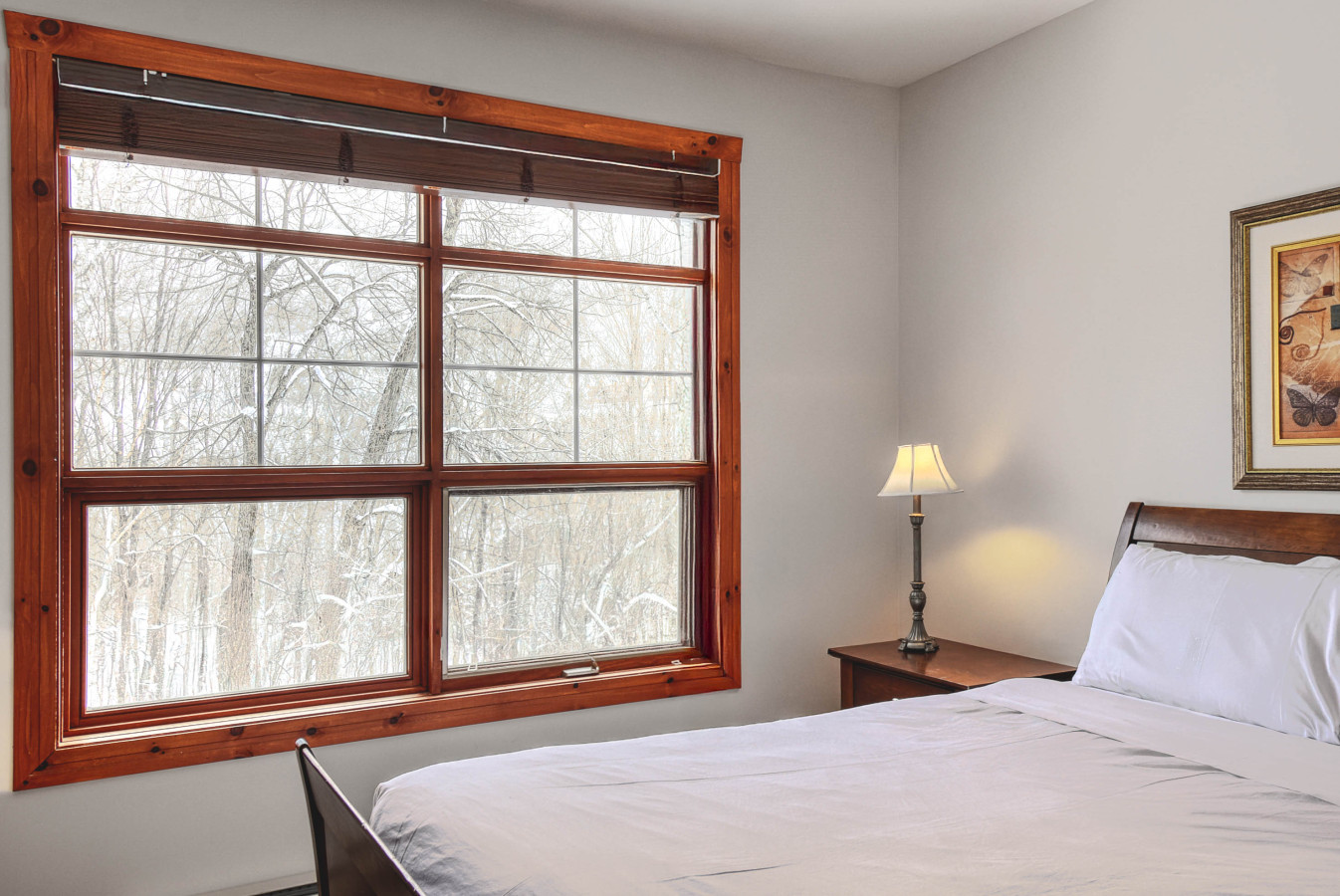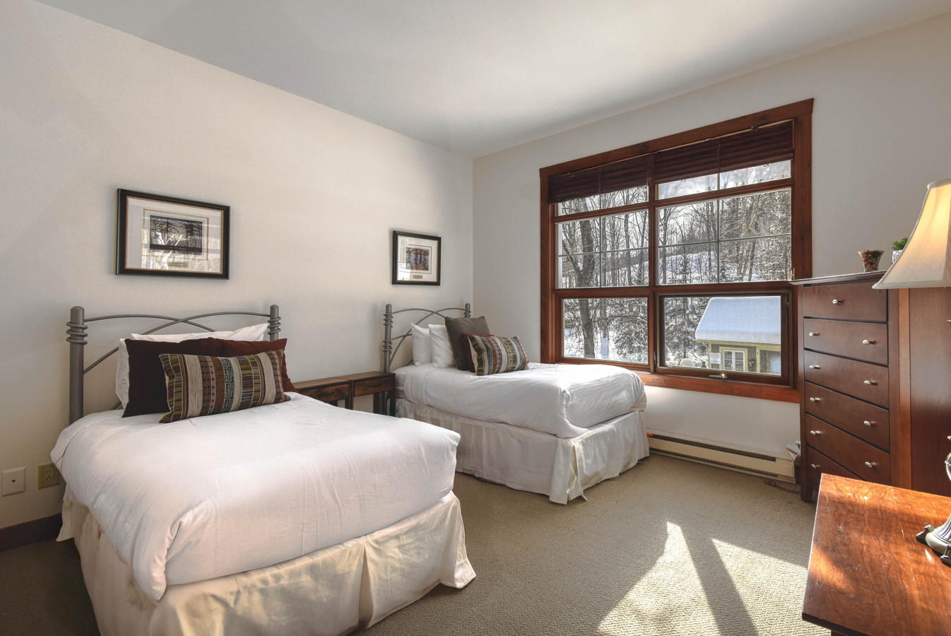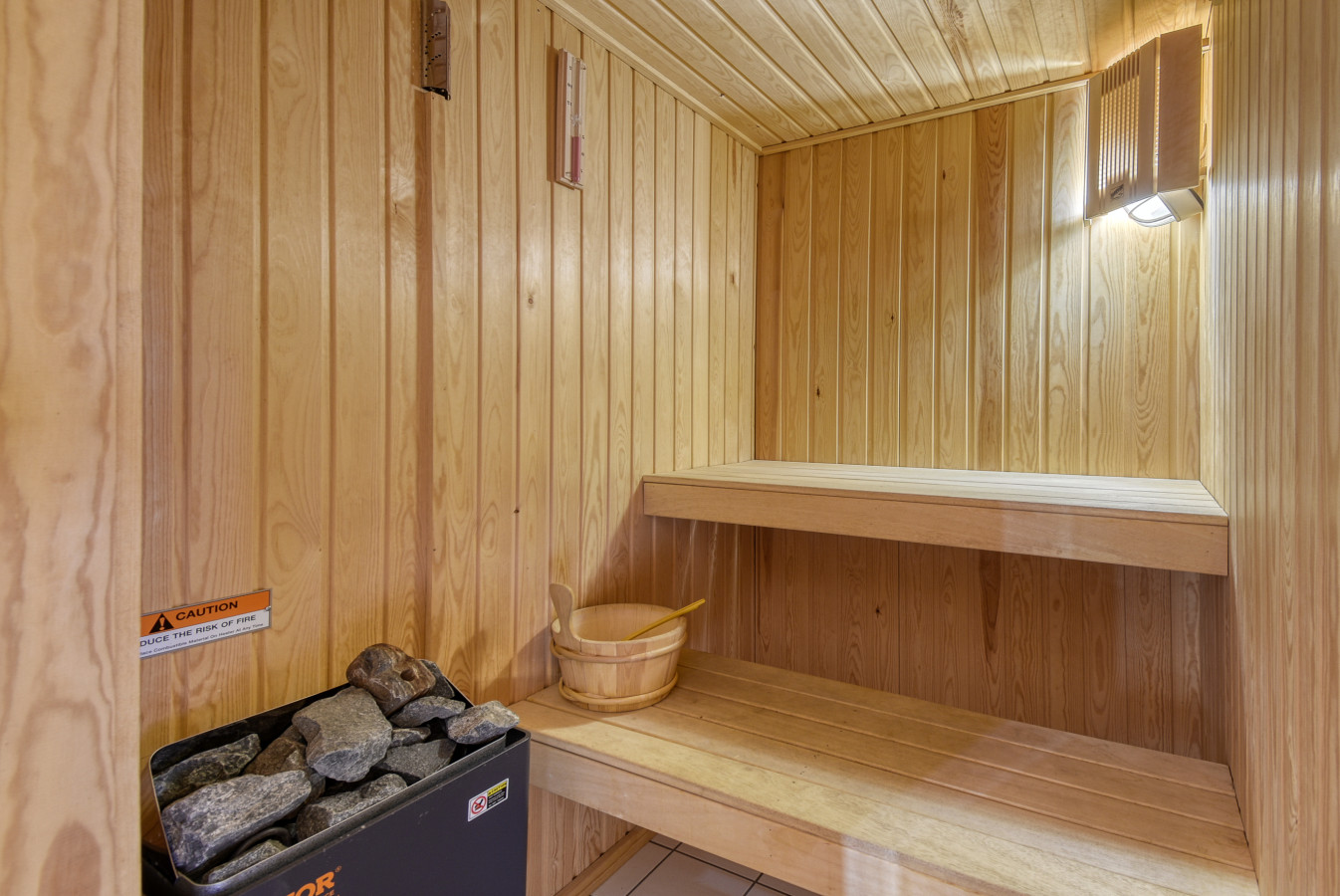 This classic chalet features 3-bedrooms spanning two levels, with the master bedroom perched on the mezzanine. On the first floor, discover a bedroom with a Queen bed and a second bedroom with two Twin beds. The master bedroom features a Queen bed, an en suite bathroom, and a soothing dry sauna.