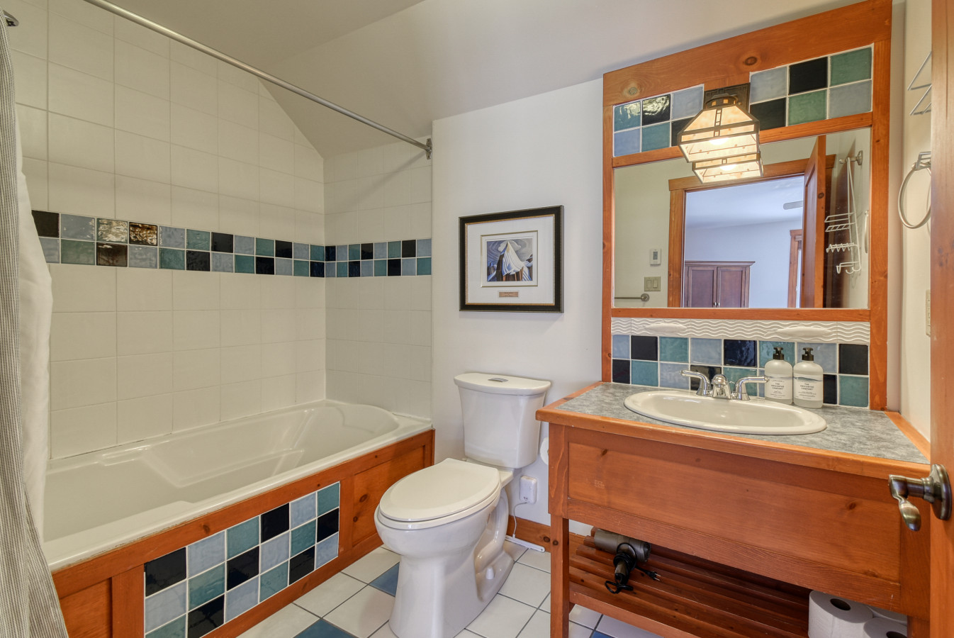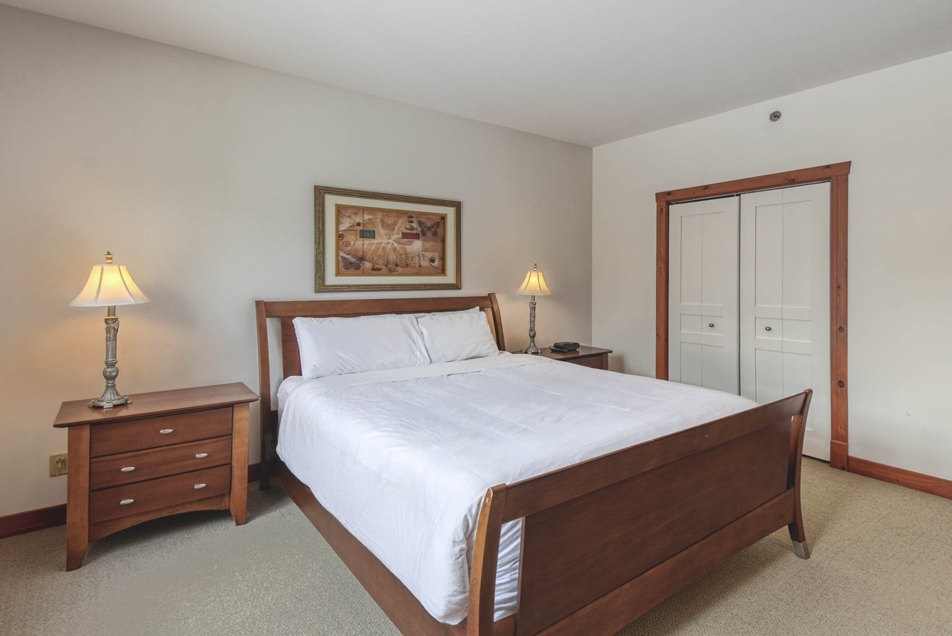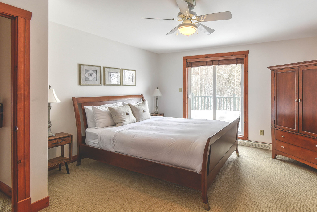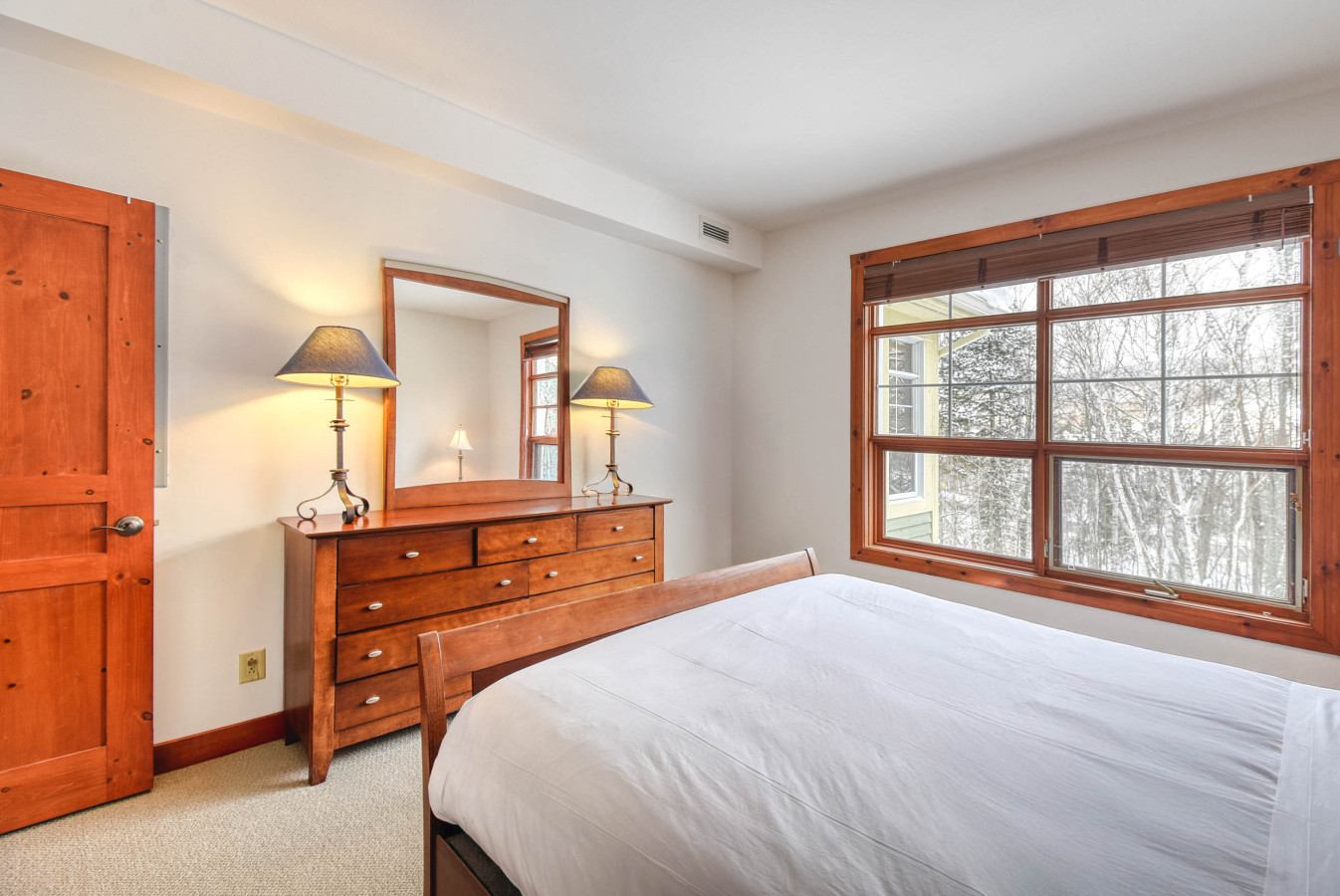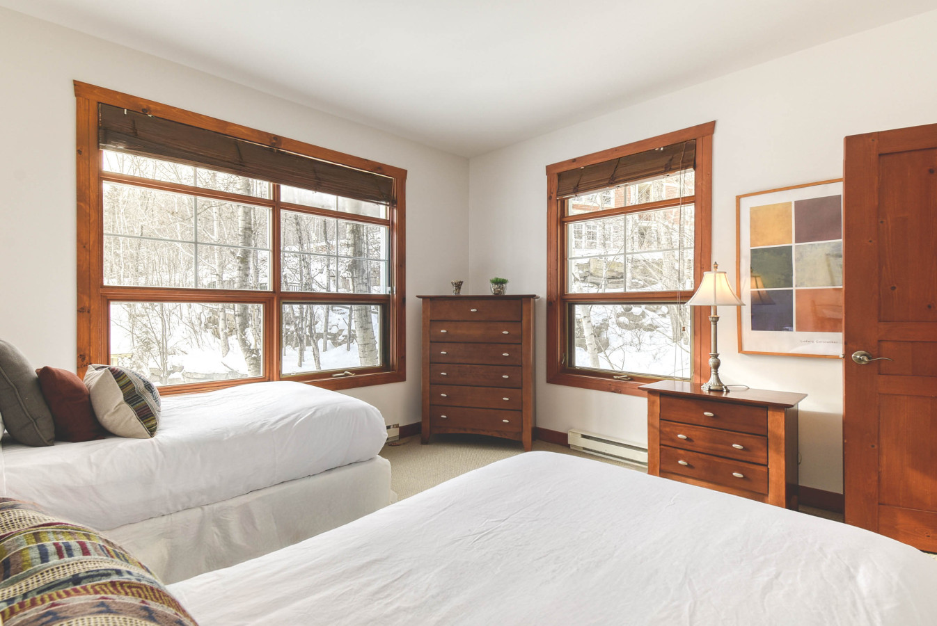 This classic chalet features 3-bedrooms spanning two levels, with the master bedroom perched on the mezzanine. On the first floor, discover a bedroom with a Queen bed and a second bedroom with two Twin beds. The master bedroom features a Queen bed, an en suite bathroom, and a soothing dry sauna.