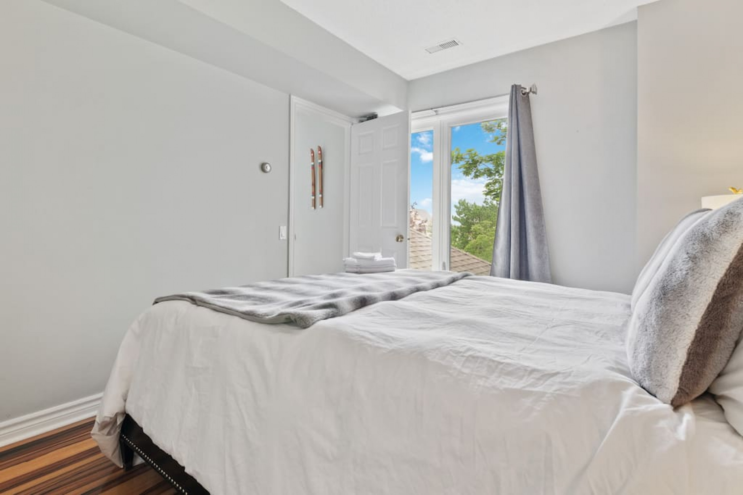 This home is close to all of the action yet you will be able to enjoy the quiet, private, & peaceful moments during your vacation. The entrance to this delightful home will take you into a bright, clean, & quiet space. On the main floor you will find the kitchen, living room with a Smart TV, dining area and a balcony with a BBQ. Loaded with all the luxuries, this is the ultimate getaway for you and your guests! Nothing beats beautiful scenery of the slopes and golf green from one side of the Georgian Bay to the other, a true shore to slope experience. You will love all of the neutral esthetics of this home. Take advantage of convenient features such as a private locker with a keypad lock for skis, golf bags, or other gear right outside the door. Board games are provided for when you want to enjoy your nights in by the fireplace! Enjoy the saltwater community pool during the Summer months.