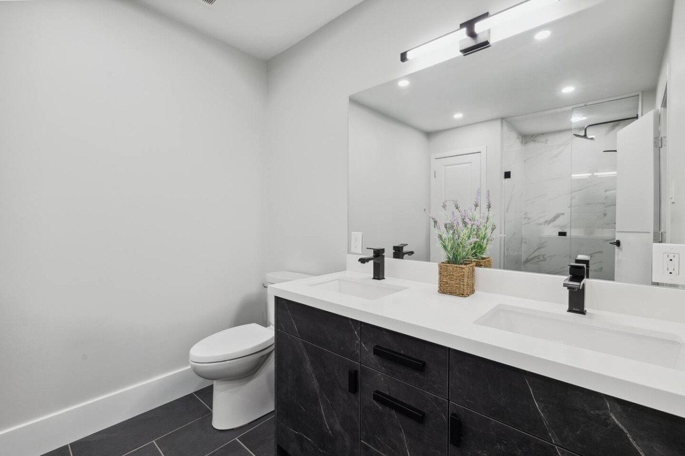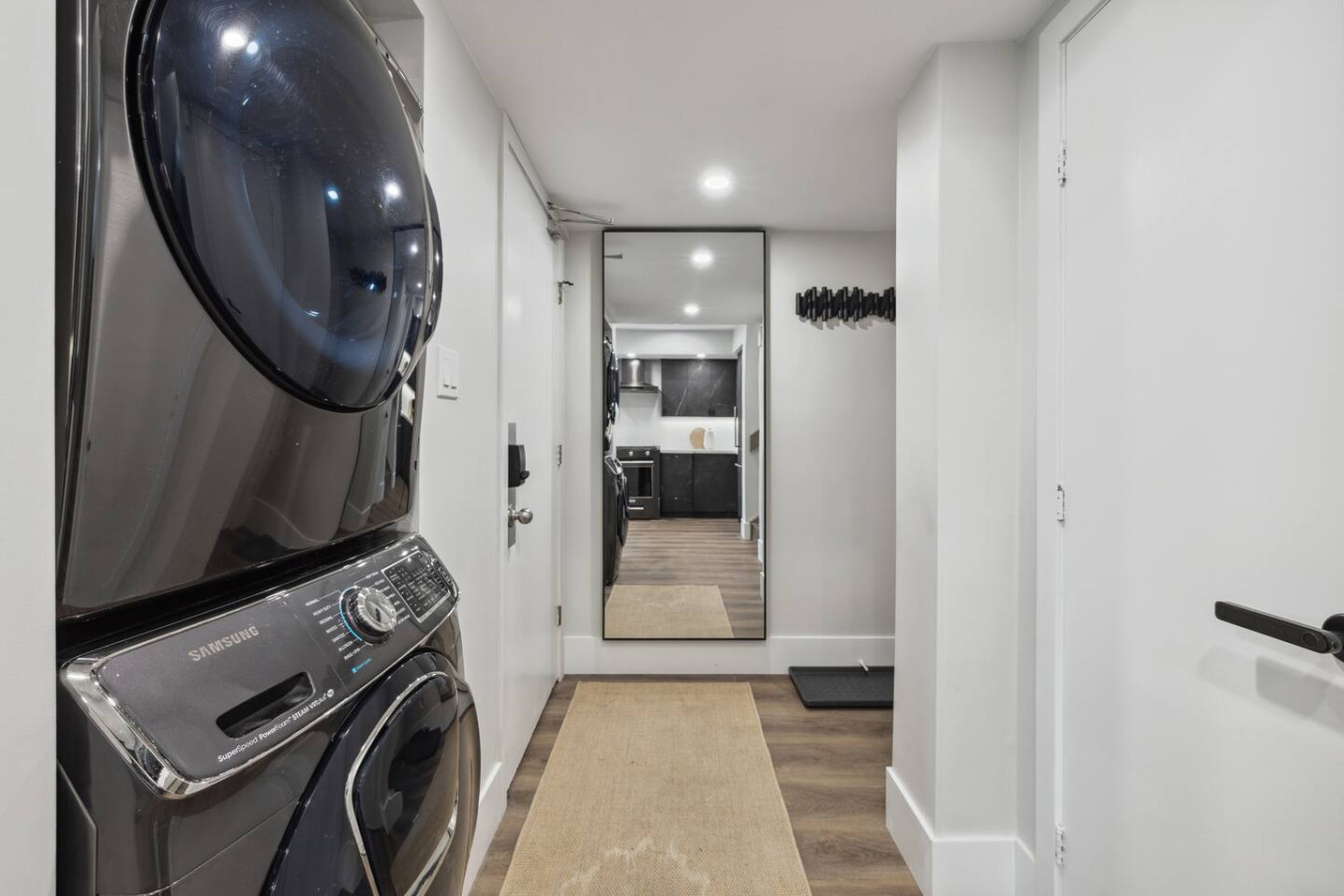 There are 2 bedrooms in this condo, both on the second floor. Bedroom , the primary, features one Queen size bed and a full ensuite bathroom, and bedroom 2 has two double size sofa beds. Although not pictured, both bedrooms have blinds to block out the early morning sun. The second full bathroom in this unit is on the main floor. Guests can also enjoy the convenience of having a washer/dryer available for use.