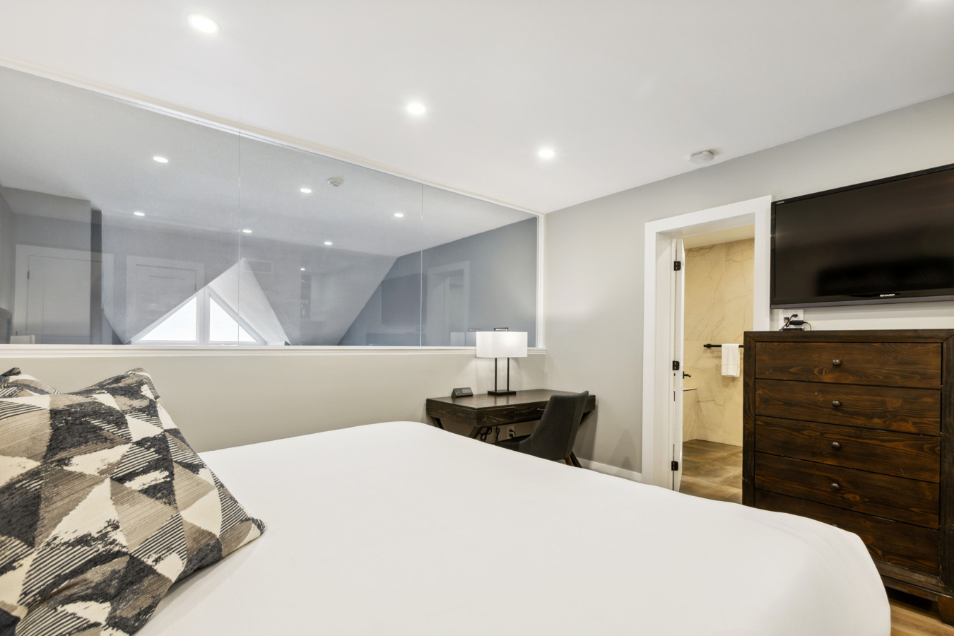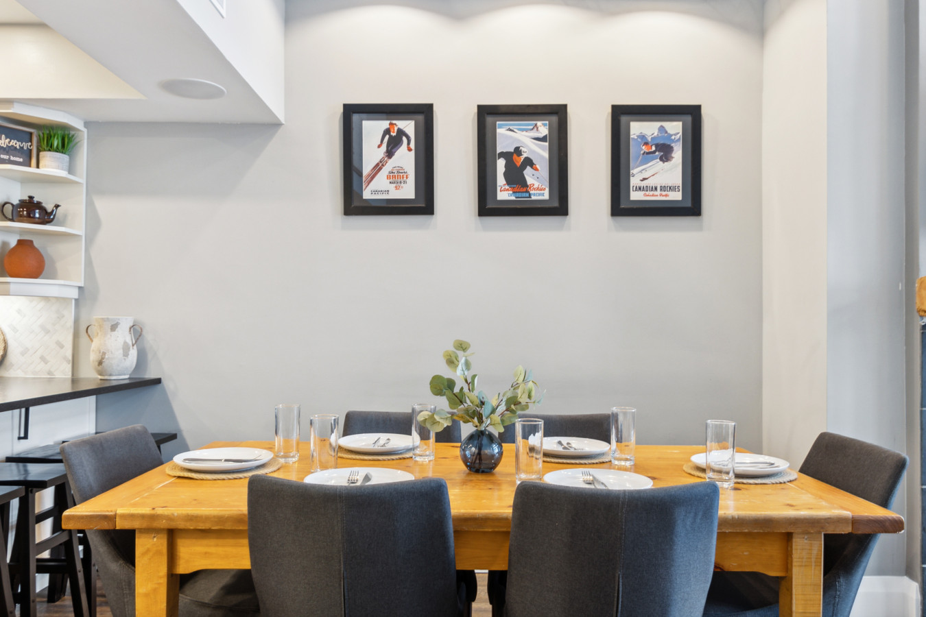 This house features a King size bed in the master suite, and a queen bed, and a twin-over-double bunk bed in the second bedroom. Enjoy the tastefully decorated condo/chalet in an ideal and quiet location. Second floor ski in/ ski out. Brand new comfortable beds with fresh sheets provided. Fresh towels, shampoo, conditioner, and soap is also provided in both bathrooms. Fully equipped kitchen, wifi and cable.