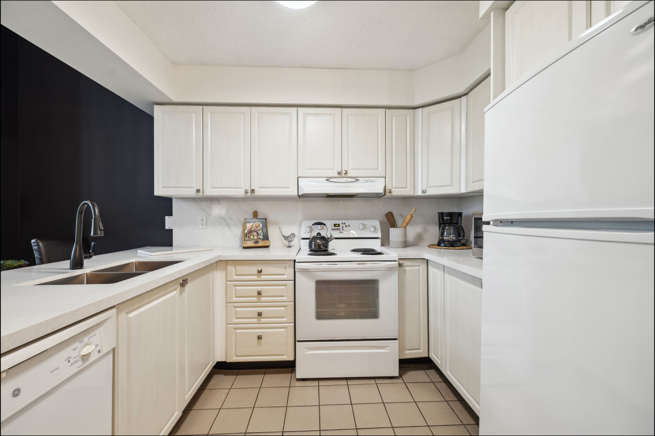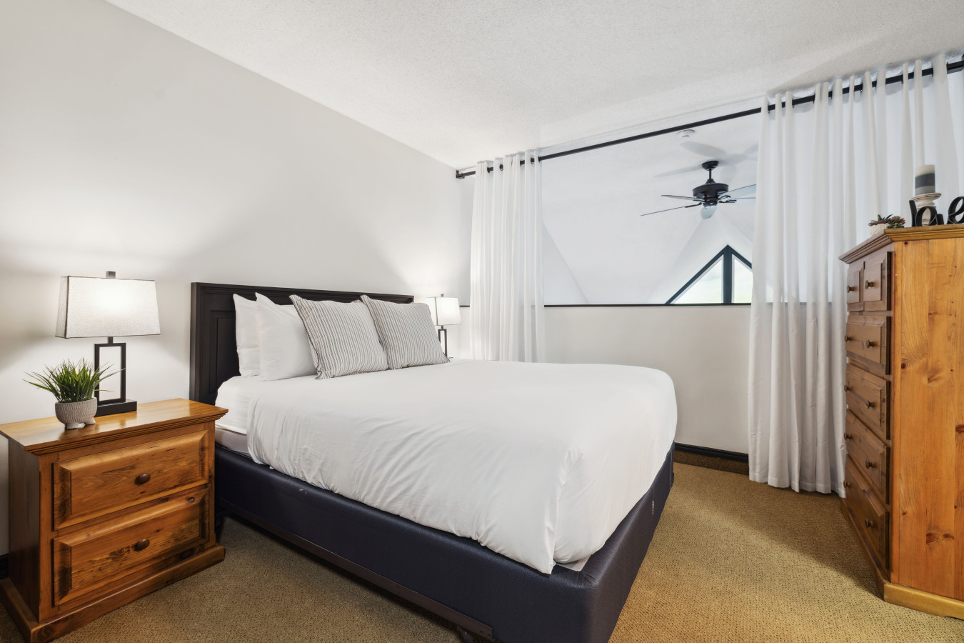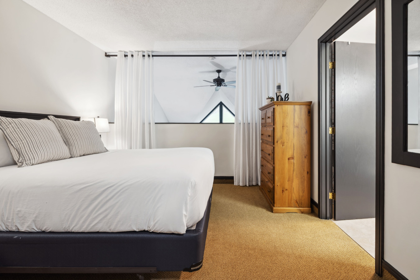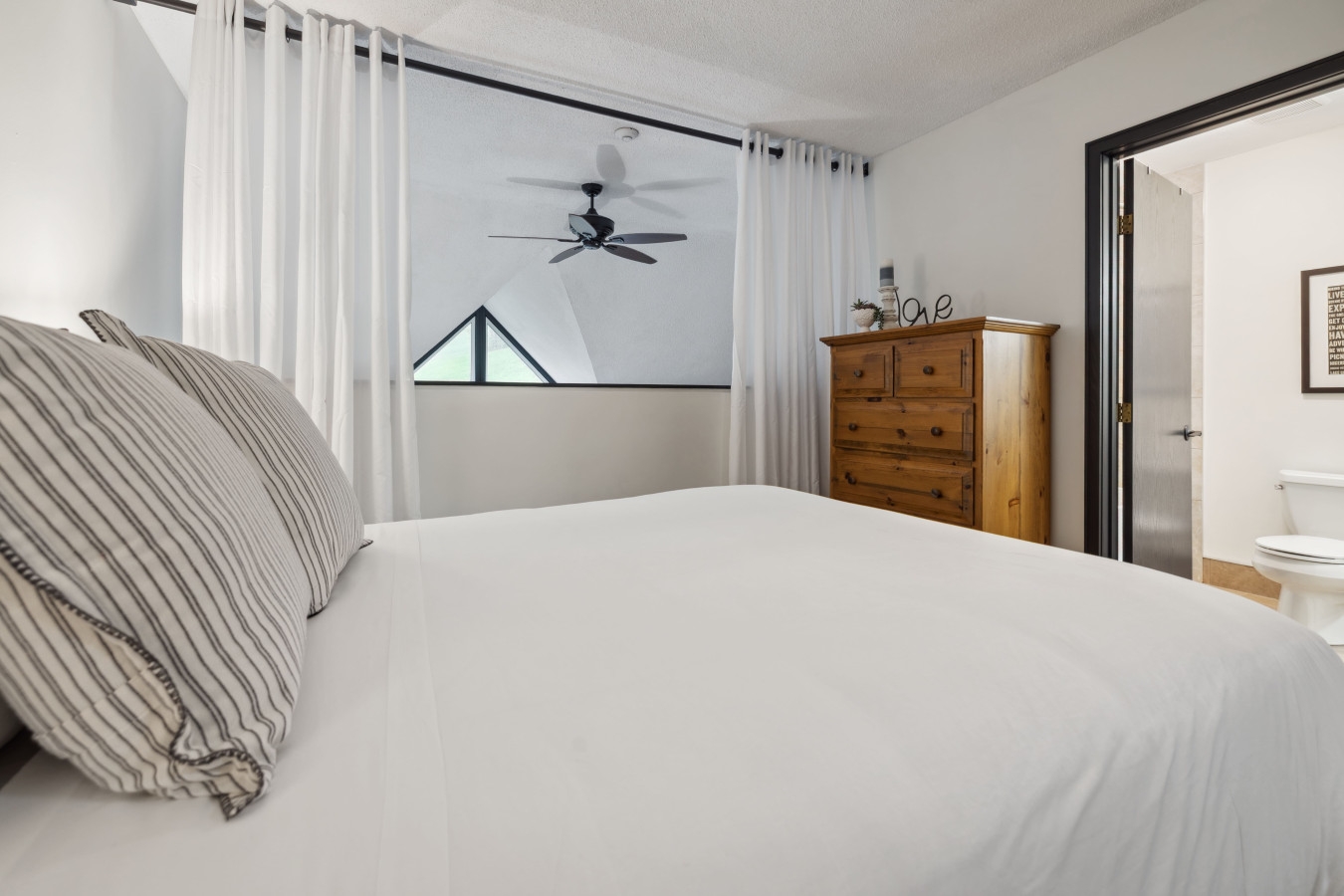 There are 2 bedrooms in this condo, both on the second floor. Bedroom 1 features one double size bed and a full ensuite bathroom, and bedroom 2 has two twin over double bunk beds. The second full bathroom is across from bedroom 2 on the second floor. Guests can also enjoy the convenience of having a washer/dryer available for use, just bring your detergent!
