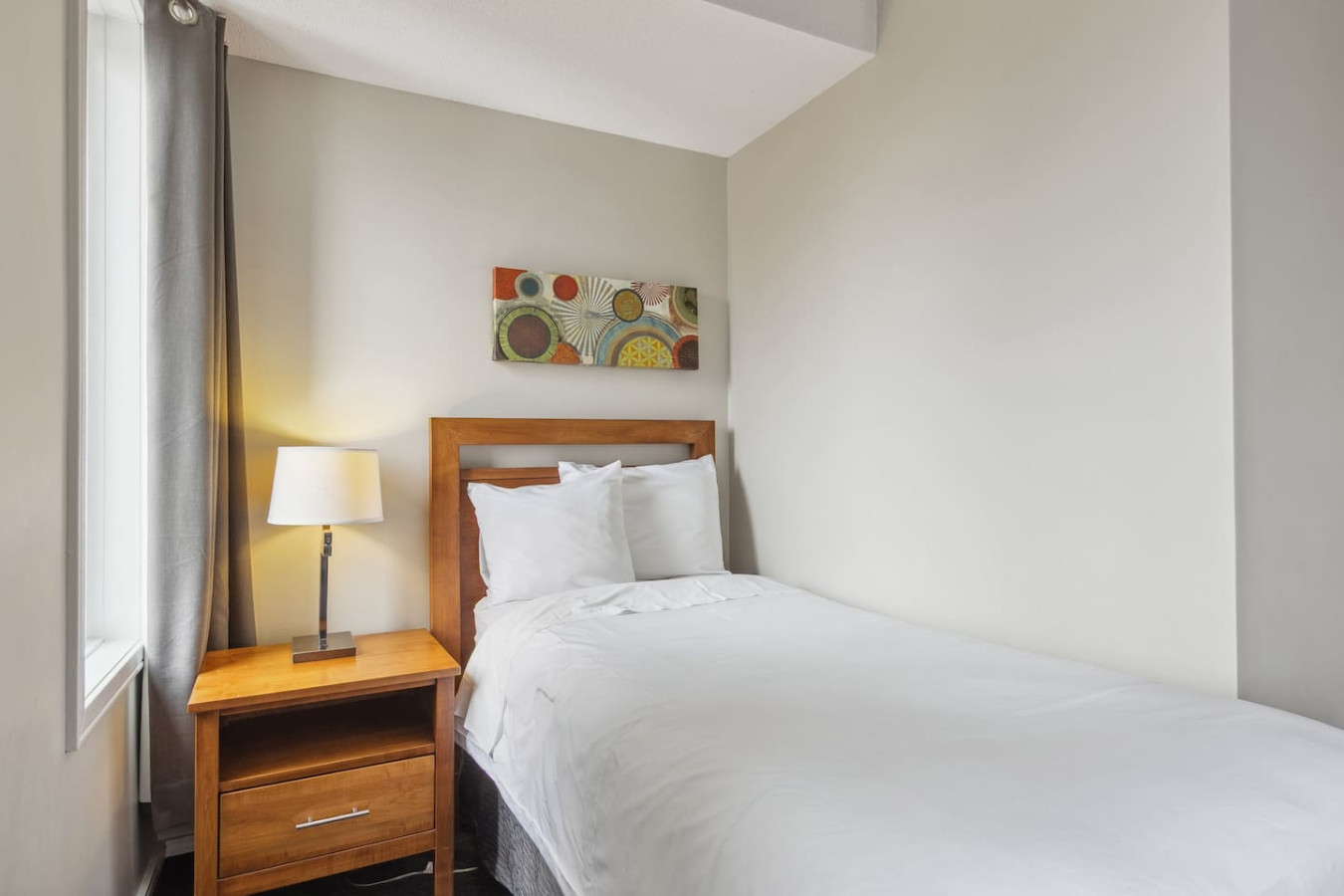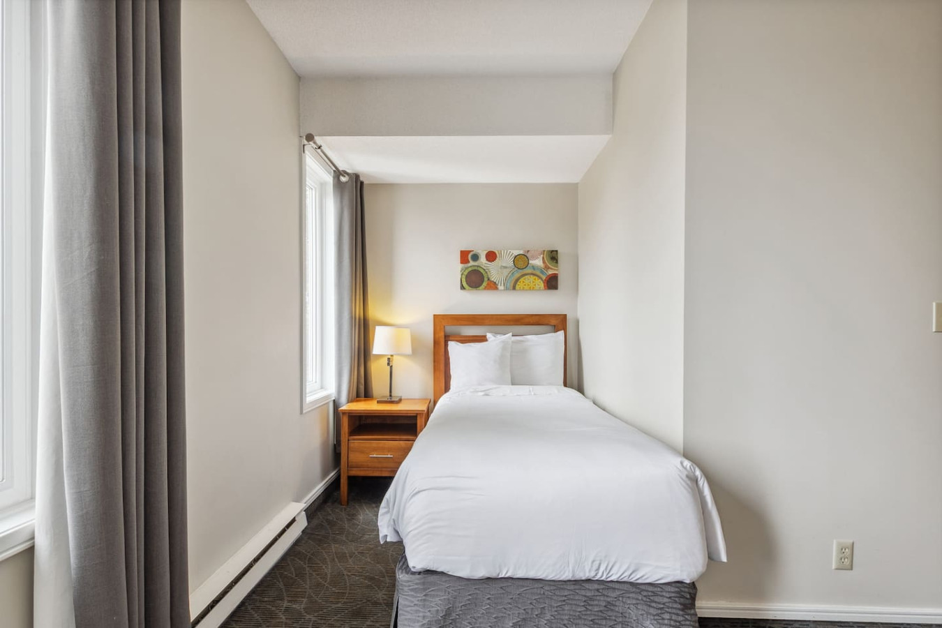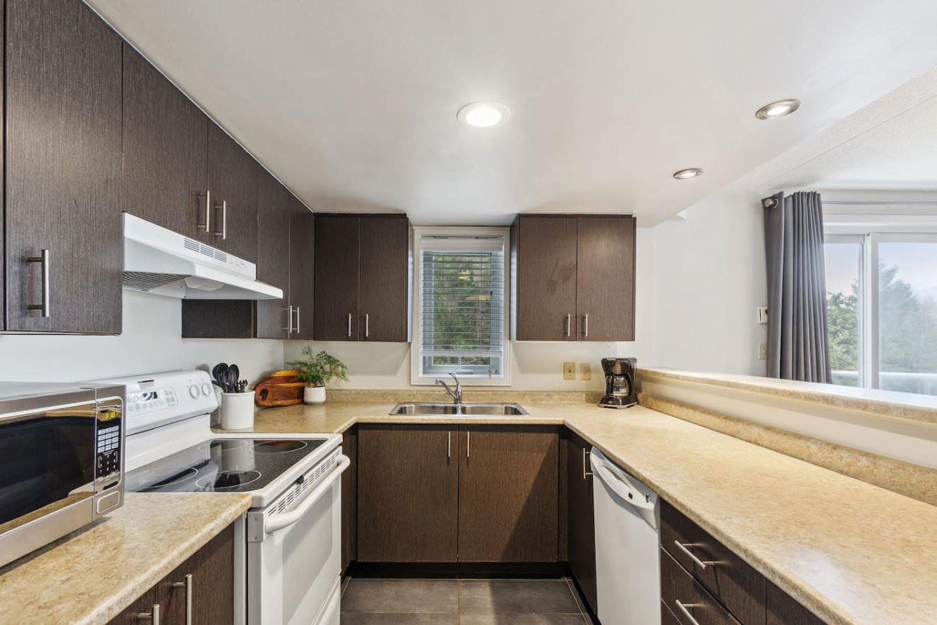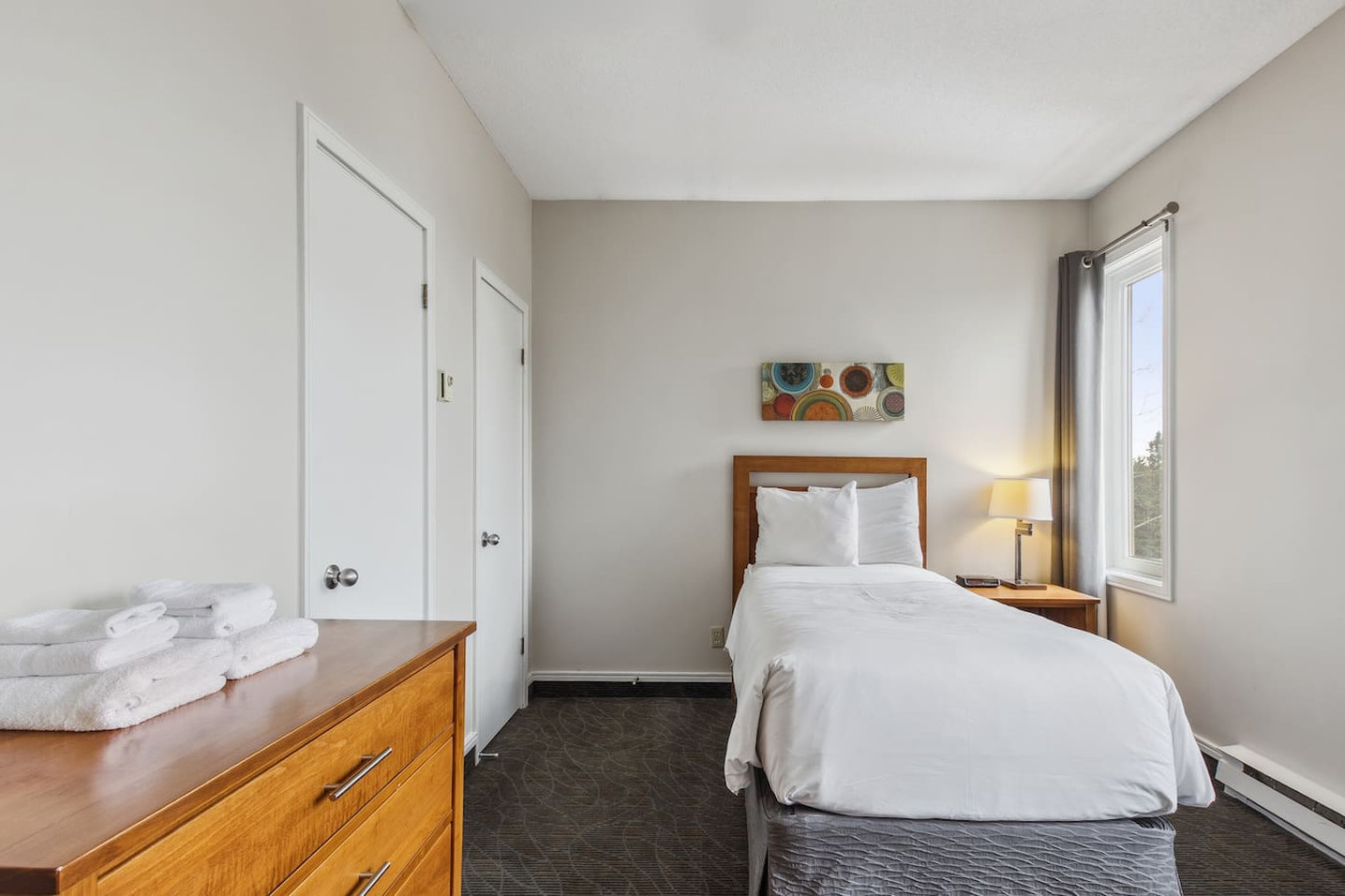 There are 2 bedrooms in this home. Bedroom #1, the primary, has a Queen size bed and cable TV. Bedroom #2 has 2 single beds and the living room has a double size sofa bed for additional sleeping space. There are 2 full washrooms in this home, both with a shower-in-tub.