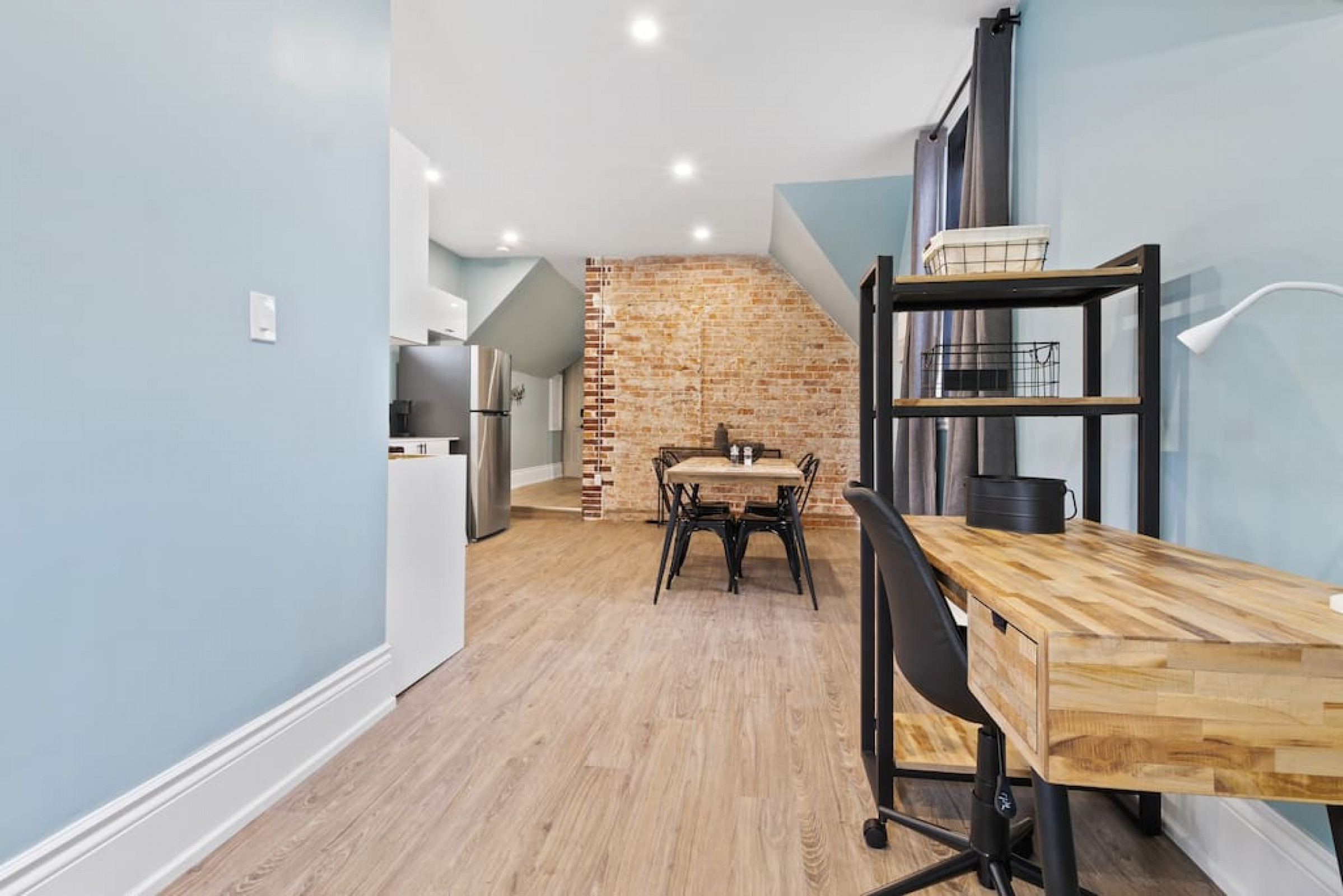 This new contemporary condo features potlights throughout, high ceilings and new flooring to compliment the space. With two bedrooms and a modern three-piece bath, this condo is situated in a prime location as the perfect escape to your own private retreat. This unit supports a work-from-home environment with open-concept living that includes your workspace, dining and kitchen before flowing into the living room, nestled behind the brick feature wall. Look out your windows and gaze below to the bustle of downtown Collingwood and enjoy living steps away from all the shops, restaurants and entertainment.
