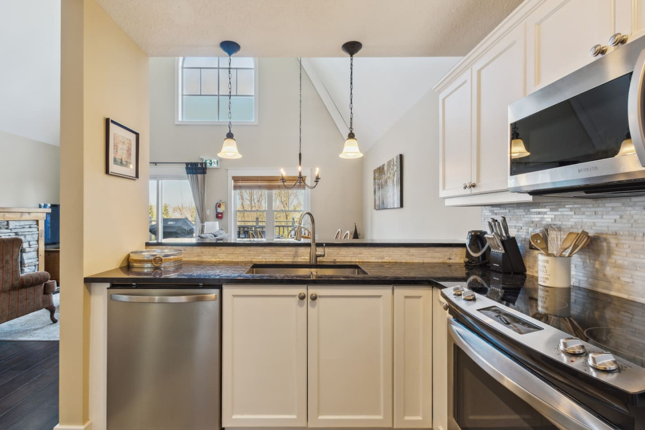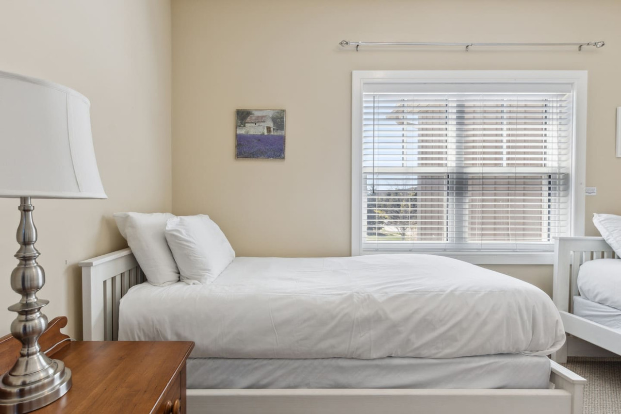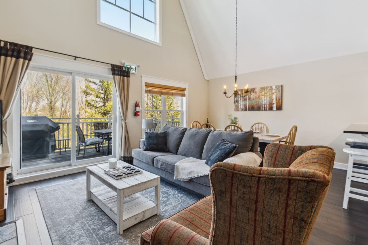 The spacious kitchen includes modern appliances and a dining area with room for 6 to gather. For the warmer months, there is a private balcony with a BBQ and outdoor dining area. With everything you need to prepare your own meals, you can enjoy the flexibility and convenience of cooking during your stay, or enjoy take out from the many local restaurants in Blue or Collingwood.
