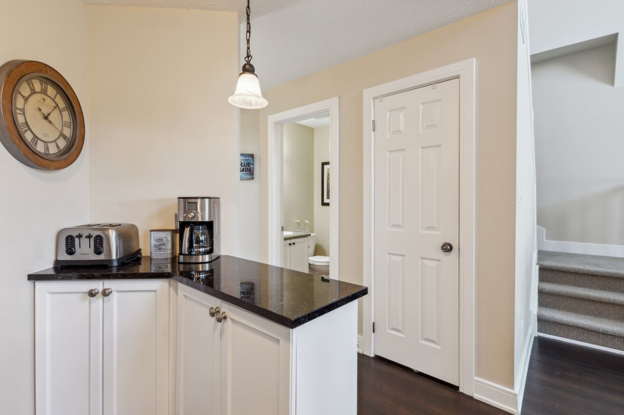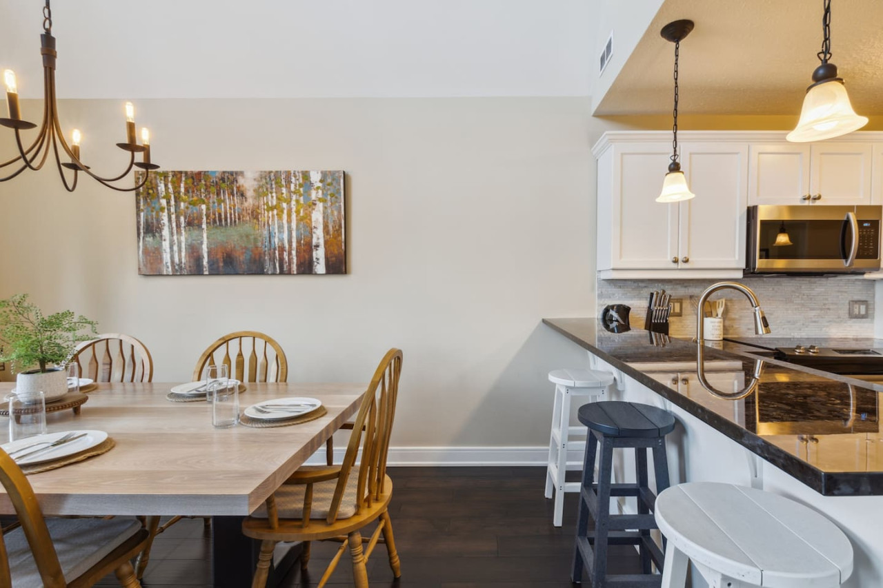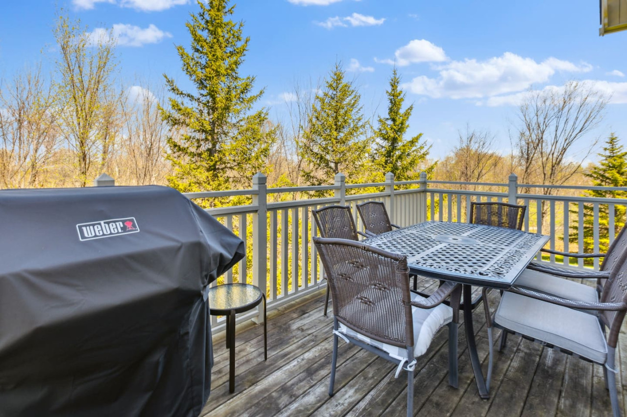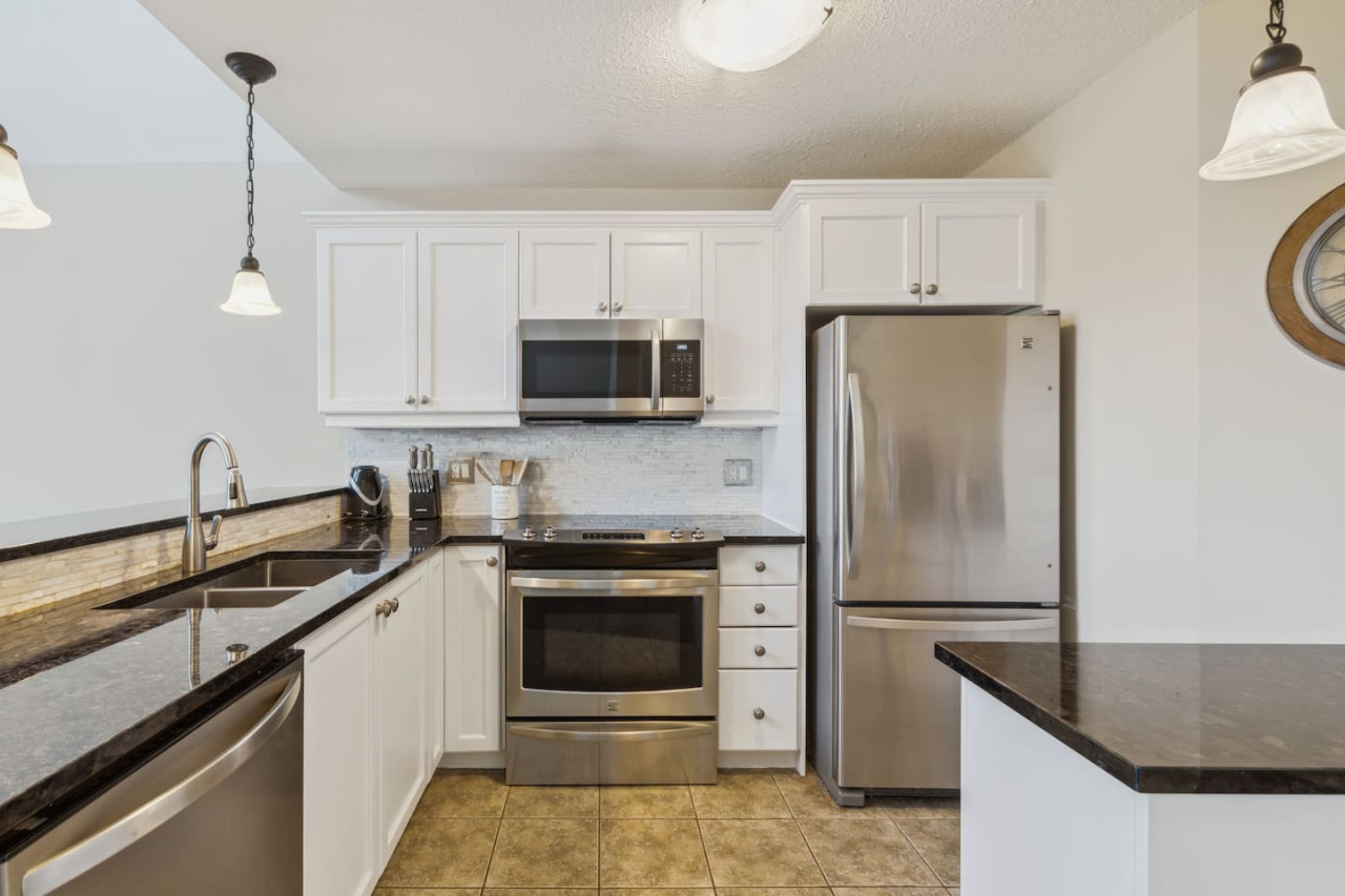 The spacious kitchen includes modern appliances and a dining area with room for 6 to gather. For the warmer months, there is a private balcony with a BBQ and outdoor dining area. With everything you need to prepare your own meals, you can enjoy the flexibility and convenience of cooking during your stay, or enjoy take out from the many local restaurants in Blue or Collingwood.