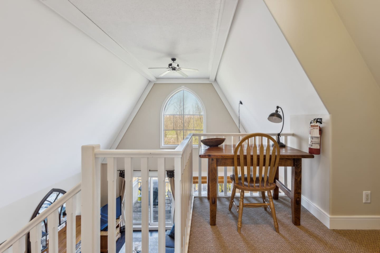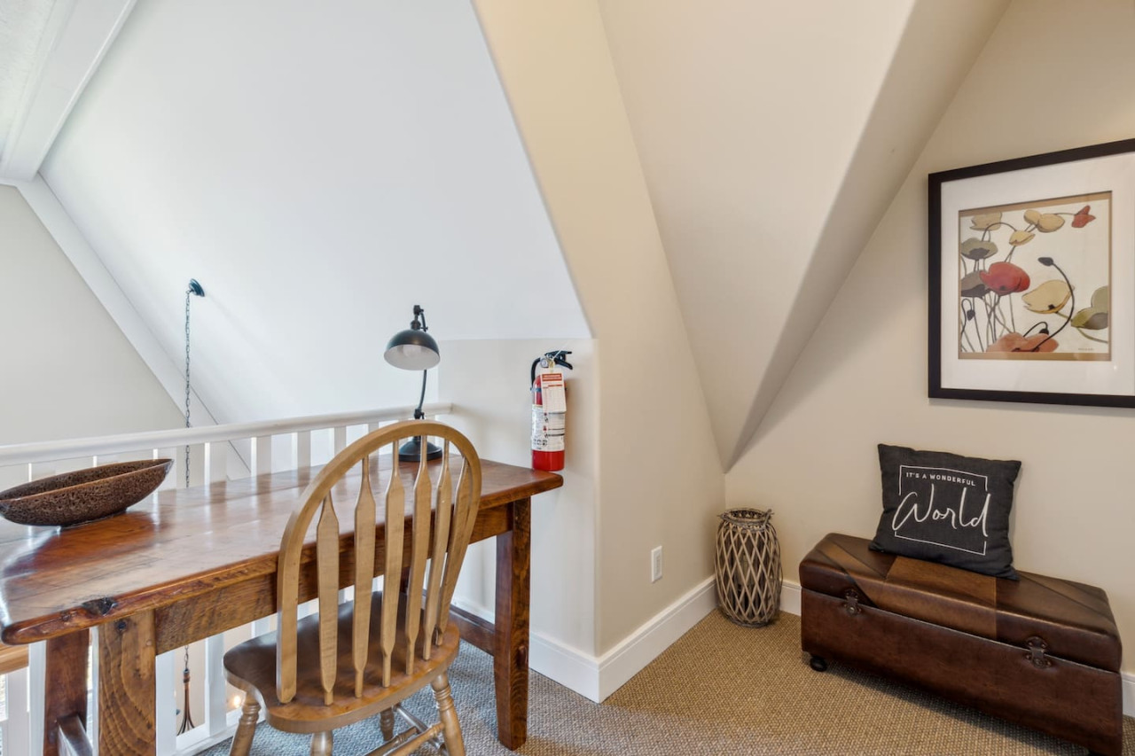 This home is the perfect blend of comfort and character with both rustic and modern accents. The living area has a gas fireplace and TV surrounded by comfortable seating. The couch can pull out to a queen size sofa bed to accommodate additional guests.