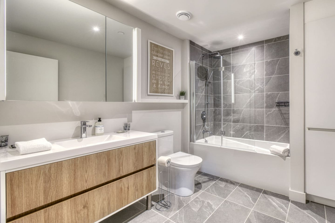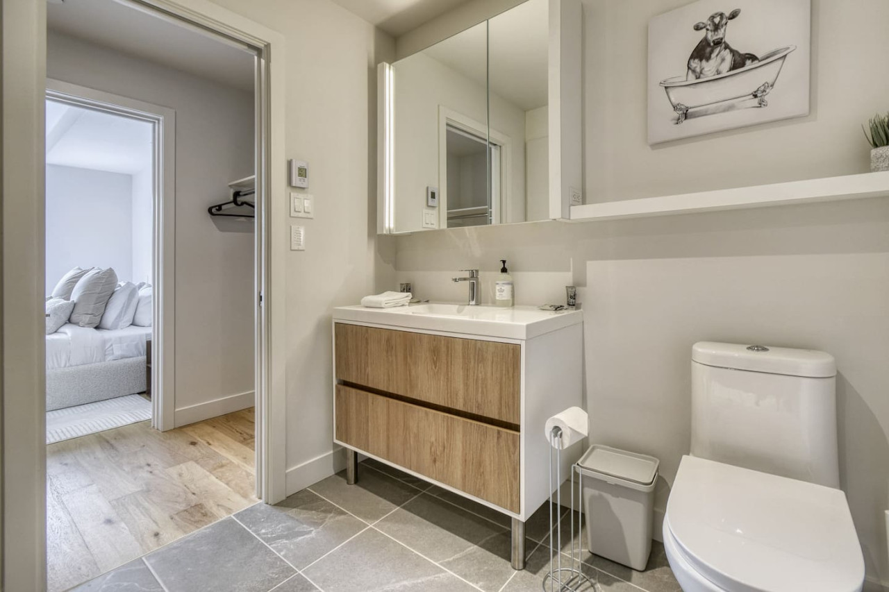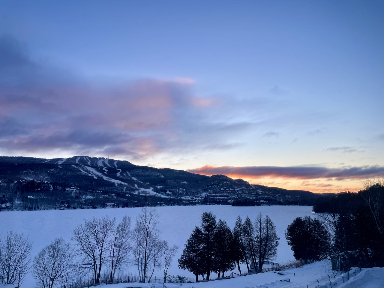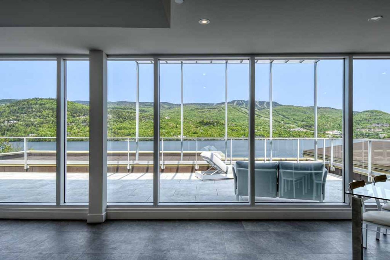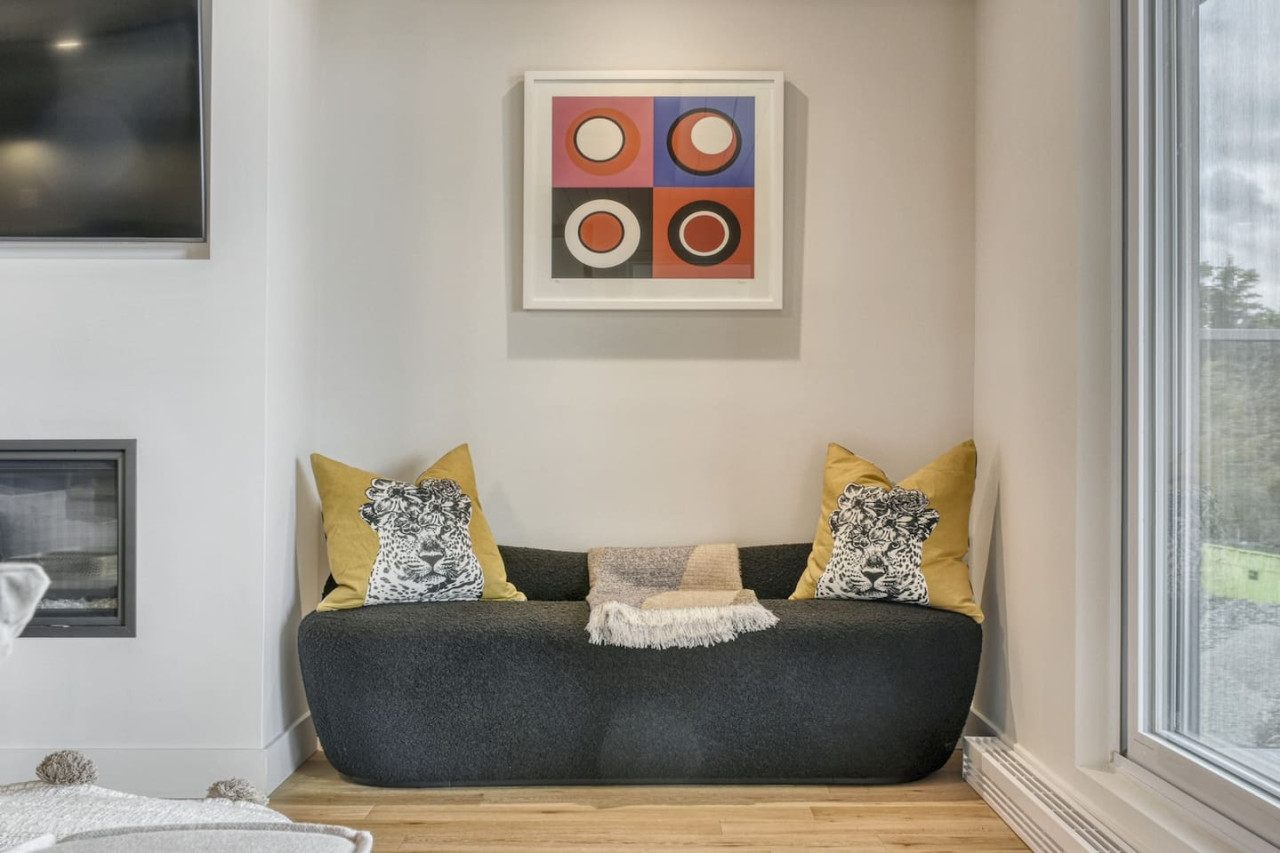 This condo embraces a minimalistic, clean, modern style while maintaining a practical, cozy and welcoming feel. The open concept living space features a comfortable sofa and chairs facing the gas fireplace and Smart TV, as well as an outdoor private balcony featuring breathtaking views of Lac Tremblant and the Ski Hill. The space is stocked with ample games for couples or families with children to enjoy together. No matter the weather or season, you’ll find an area to gather and relax in our lakeside home after a long day of skiing or exploring the area.