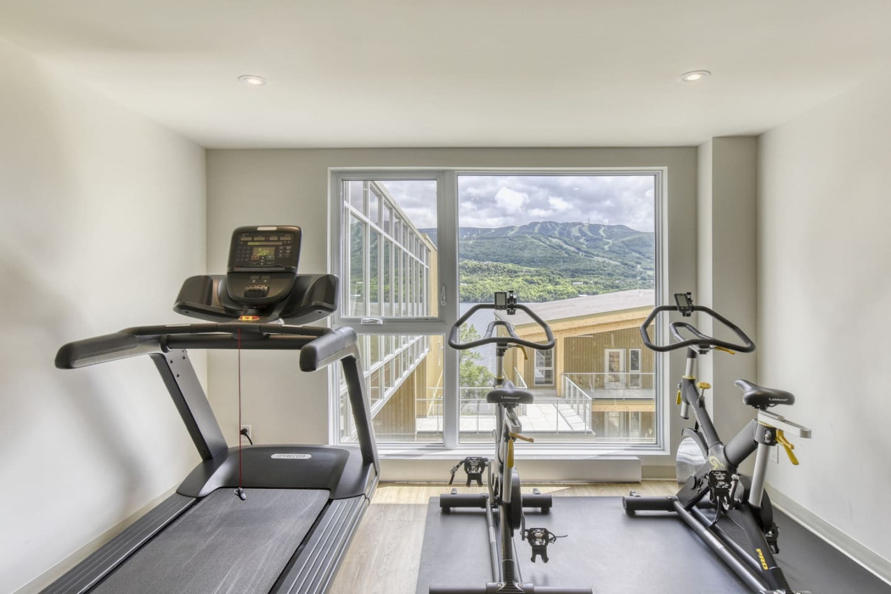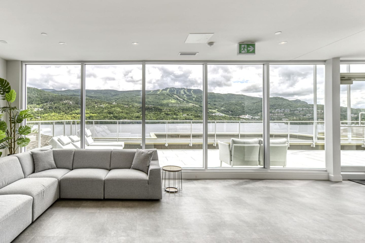 Vous êtes les bienvenus pour profiter de toutes les aires et commodités de la communauté de Lago, incluant le gym, les chaises longues avec vue, la salle de jeux et le balcon partagé. L’accès au lac est possible depuis Lago, grâce à un quai et une petite plage privée. Une piscine extérieure partagée est présentement en construction et n’est pas encore accessible aux invités.