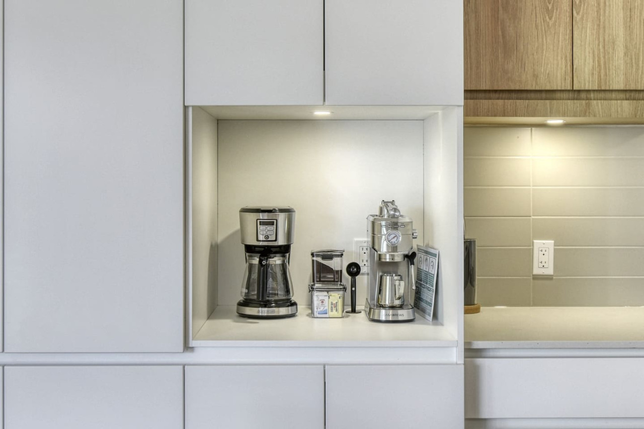 The fully-equipped kitchen has everything required, with modern appliances and ample counter space for preparing and cooking memorable meals. All cookware, bakeware, cutlery, and dishes are provided for your stay. All you need to bring is your food! Meals can be enjoyed with your family at the elegant dining table for 8.