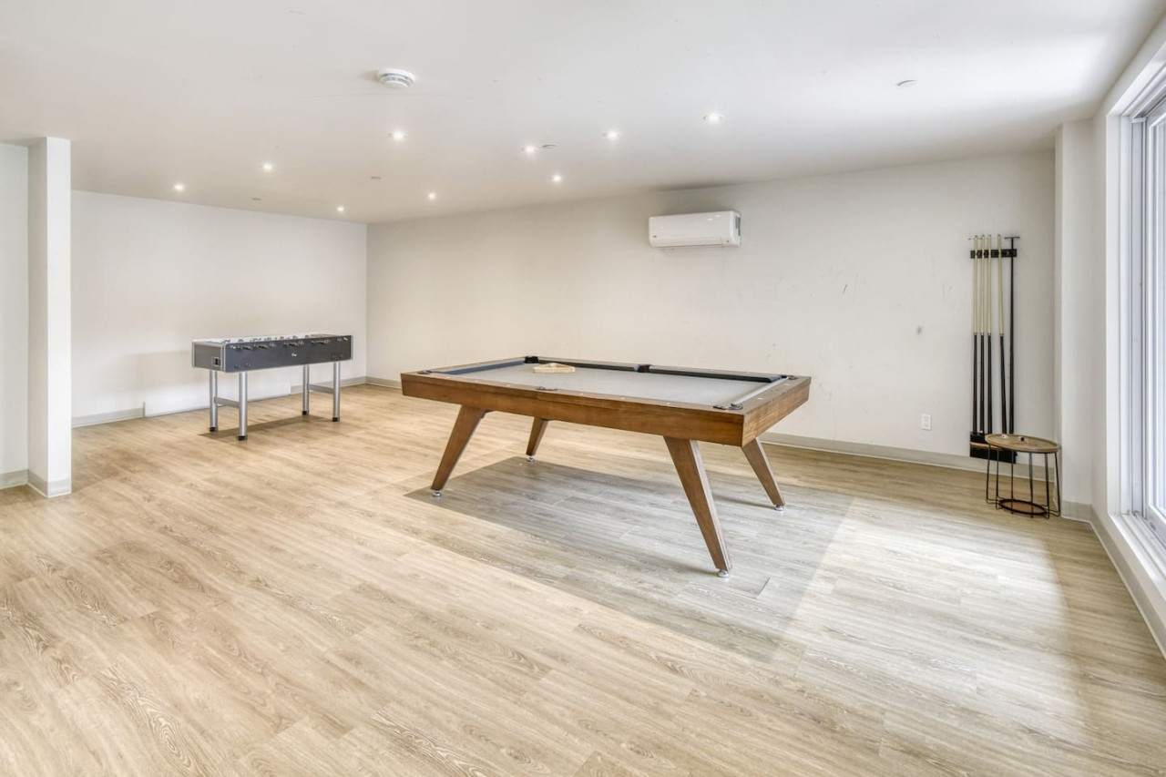 Ce condo adopte un style minimaliste, épuré et moderne tout en conservant un aspect pratique, douillet et accueillant. La salle de séjour à air ouvert comprend un canapé et des chaises confortables face à la cheminée au gaz et à la télévision intelligente, ainsi qu'un balcon extérieur privé offrant une vue imprenable sur le lac Tremblant et la station de ski. Le salon est équipé de nombreux jeux pour les couples ou les familles avec enfants. Quel que soit le temps ou la saison, vous trouverez un endroit pour vous rassembler et vous détendre dans cette maison au bord du lac après une longue journée de ski ou d'exploration de la région.