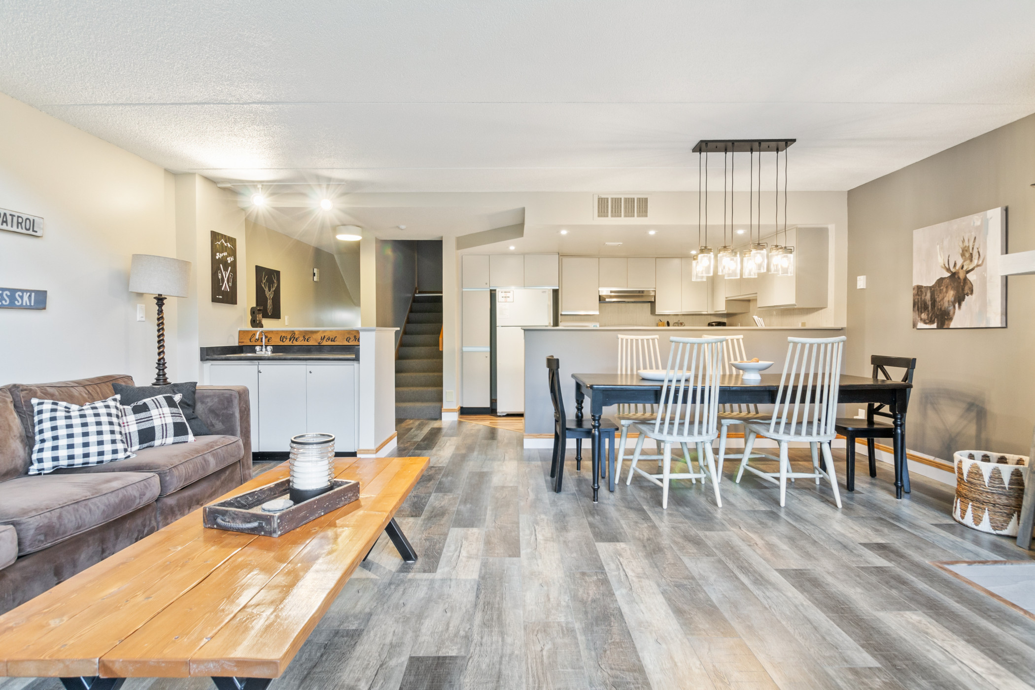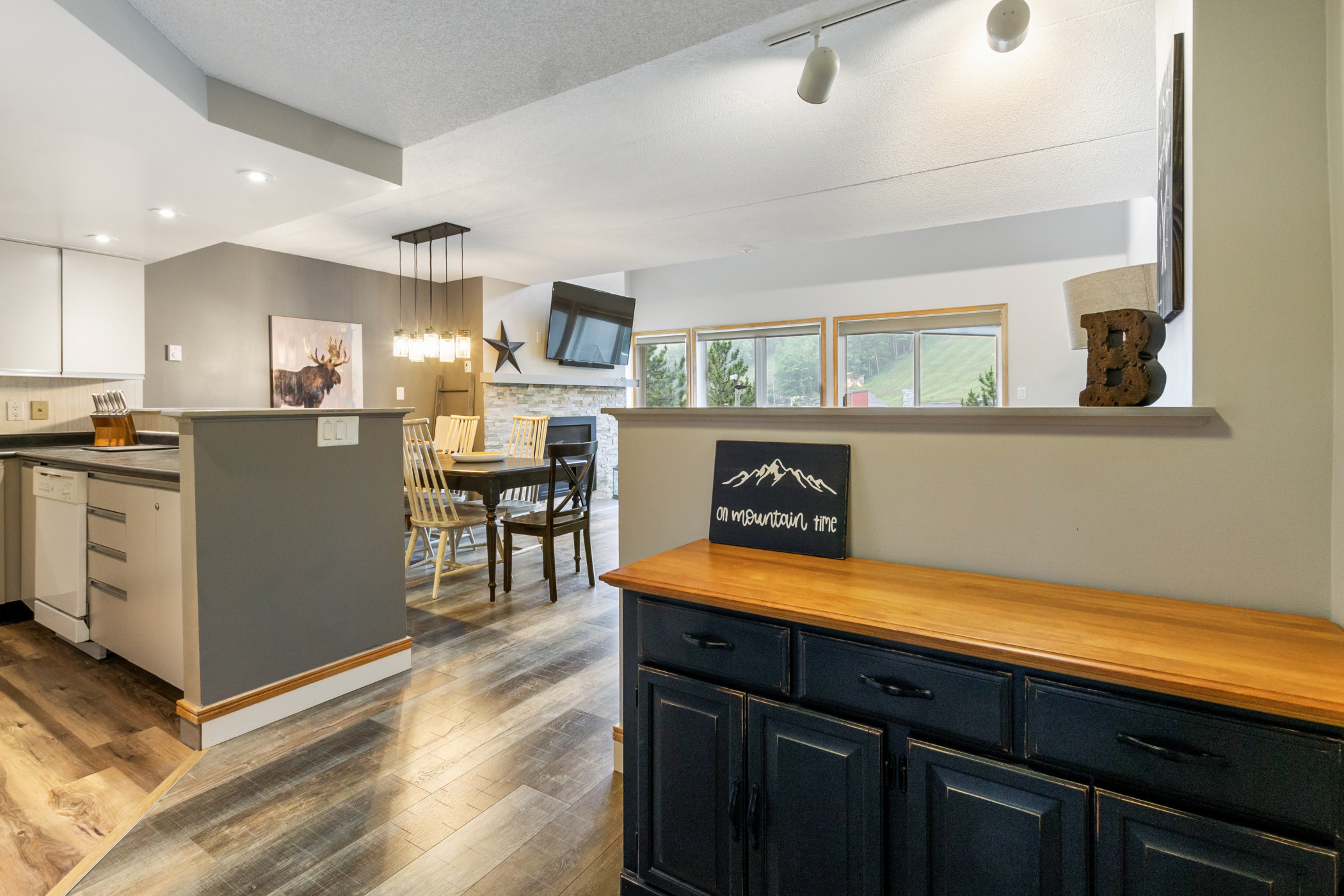 You will be delighted when you walk through the condo into the main living area with its high vaulted ceilings making the space bright and inviting. This super cozy, recently renovated condo offers you a premium ski and year-round activities vacation. Just picture yourself relaxing in front of a warm fireplace, looking out at the mountains while sharing a memorable holiday with family and friends.