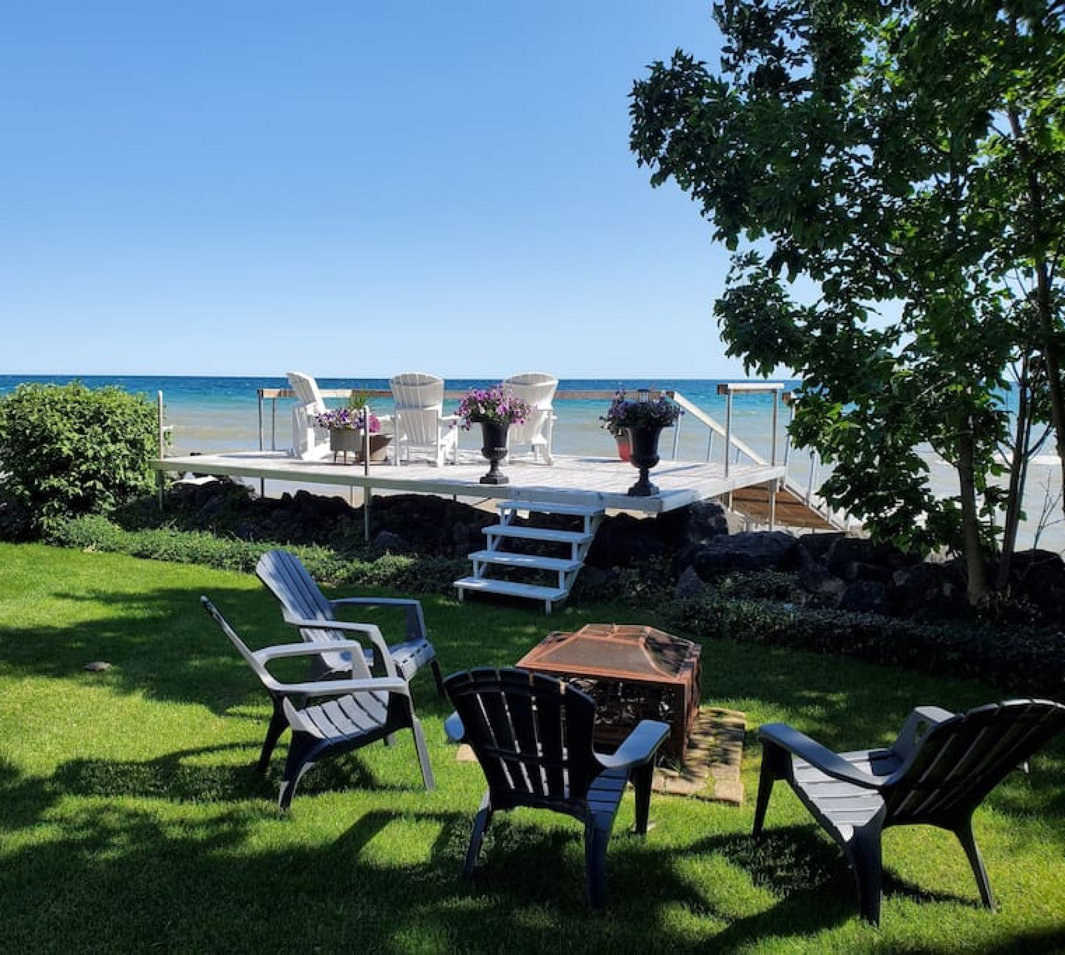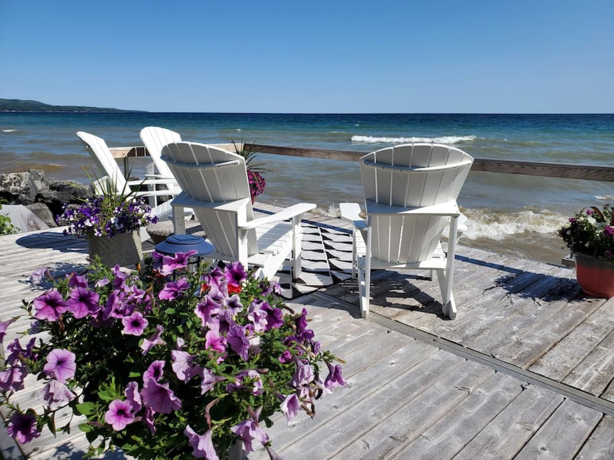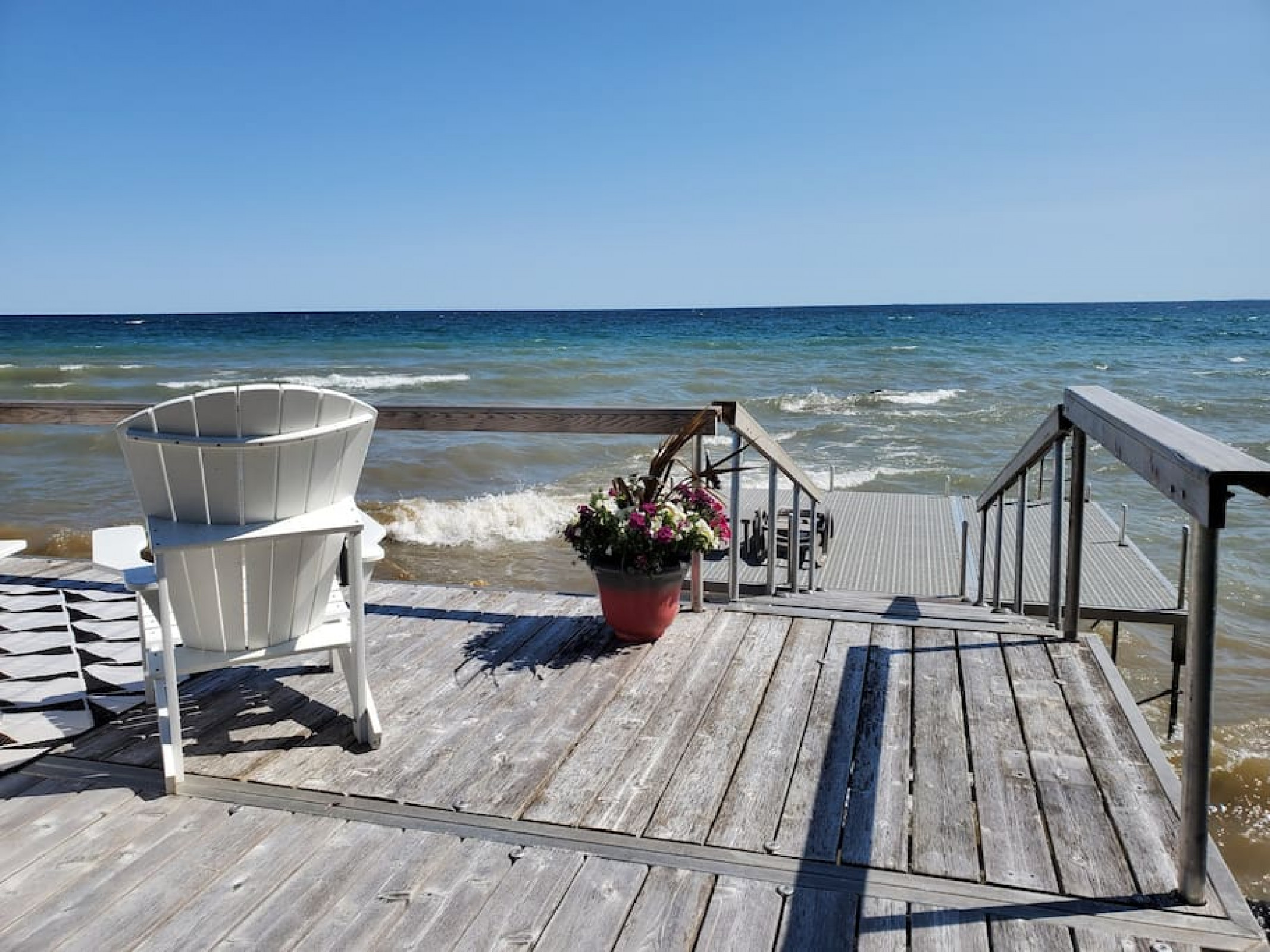 In Summer, enjoy swimming or sunbathing on the beautiful dock. In the evening, relax on the dock chairs and take in the gorgeous Georgian Bay sunsets. If you bring your kayaks or paddleboards, there is easy water access off the pebble beach or from the dock.