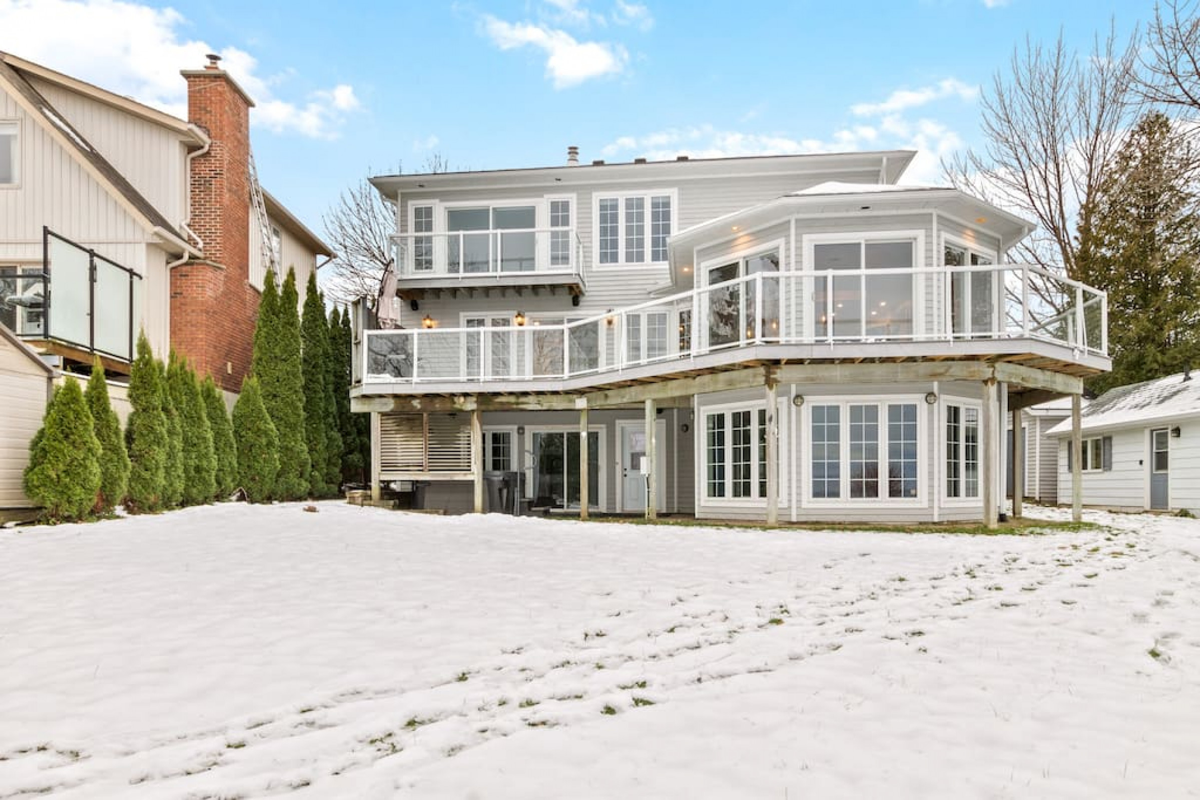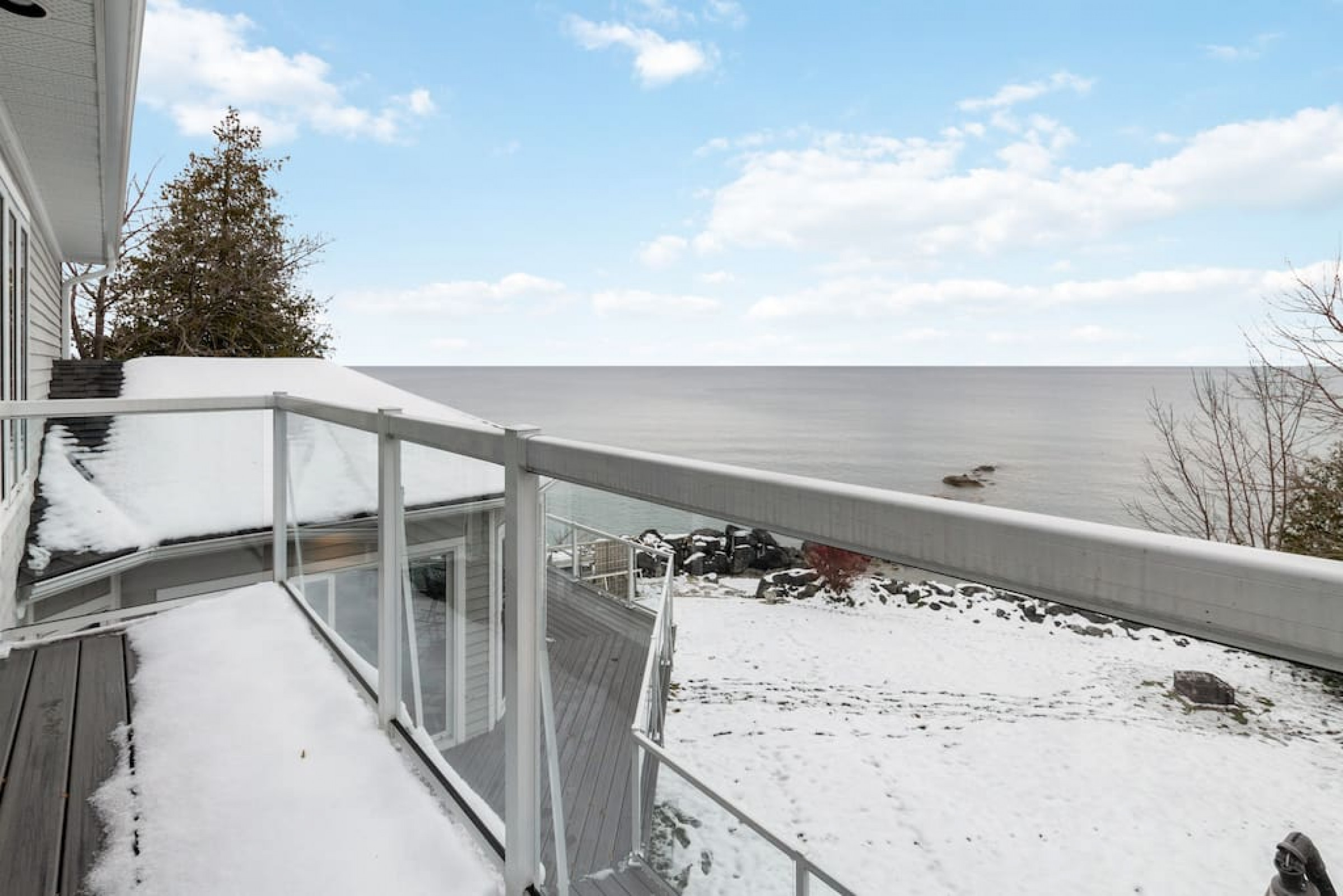 Embrace the changing seasons with ease. In the winter, grab your snowshoes and cross-country skis for an adventure on the nearby Georgian Trail leading to Collingwood. This high-end waterfront home boasts numerous amenities and breathtaking views from the outside and inside.