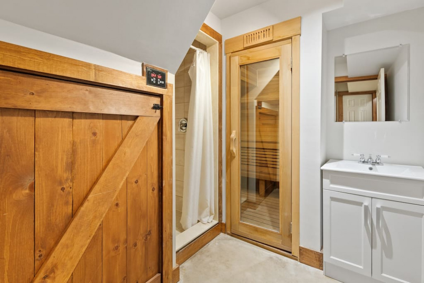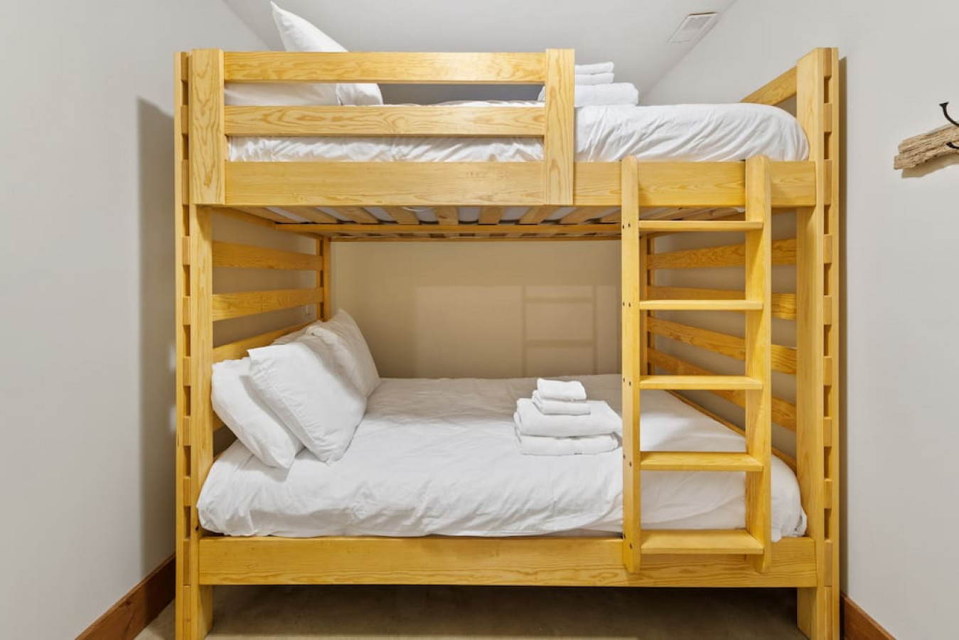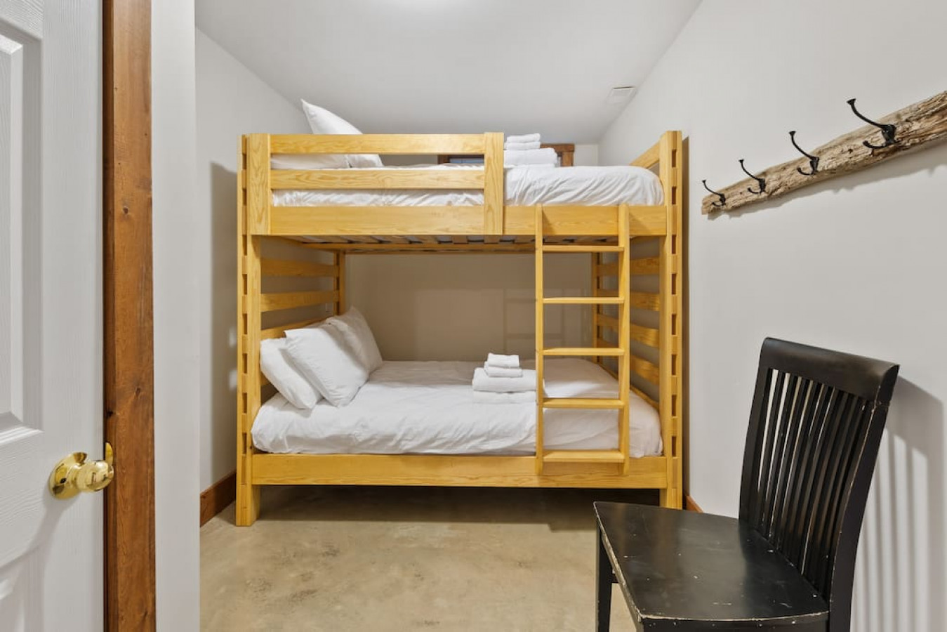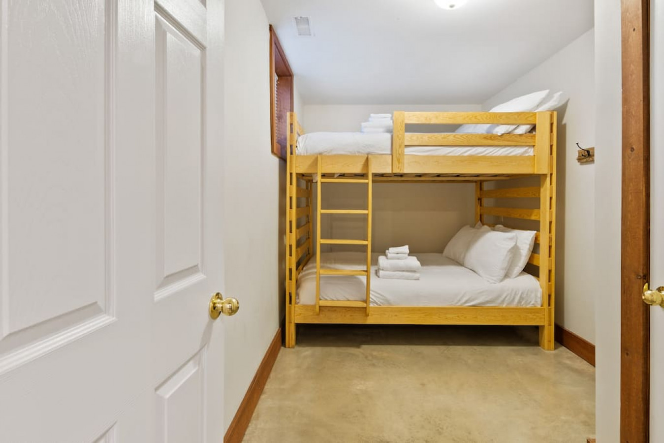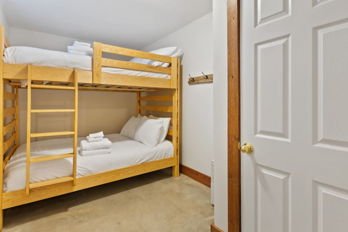 There is plenty of space for up to 16 guests spread across 3 floors. We have 7 bedrooms with 8 double beds and bunk beds, as well as 2.5 bathrooms. The main floor has one powder room and one full bathroom (with a tub, shower, and toilet.). The lower level has a stand-up shower and sauna; there is no toilet on this level. We provide hotel quality linens, fresh towels and quality toiletries for our guests.