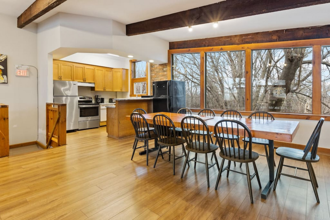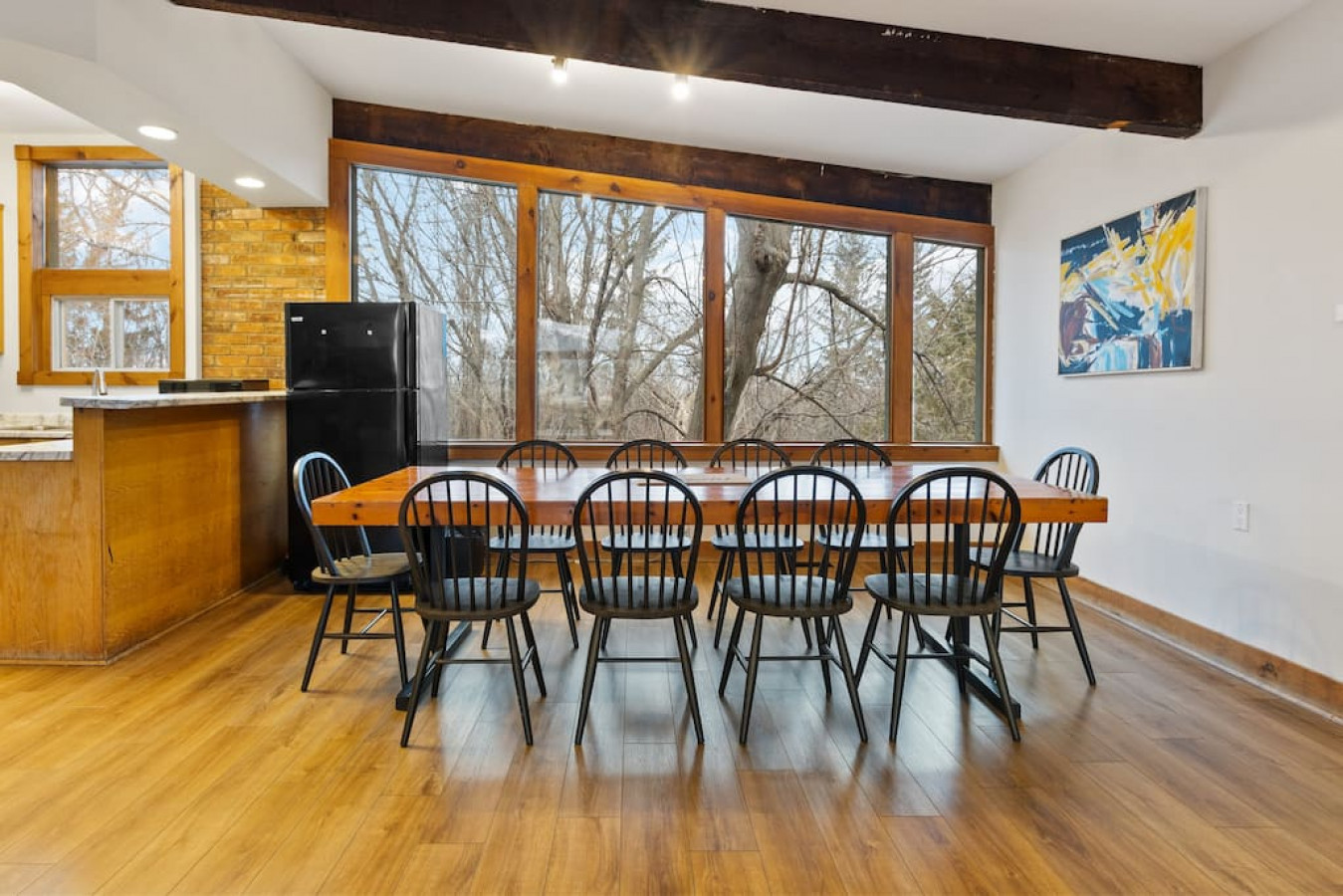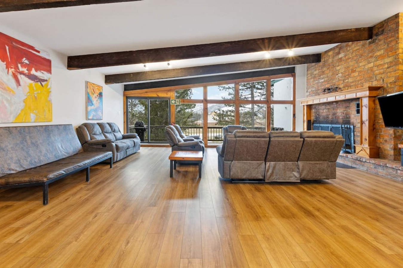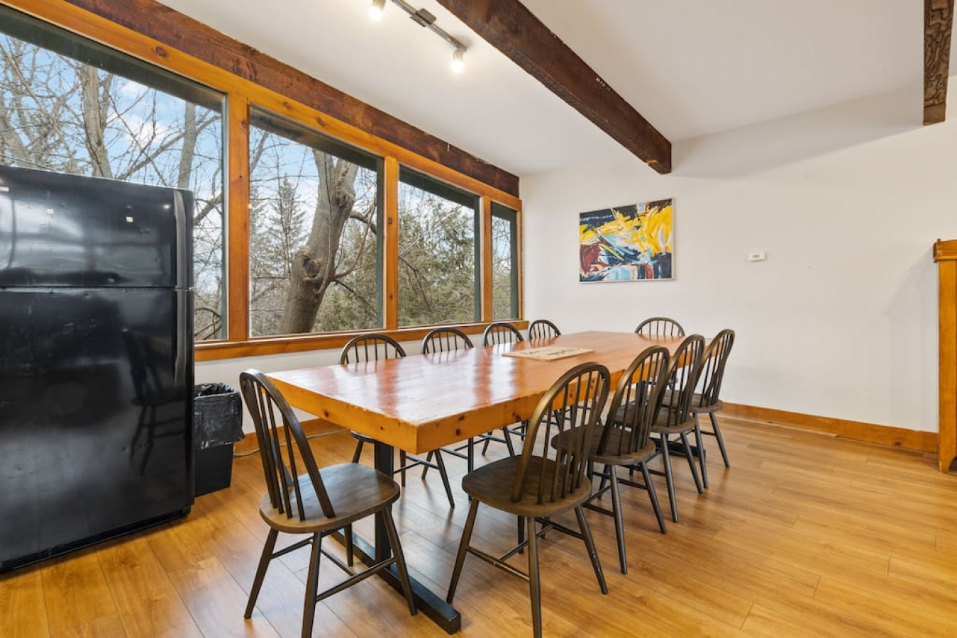 Make memories with friends and family in the big, open Great Room. Take in the natural light and views of Blue through the big windows. Wood ceilings and beams along with a decorative only brick fireplace make this a charming cottage-style atmosphere for apres ski.