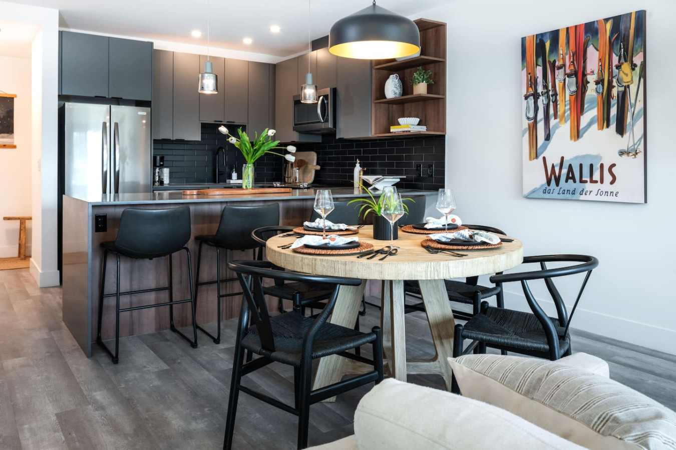 The kitchen is equipped with every appliance you would need for a night in cooking when you’re not at one of Revelstoke’s delicious local restaurants. A drip coffee machine and local coffee is available for your morning brews.