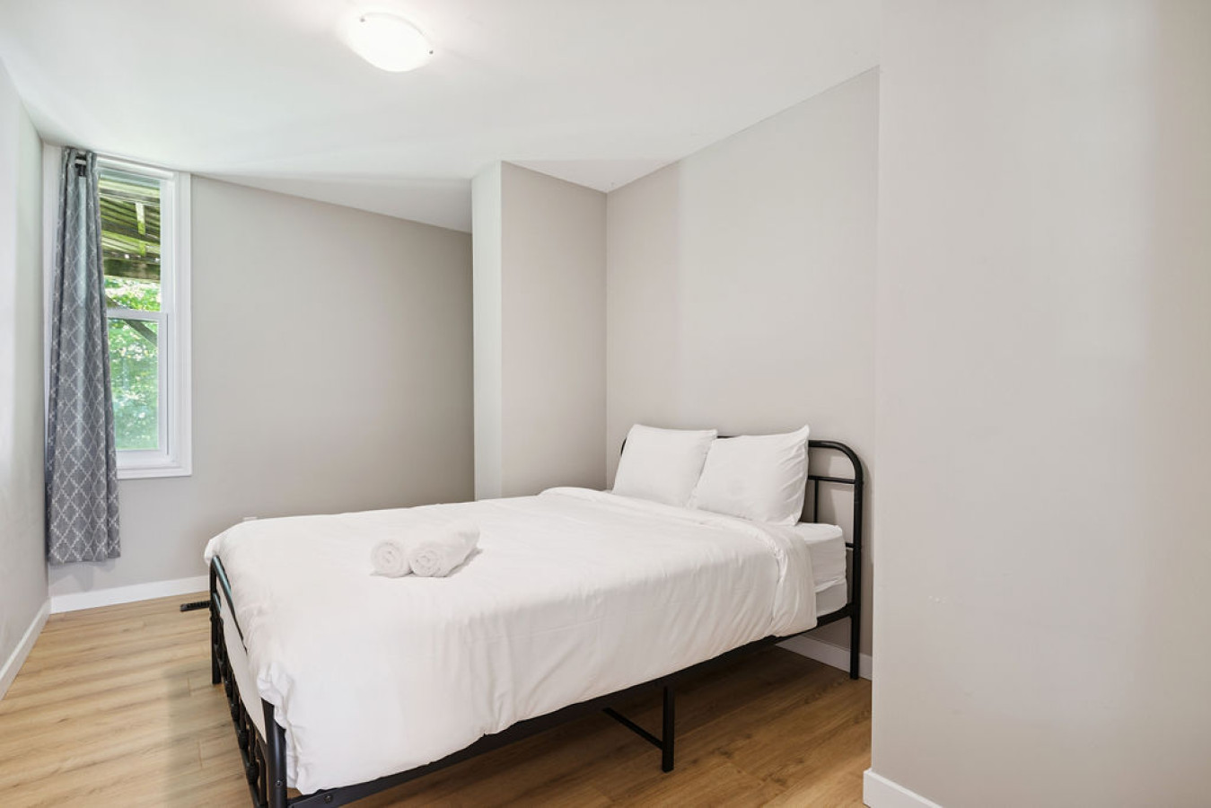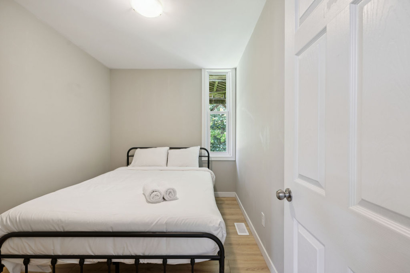 This chalet has 8 bedrooms, all located on the second floor and basement. We provide all linens, towels and some travel-size toiletries for you during your stay. There are 2 full bathrooms in this chalet, one on the main (middle) floor and one in the basement.