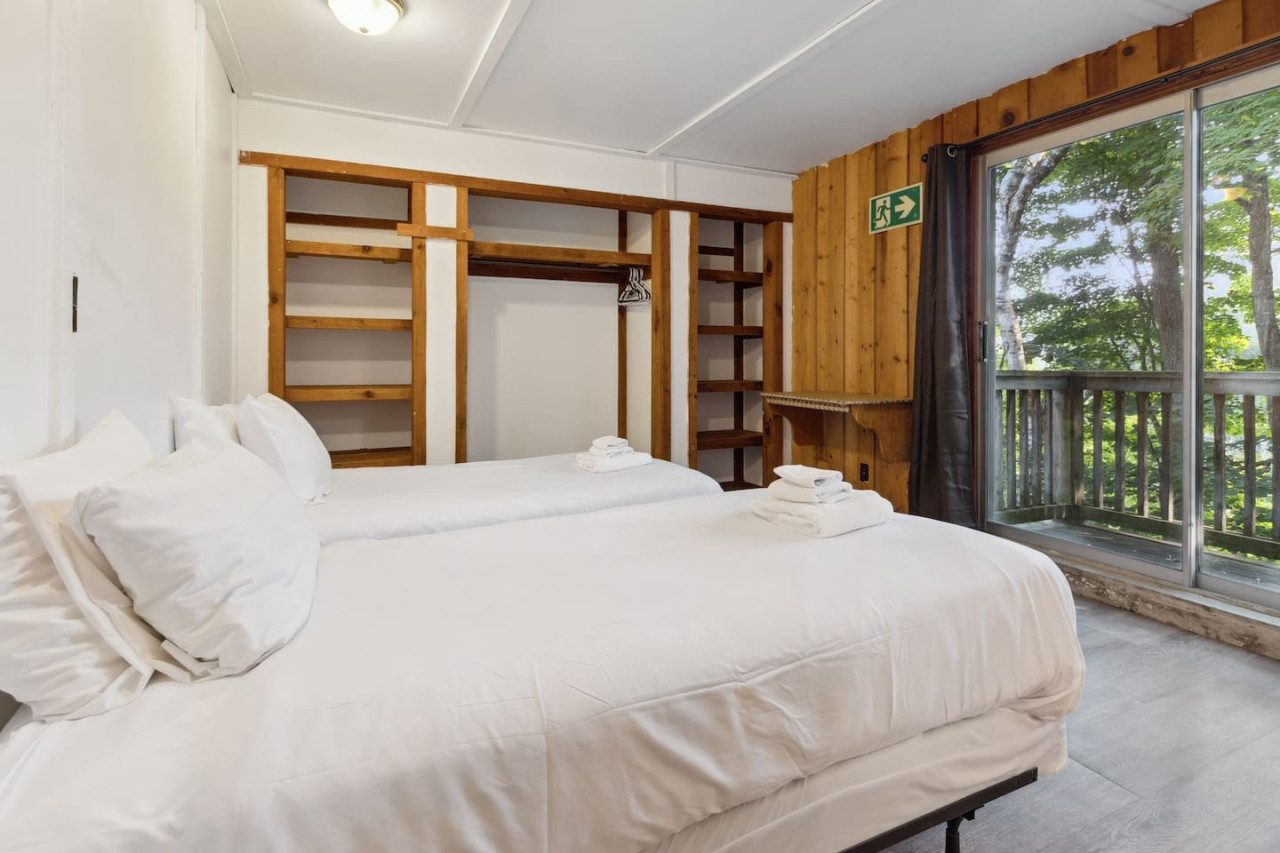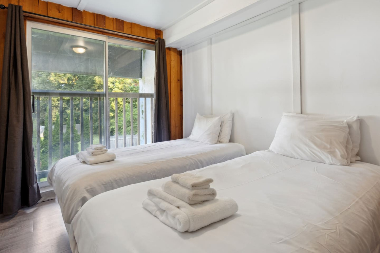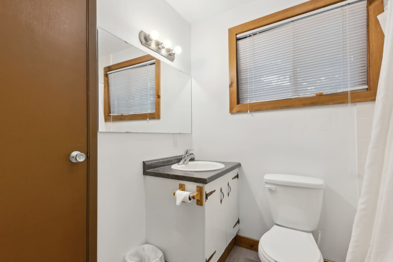 This chalet has 6 bedrooms on the 1st (basement) and 2nd levels of this home. Bedrooms 1-3 each have 2 double beds, and bedrooms 4-6 each have a double over double bunk bed. Please note these bedrooms are standard and do not have closets or dressers for clothing storage. There are 2 full bathrooms in this home, one with a shower and one with a shower-in-tub. We provide all linens, towels and some travel-size toiletries for you during your stay.