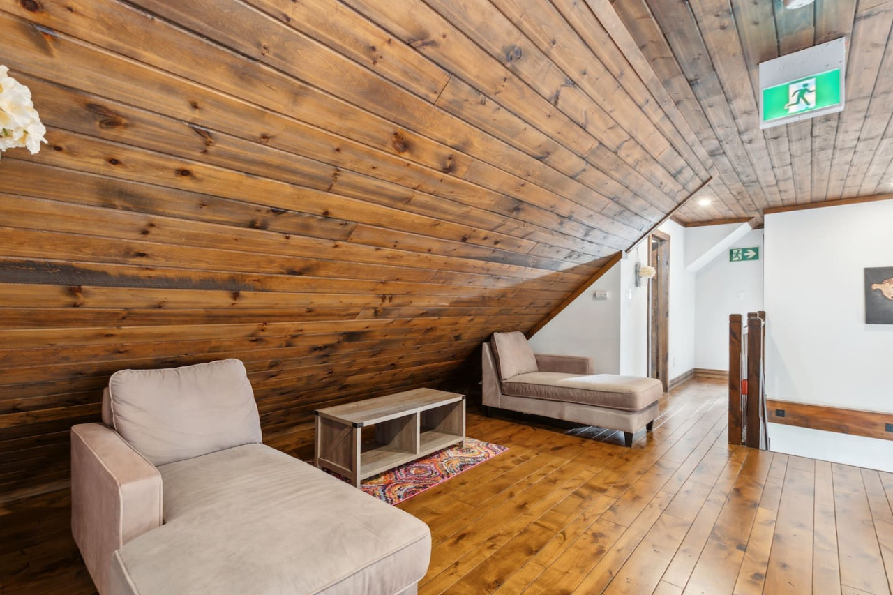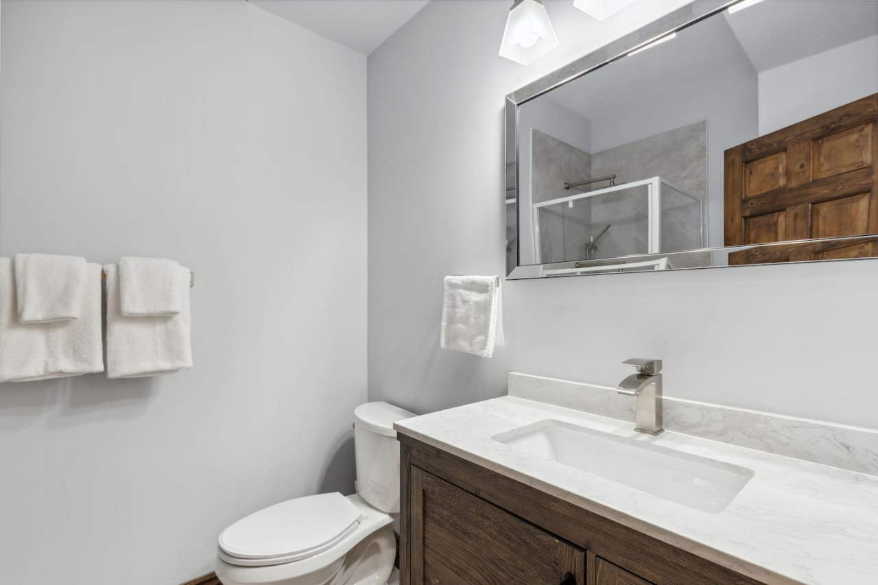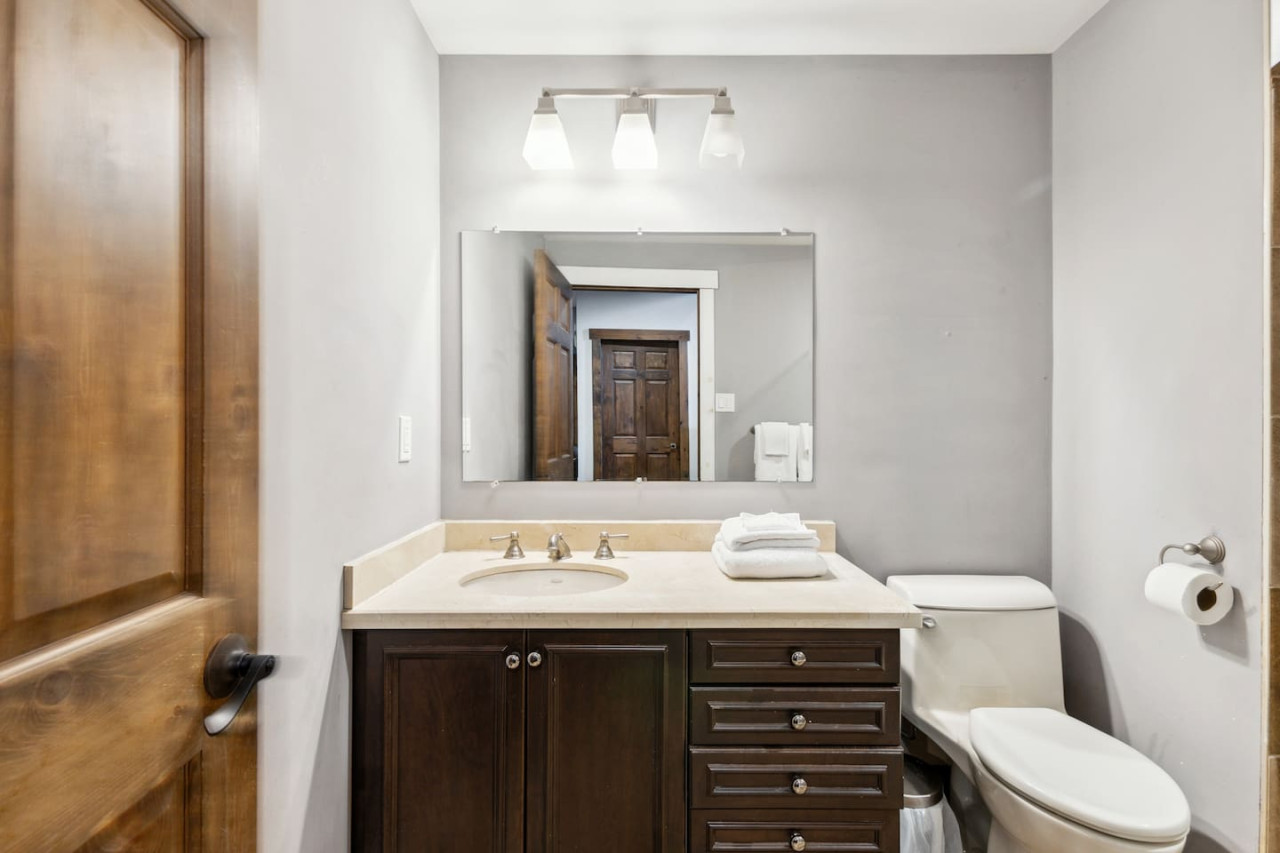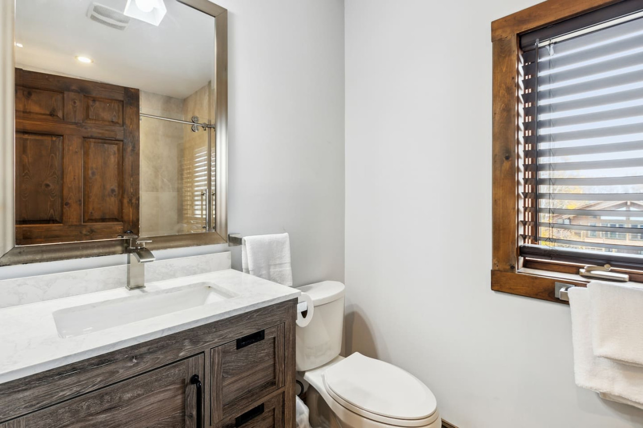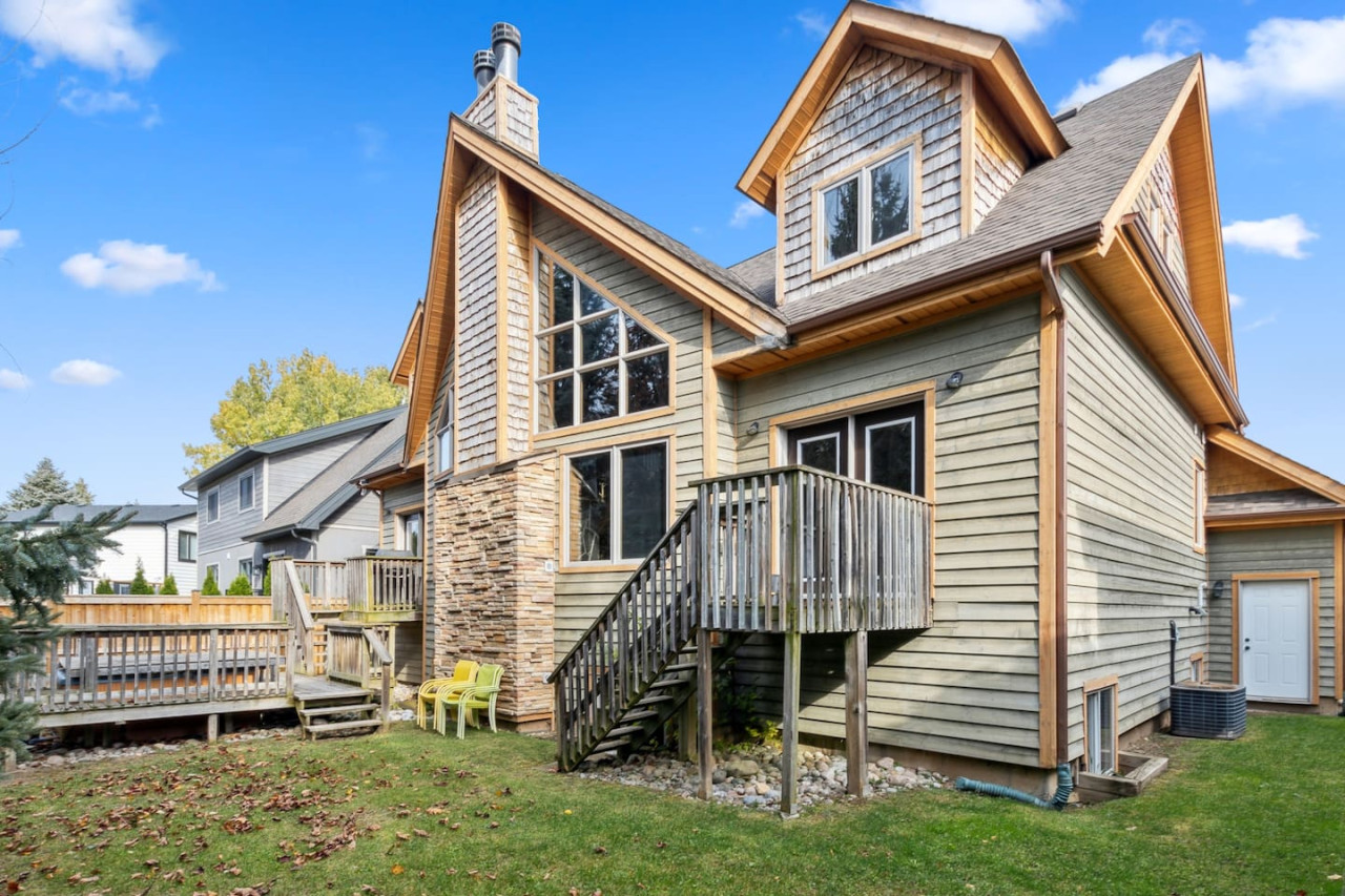 Unwind among the cozy decor, including a gorgeous antler chandelier overlooking the main living area, furnished with a large sectional couch facing 1 of the 2 wood burning fireplaces (bring your own firewood) and a Smart TV. Upstairs, in the loft, you’ll find 2 additional chaise lounges. In the basement living area, you can enjoy the games area with the pool table, foosball, and darts surrounding the bar and second wood burning fireplace.