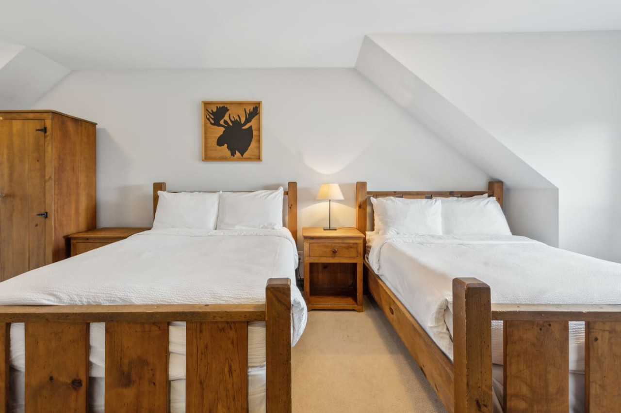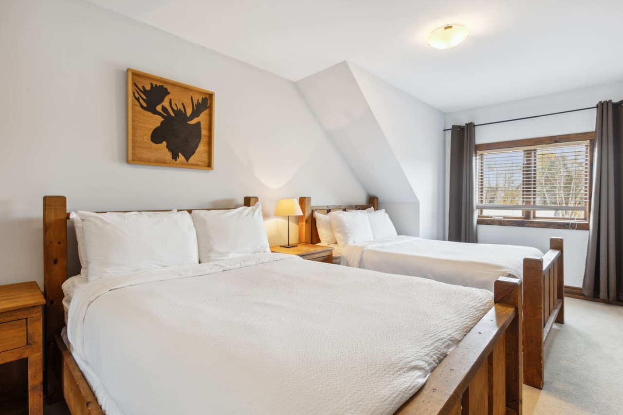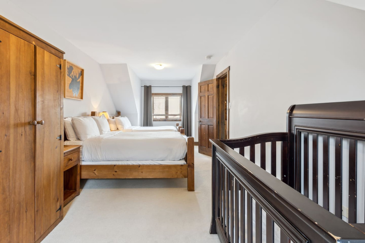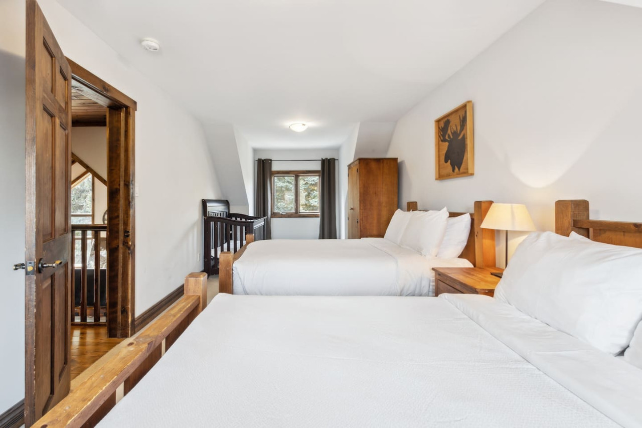 There are 7 bedrooms in this chalet. 5 of the 7 bedrooms have queen size beds, and 2 of the 7 have two double beds each. There is a full bathroom on every floor of this home, with 4 bathrooms in total.