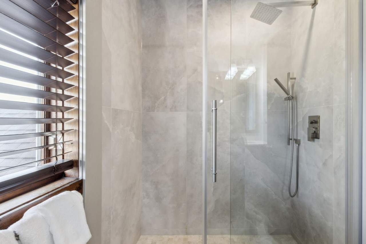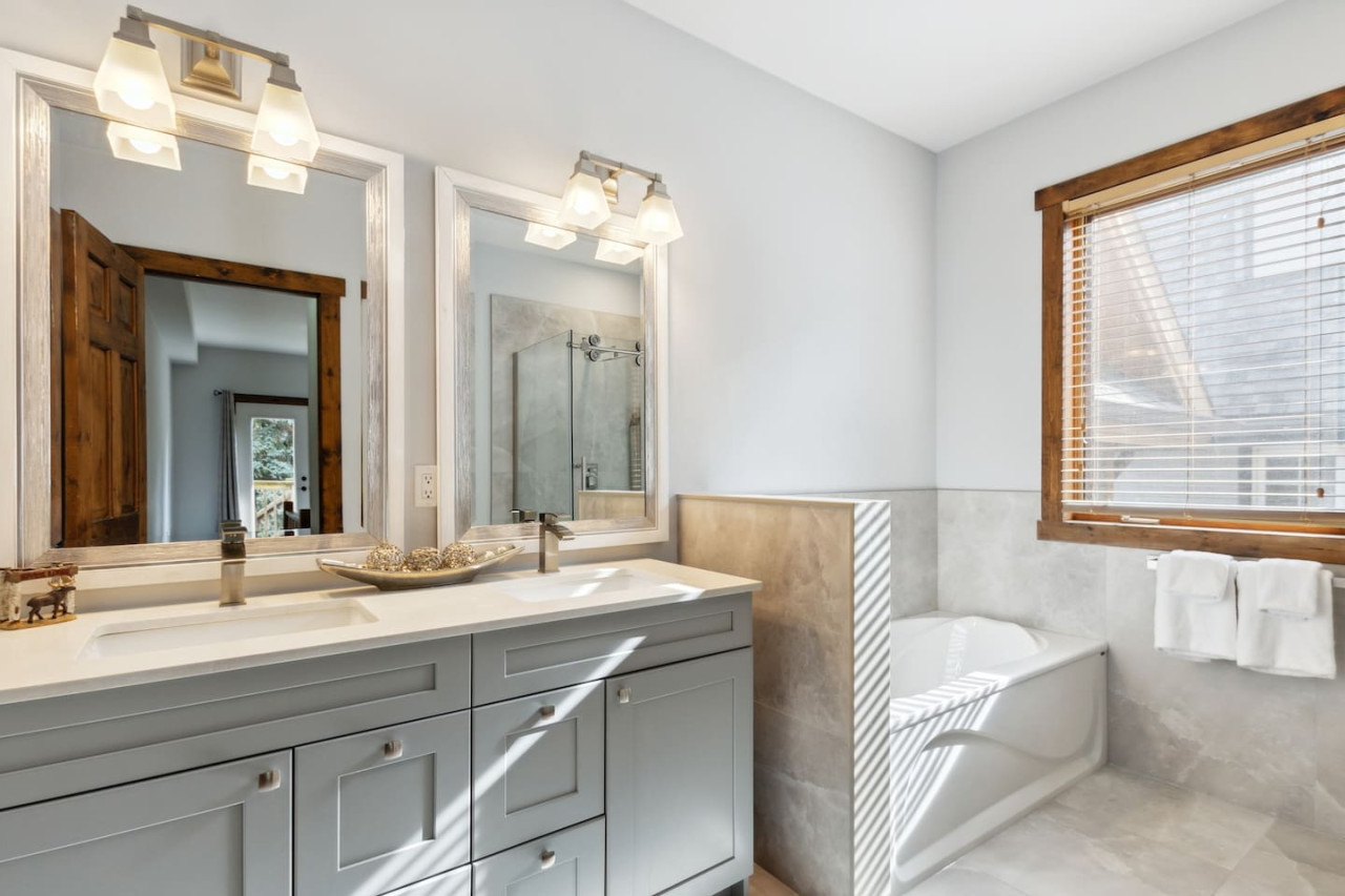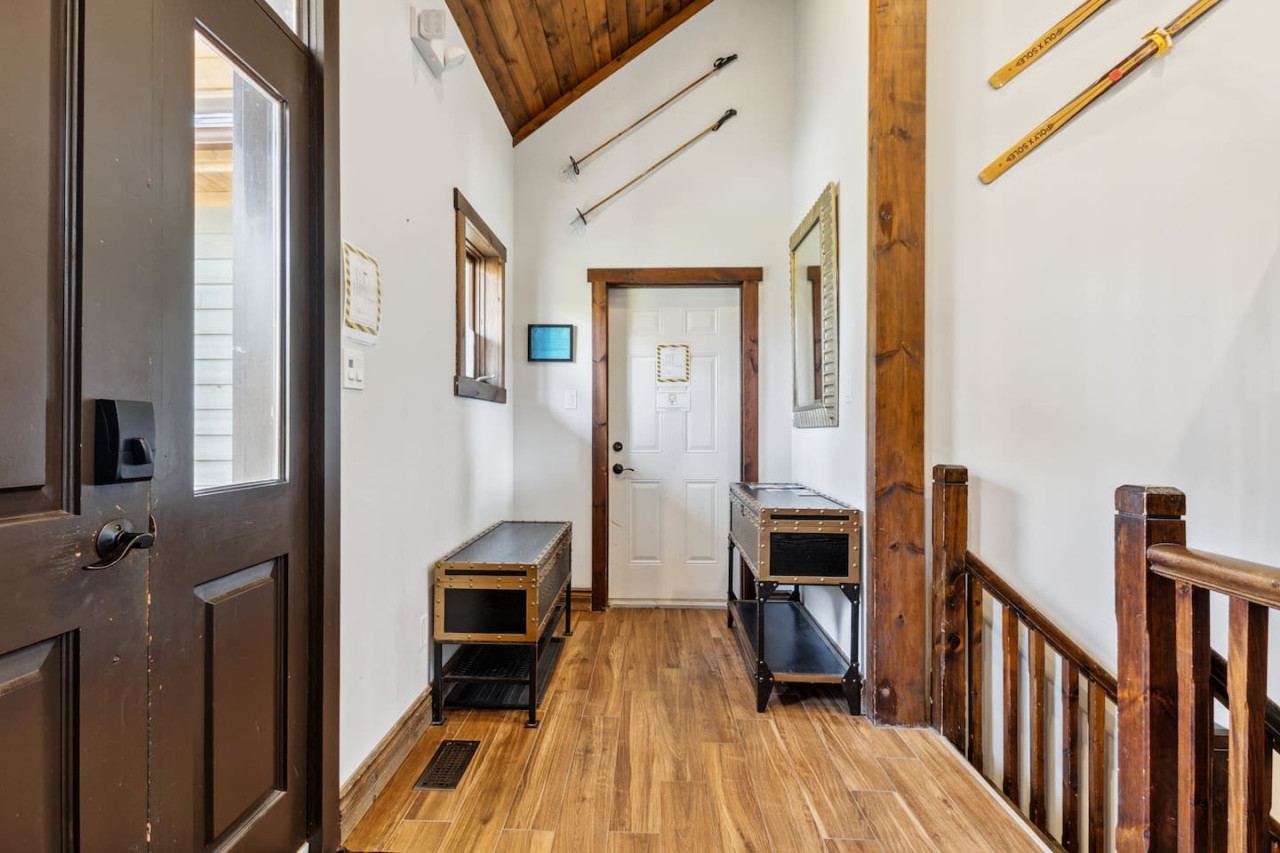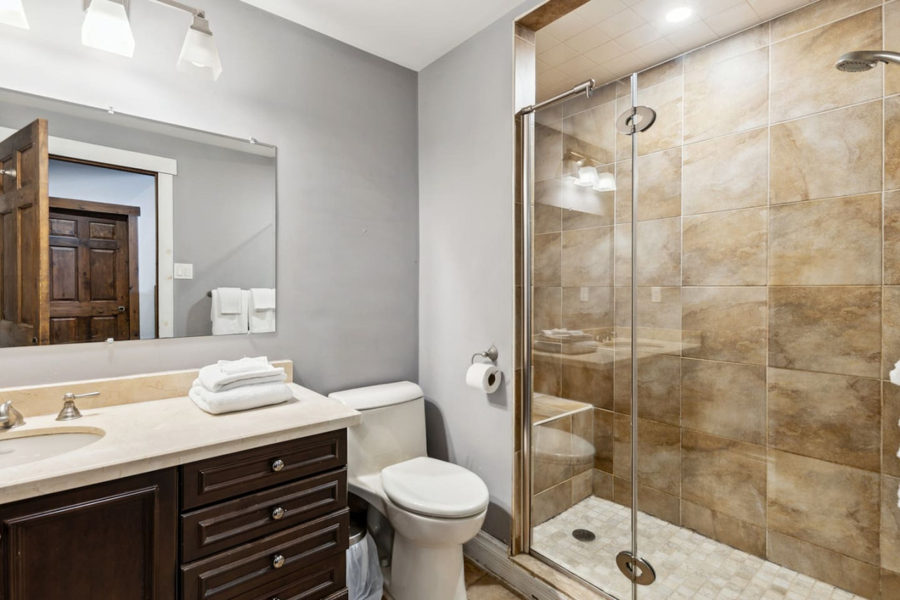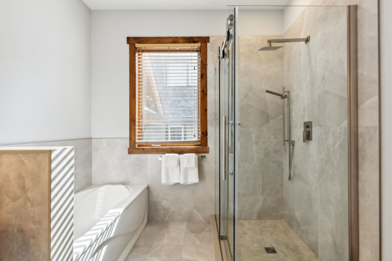 There are 7 bedrooms in this chalet. 5 of the 7 bedrooms have queen size beds, and 2 of the 7 have two double beds each. There is a full bathroom on every floor of this home, with 4 bathrooms in total.