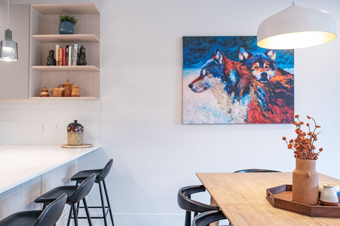 The kitchen has everything you need, from modern appliances to cookware and a coffee maker - all you need is your food and spices! The spacious dining area and kitchen island are perfect for gathering when you're not out enjoying Revelstoke's local restaurants.