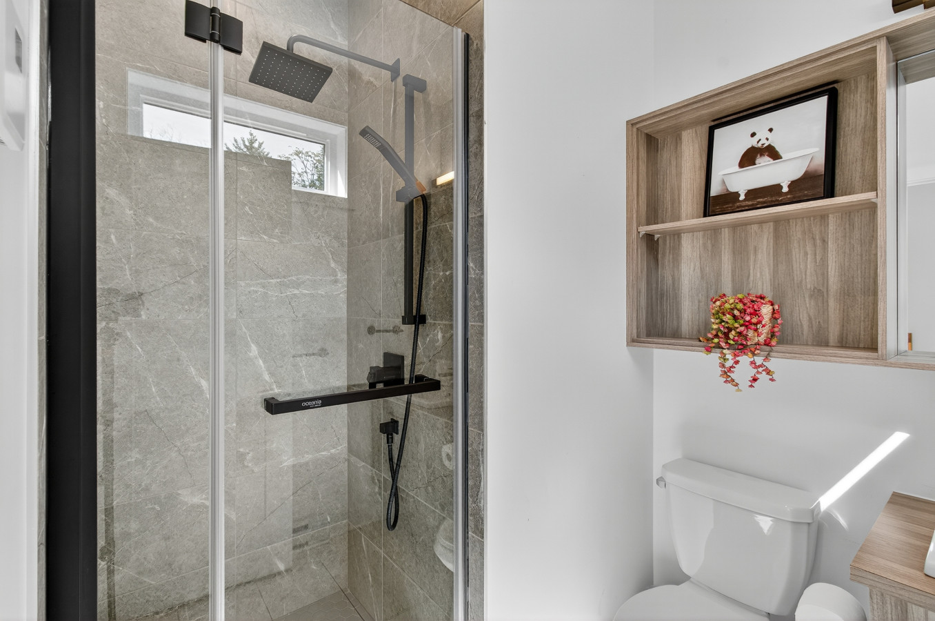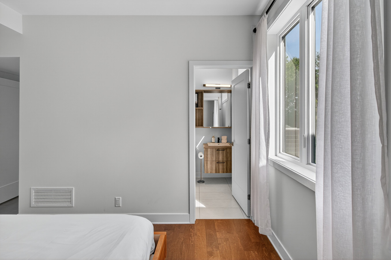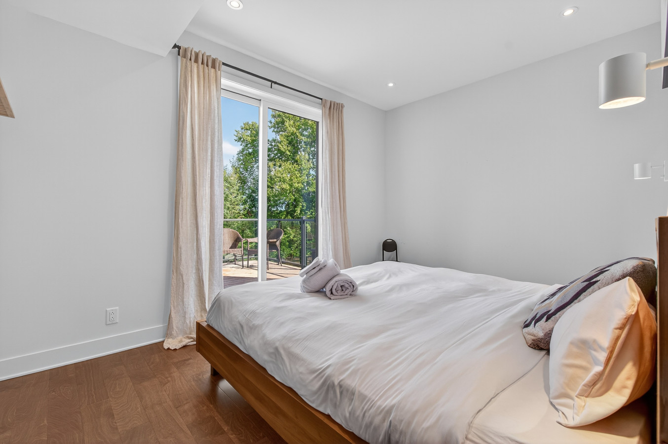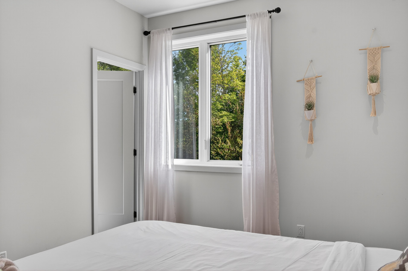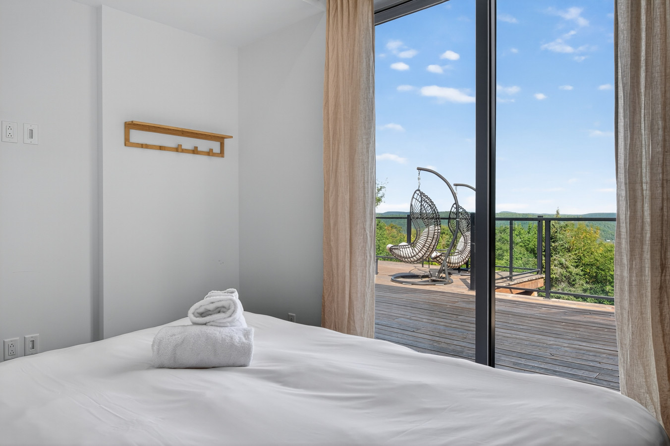 Les deux chambres principales sont situées au rez-de-chaussée et disposent chacune d'un lit King et d'une salle de bains attenante. La chambre 3 dispose d'un lit Queen. La chambre 4 est située au deuxième étage dans la mezzanine et dispose de deux lits superposés simples sur doubles, ainsi que d'une télévision Smart TV à écran plat.