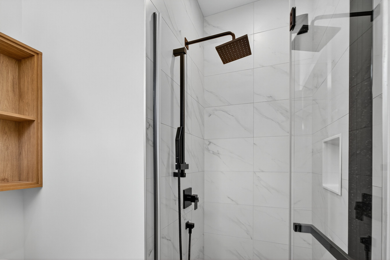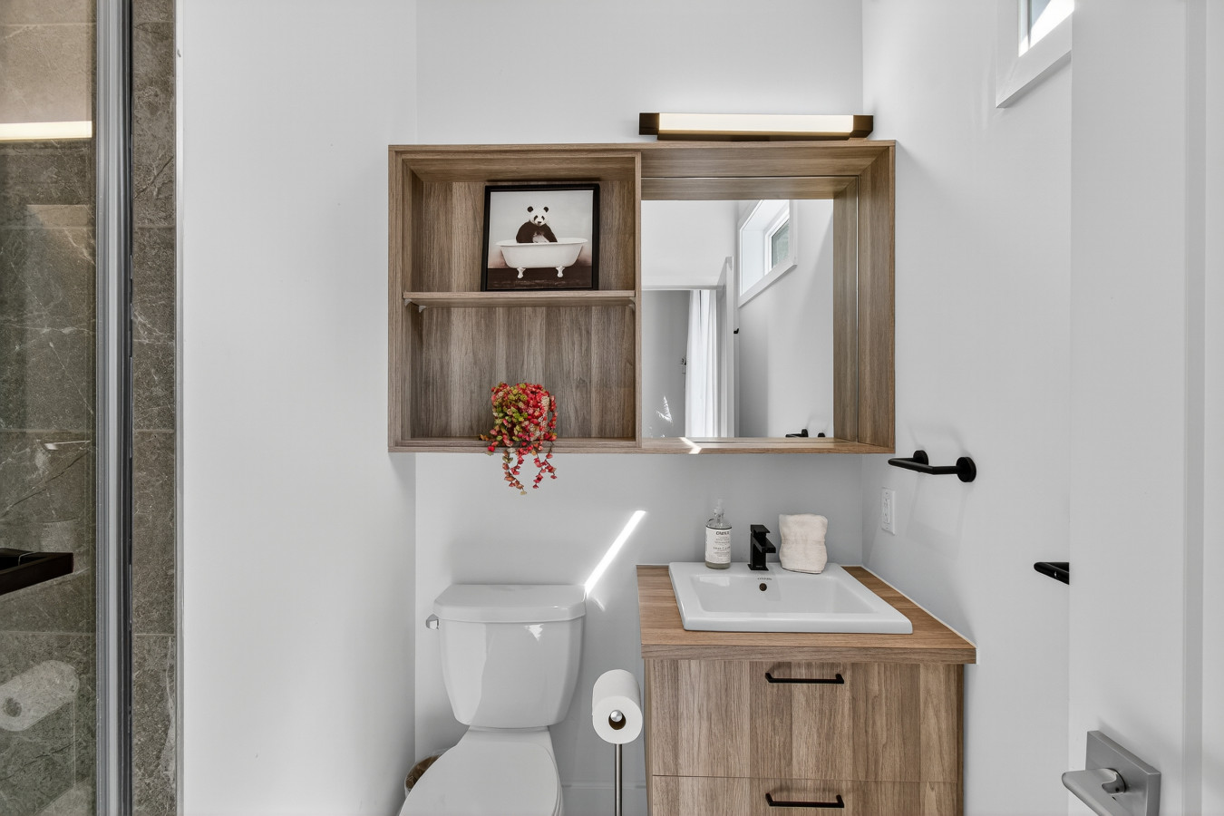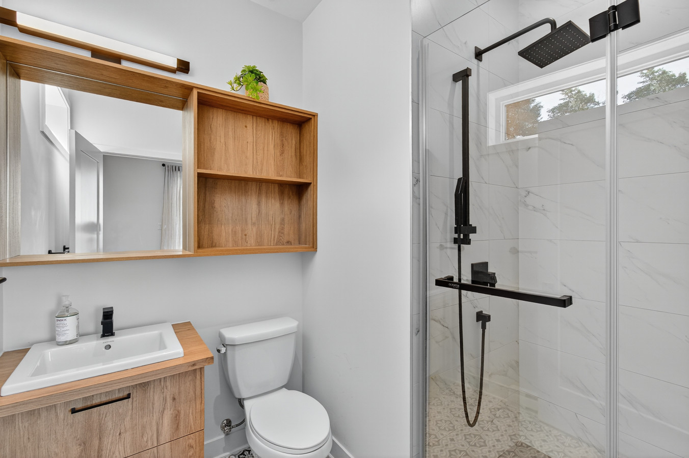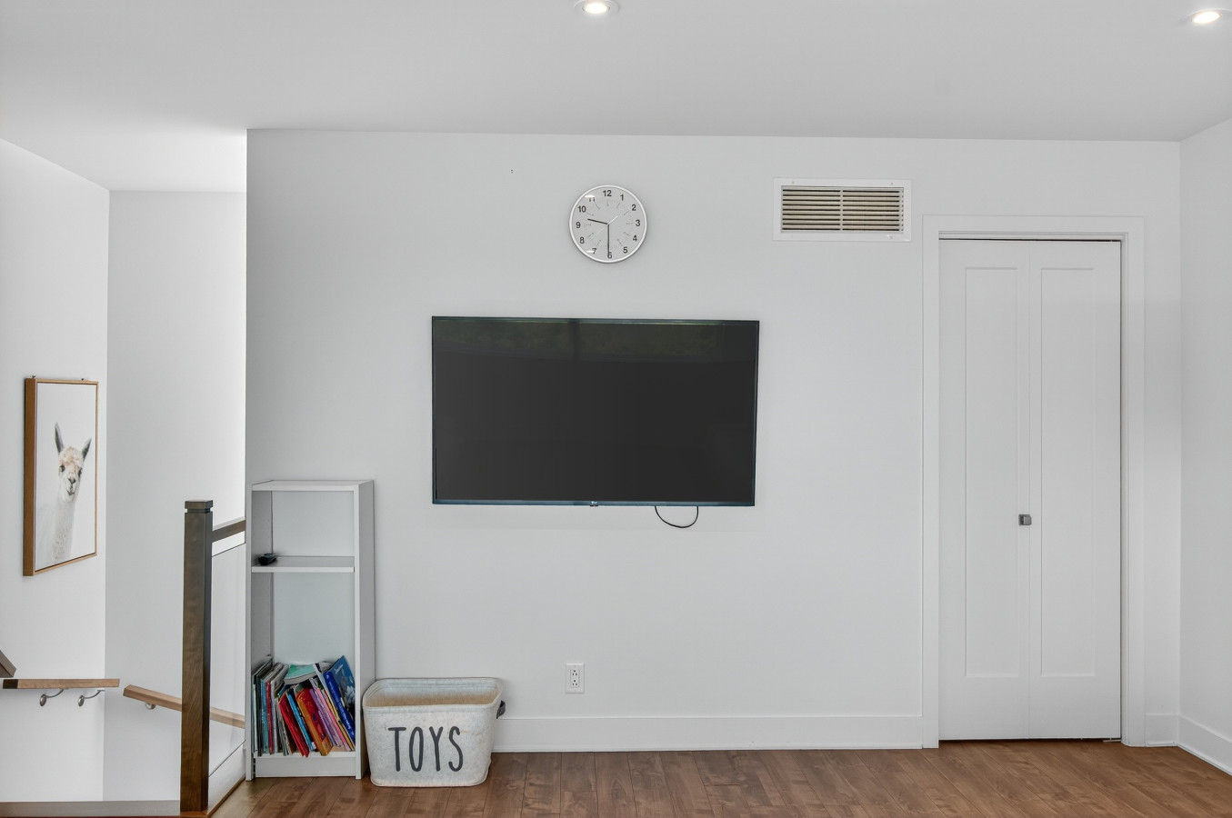 Les deux chambres principales sont situées au rez-de-chaussée et disposent chacune d'un lit King et d'une salle de bains attenante. La chambre 3 dispose d'un lit Queen. La chambre 4 est située au deuxième étage dans la mezzanine et dispose de deux lits superposés simples sur doubles, ainsi que d'une télévision Smart TV à écran plat.