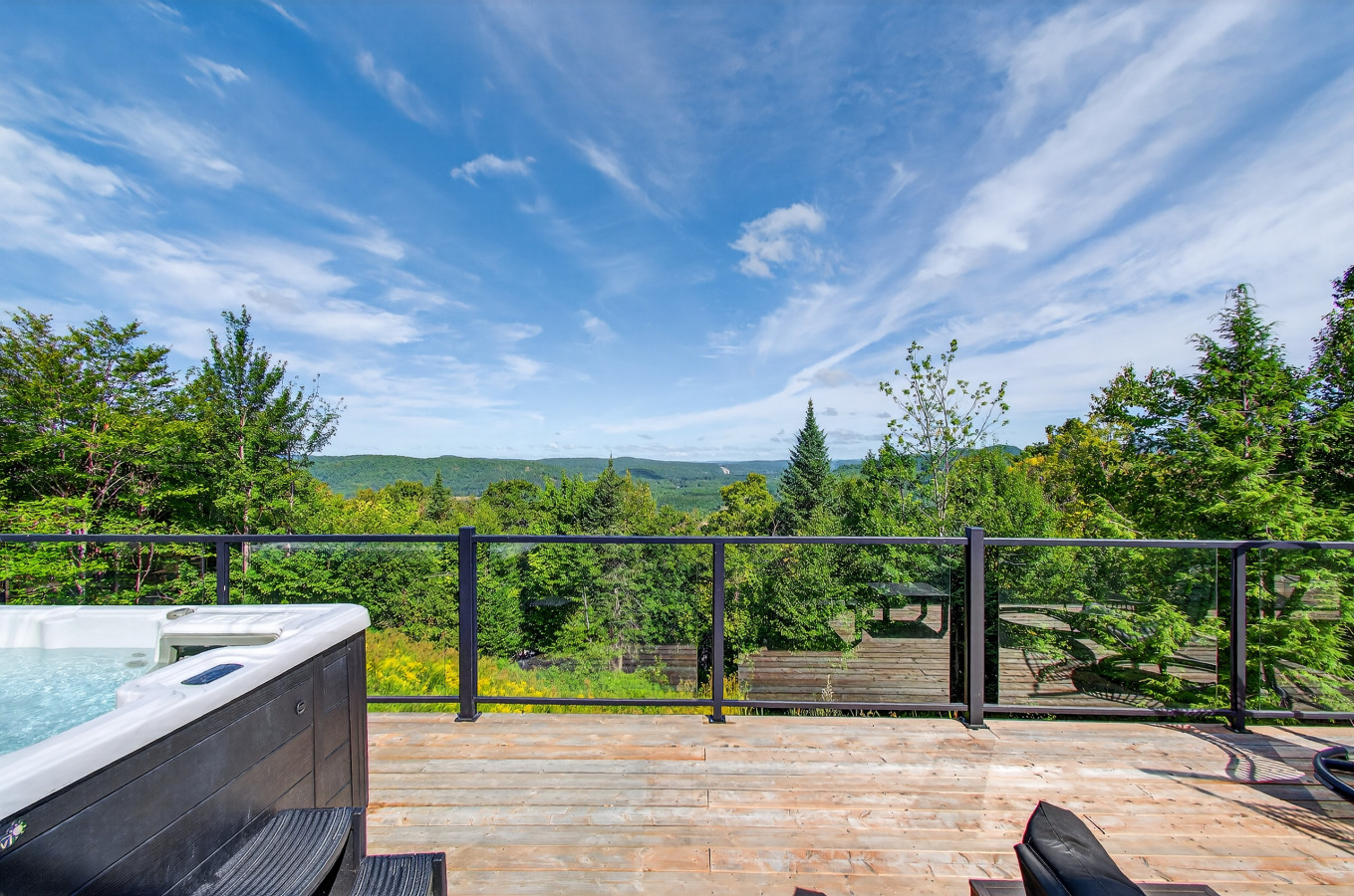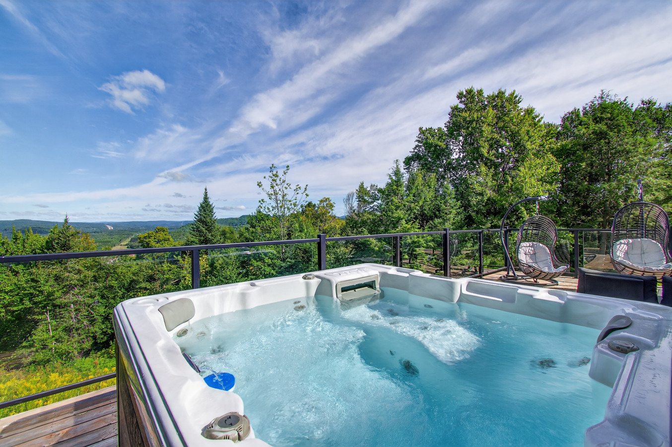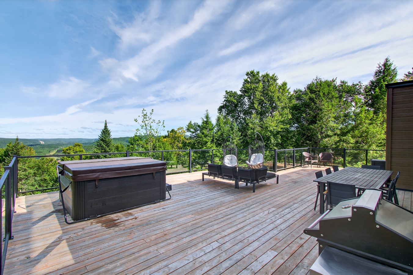 Une grande terrasse supérieure est intégrée au chalet et est idéale pour les repas spéciaux, avec une table à manger extérieure pour 8 personnes et un barbecue. Les hôtes peuvent également profiter de la détente et des bienfaits du jacuzzi extérieur. Faites griller des marshmallows sur le foyer extérieur avec vue sur la station.