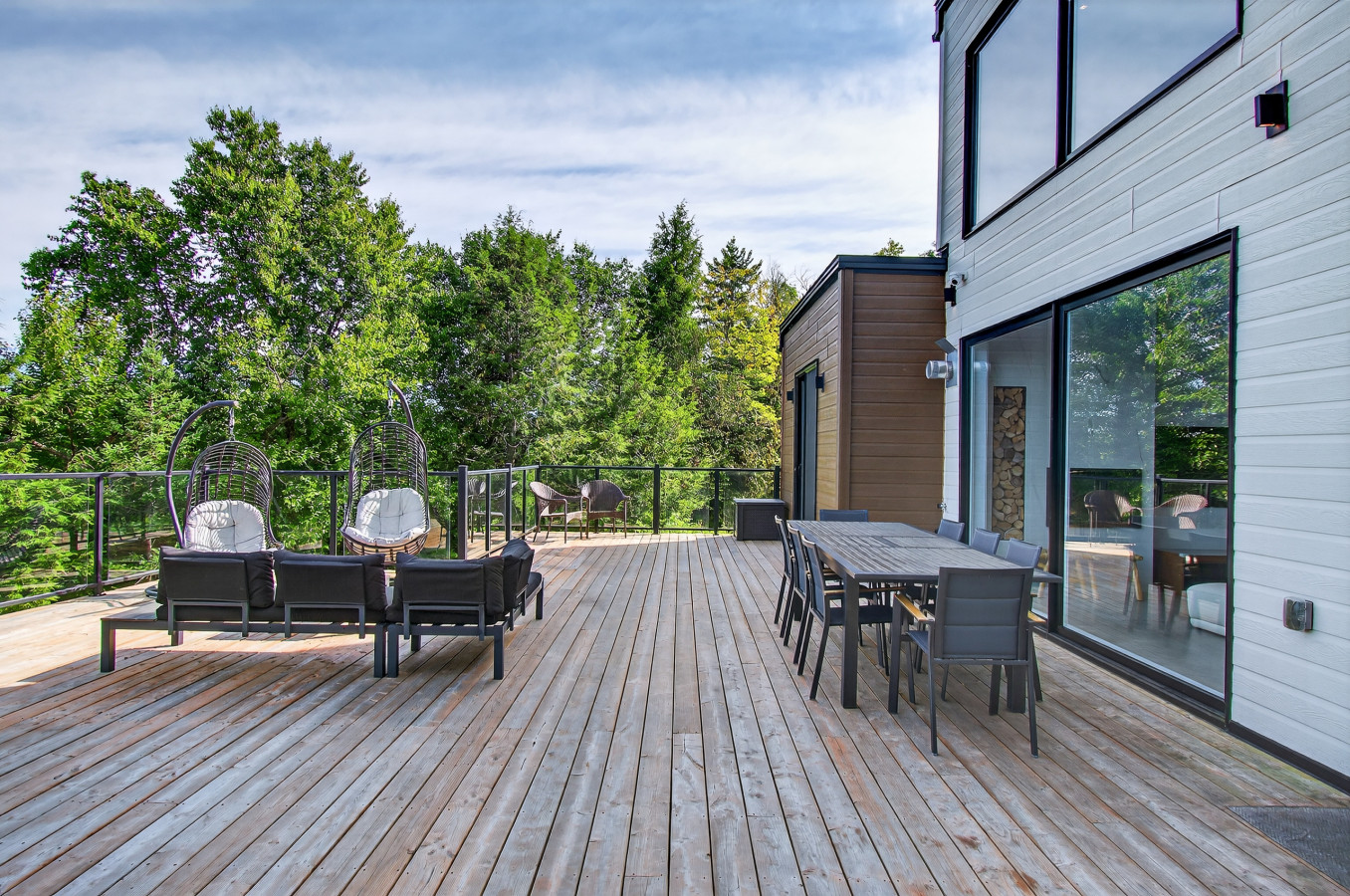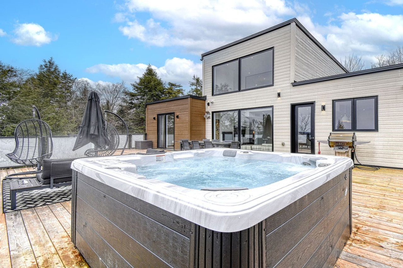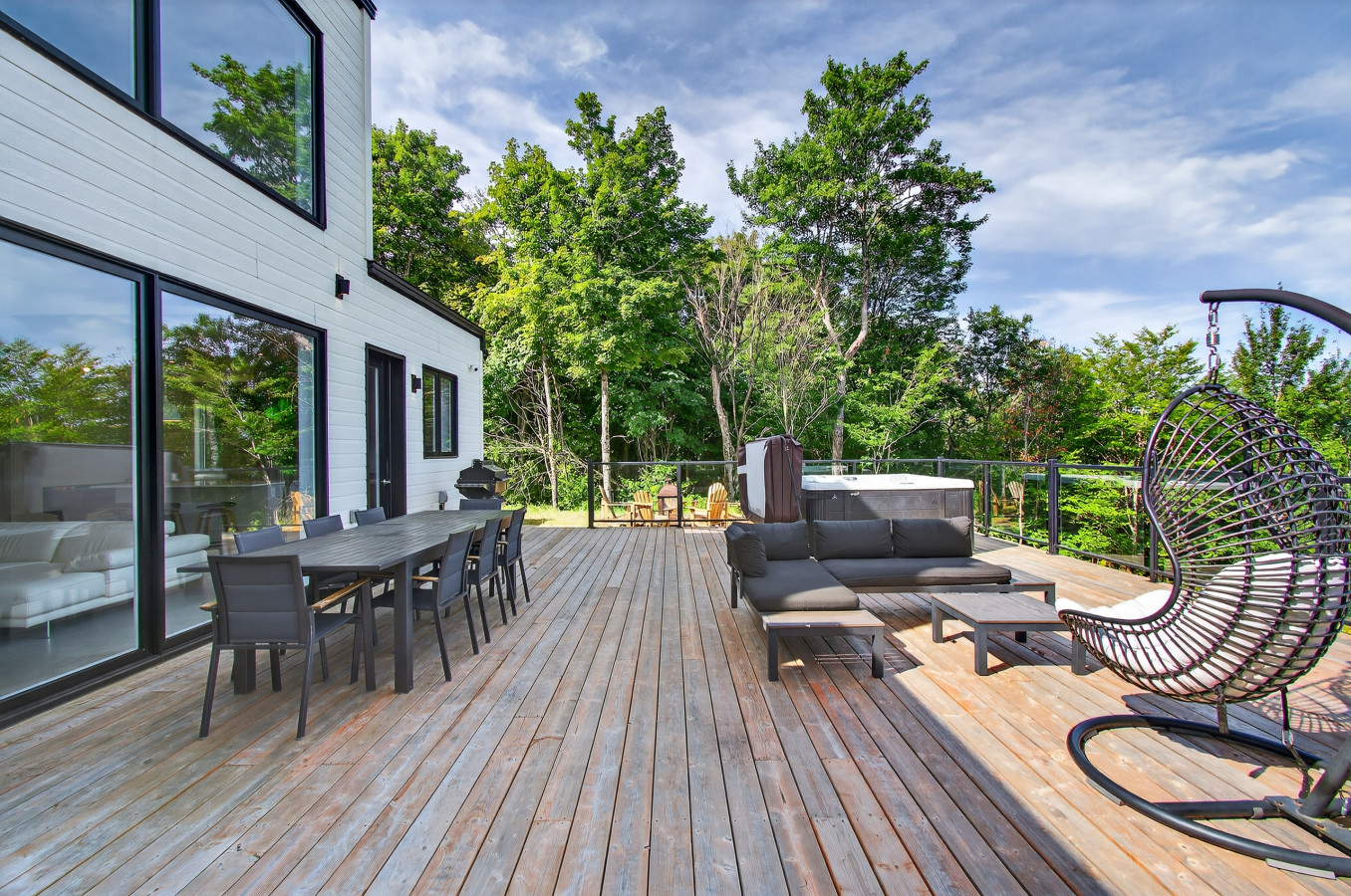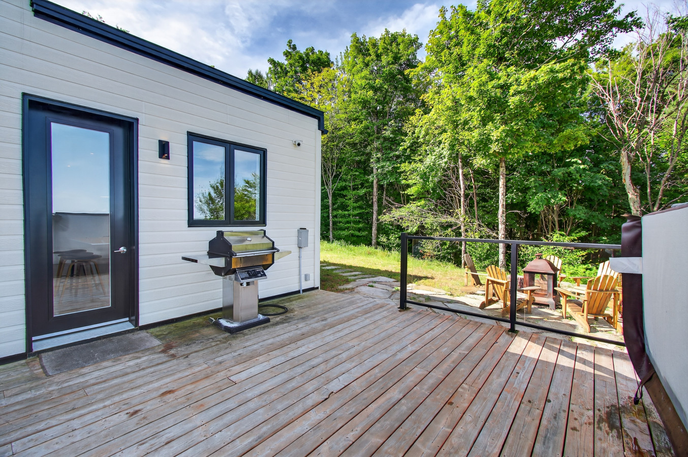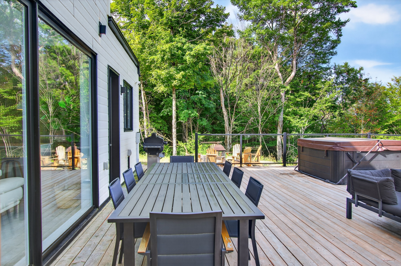 A large upper deck is built into the chalet, and is perfect for special meals with an outdoor dining table for 8 people and a barbecue grill. Guests can also enjoy the relaxation and benefits of the outdoor hot tub. Roast marshmallows on the outdoor fire pit with a view overlooking the resort.