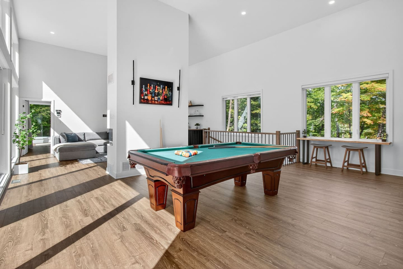 Après une journée en plein air, détendez-vous dans le salon ouvert avec ses sièges confortables, sa cheminée à gaz et sa télévision connectée. Défiez vos amis à une partie de billard ou réunissez-vous pour une soirée en famille.