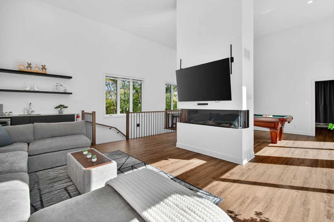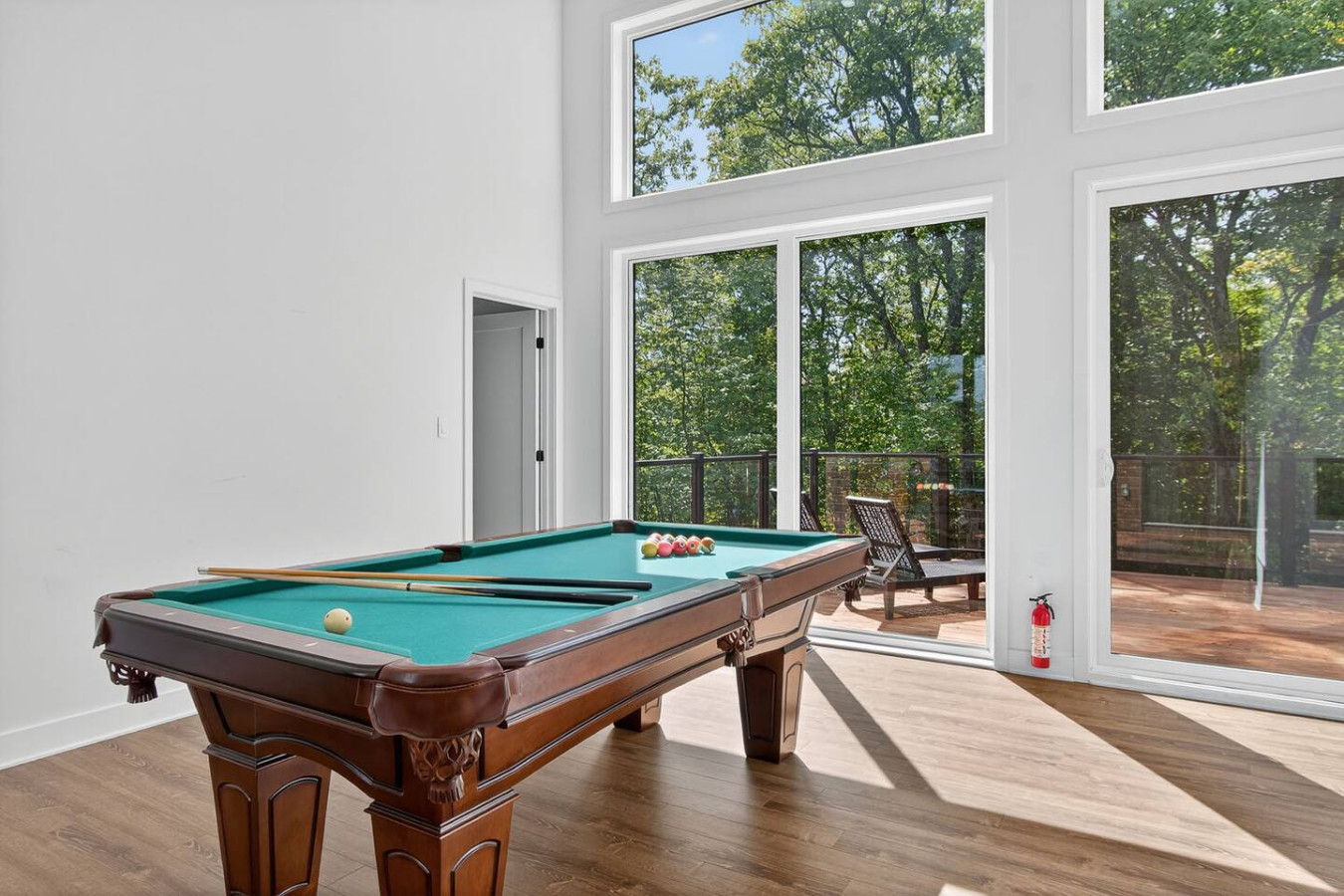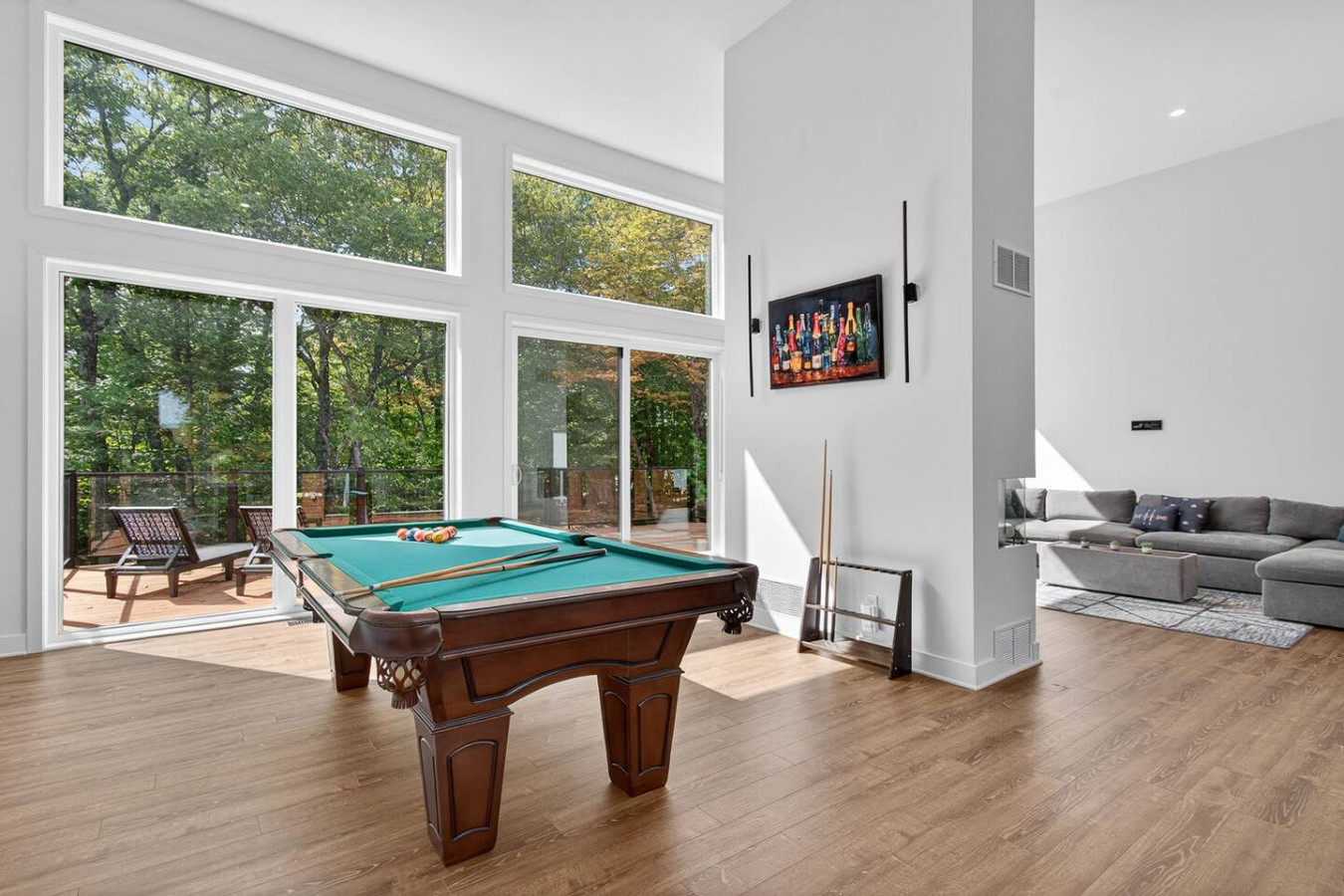 After a day outdoors, relax in the open living area with cozy seating, a gas fireplace, and Smart TV. Challenge friends to a game of pool or gather for a family night in.