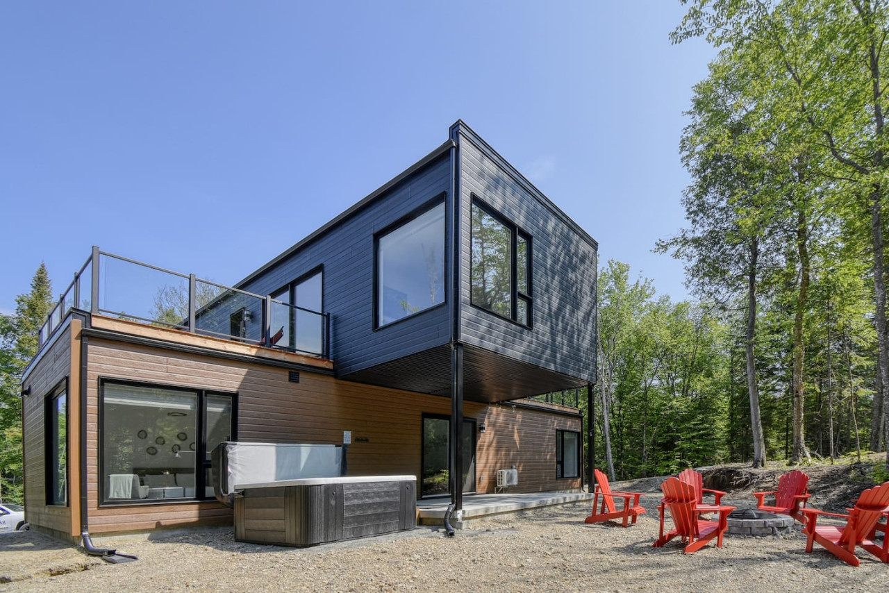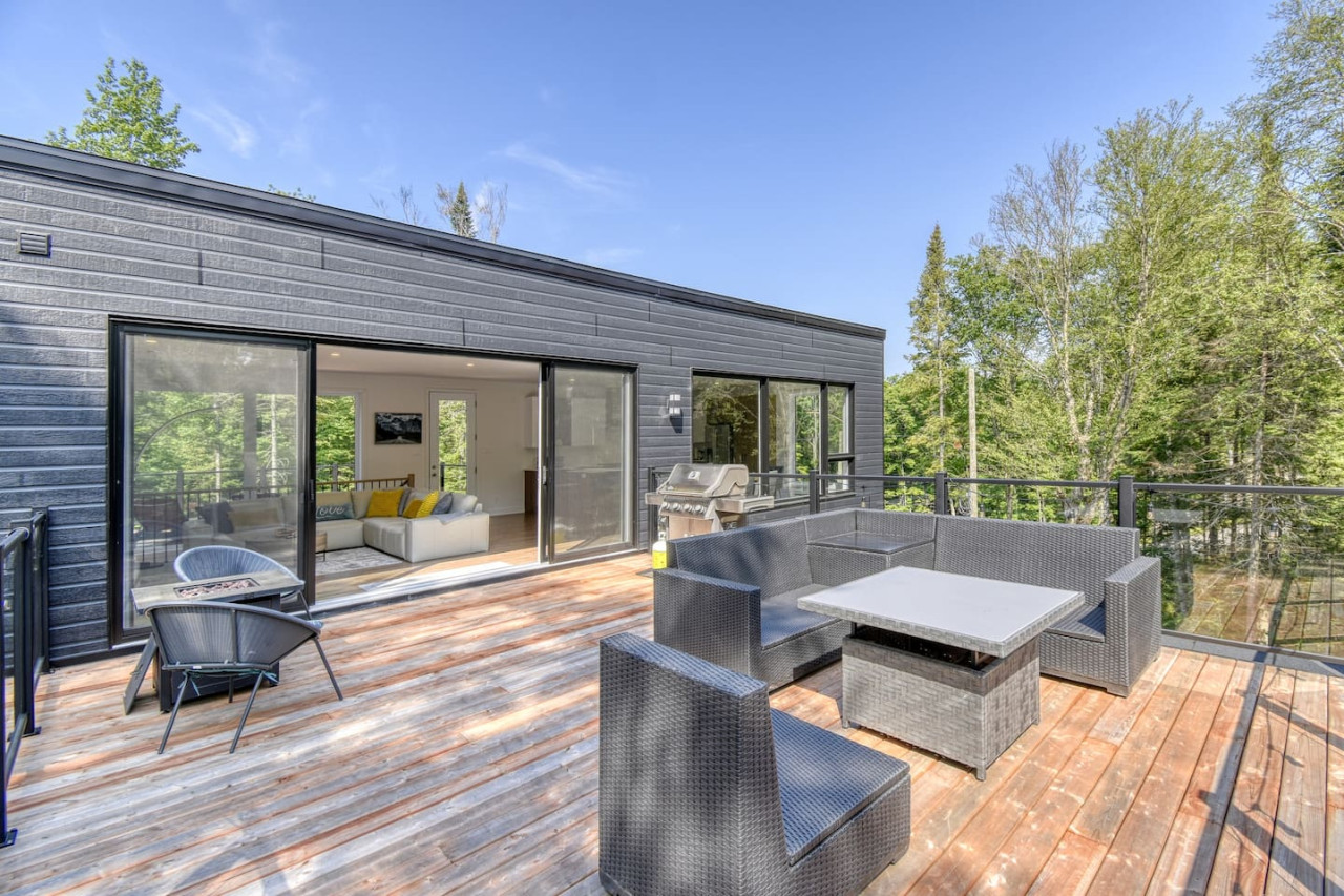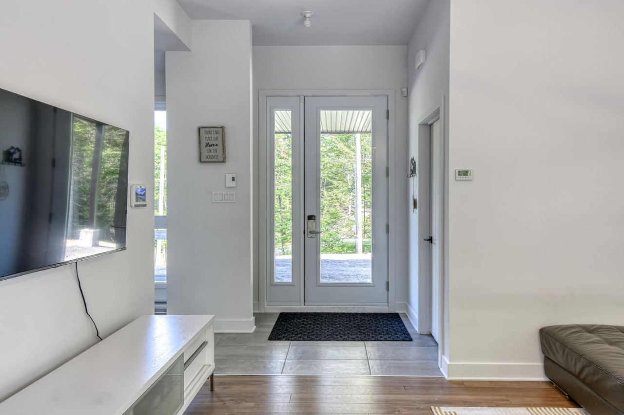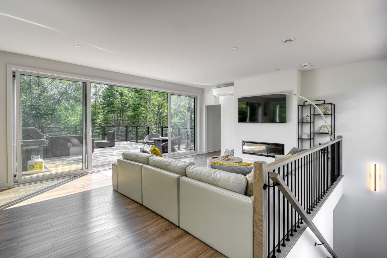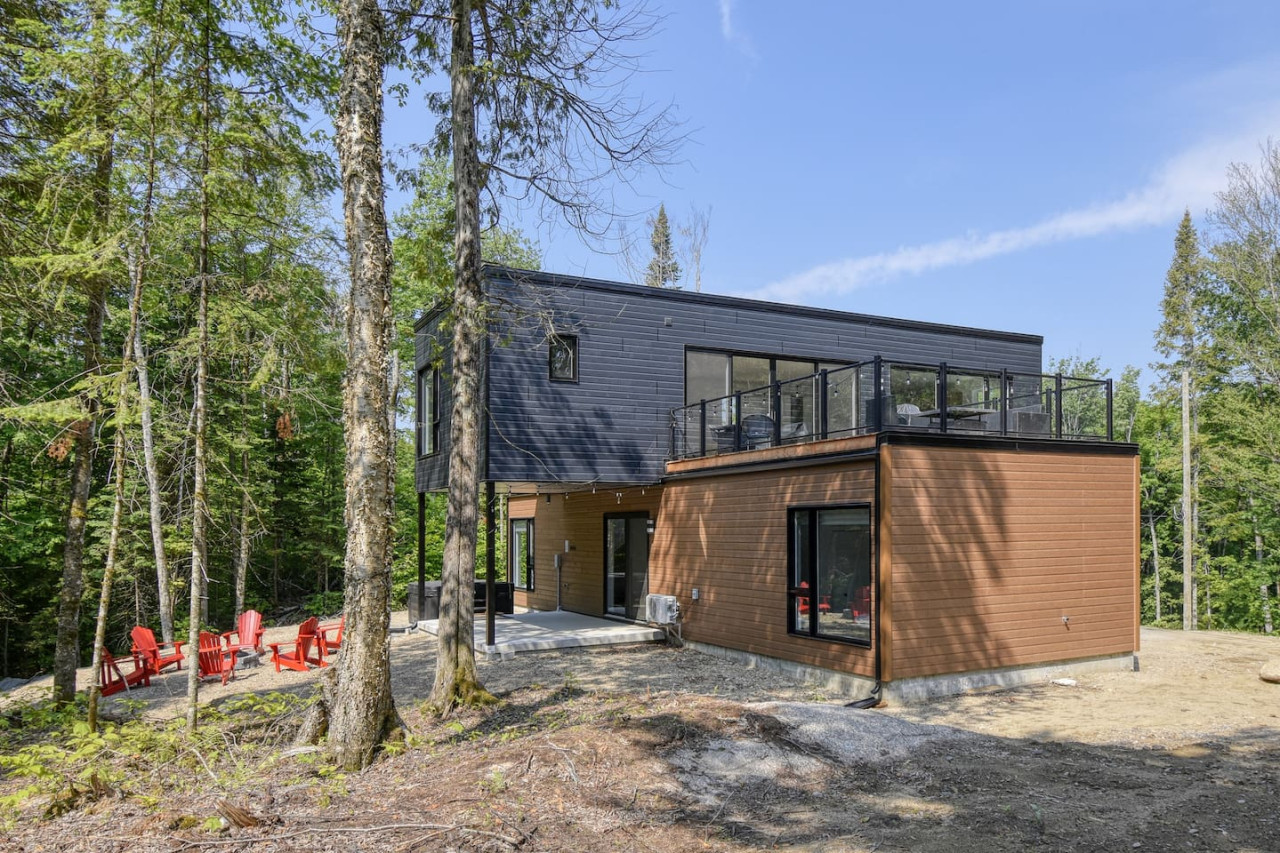 Nous vous invitons à profiter de vos week-ends ou de vos vacances à Mont-Tremblant dans notre maison moderne et confortable. Ce chalet, situé en pleine forêt, est un havre de paix. La combinaison d'un emplacement privé, d'aménagements extérieurs et d'un design chaleureux vous permettra de vous détendre en famille ou entre amis après un après-midi rempli d'activités. La maison peut accueillir confortablement jusqu'à 9 personnes et est située à seulement 18 minutes du village piétonnier et de la station de ski de Mont-Tremblant.