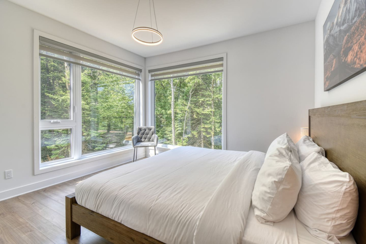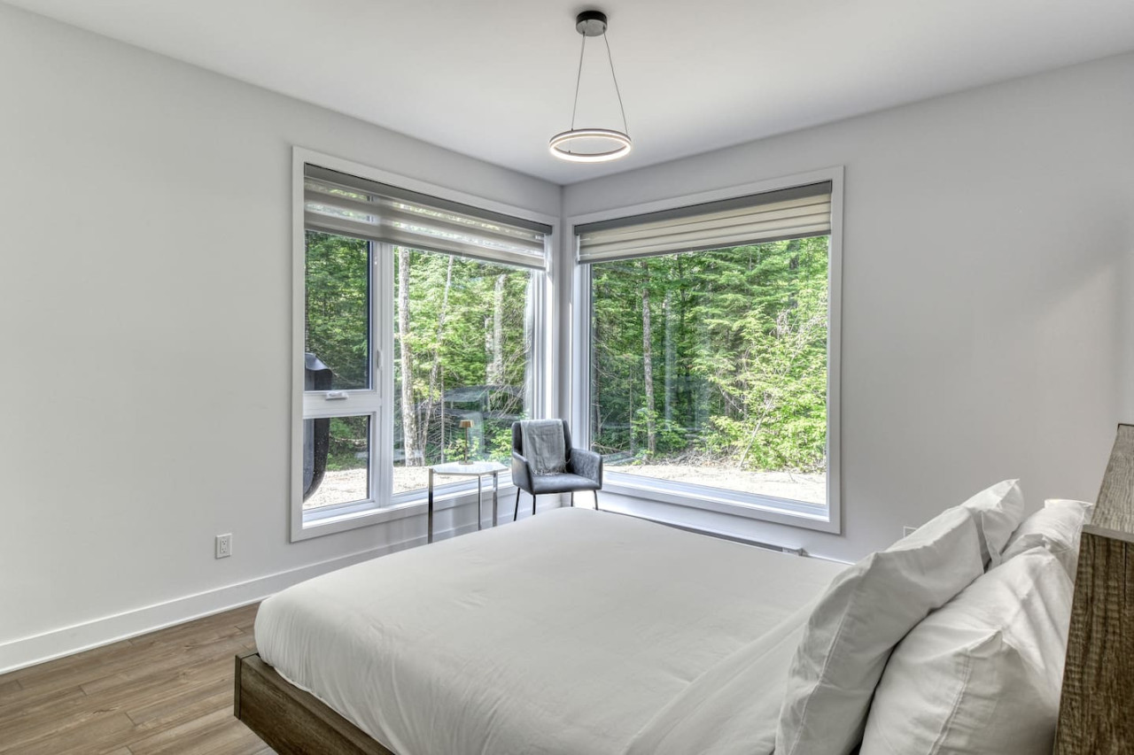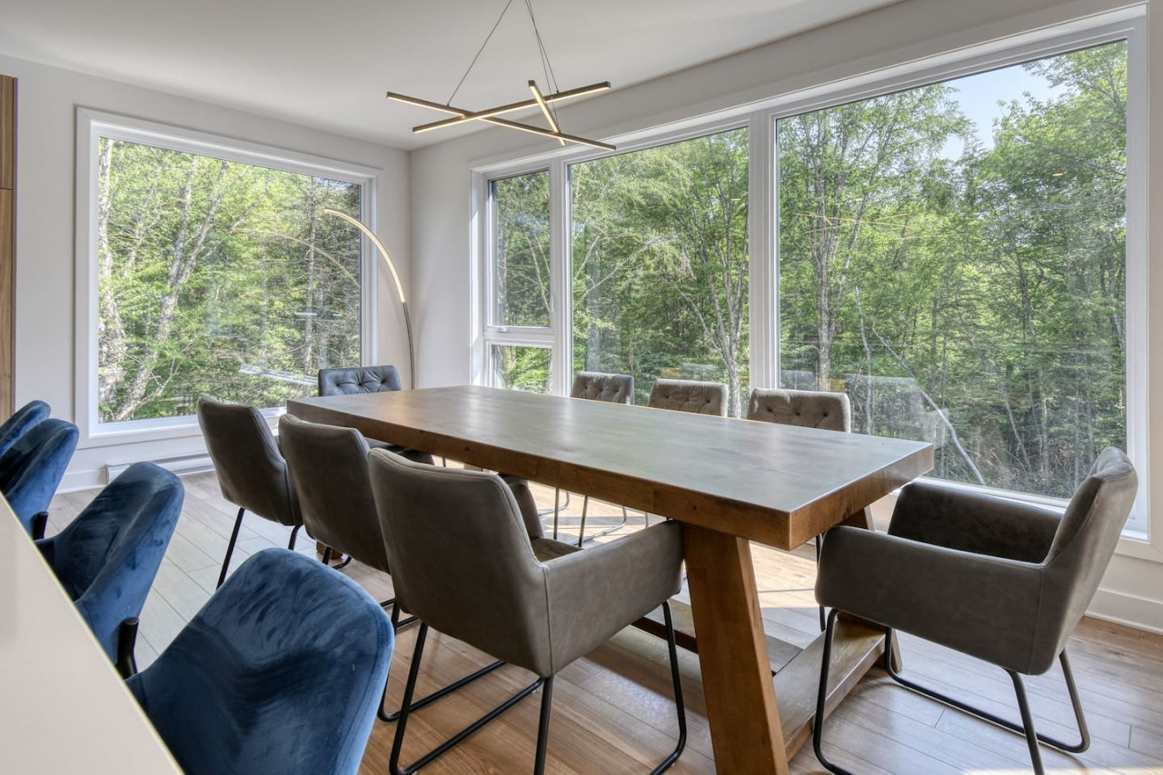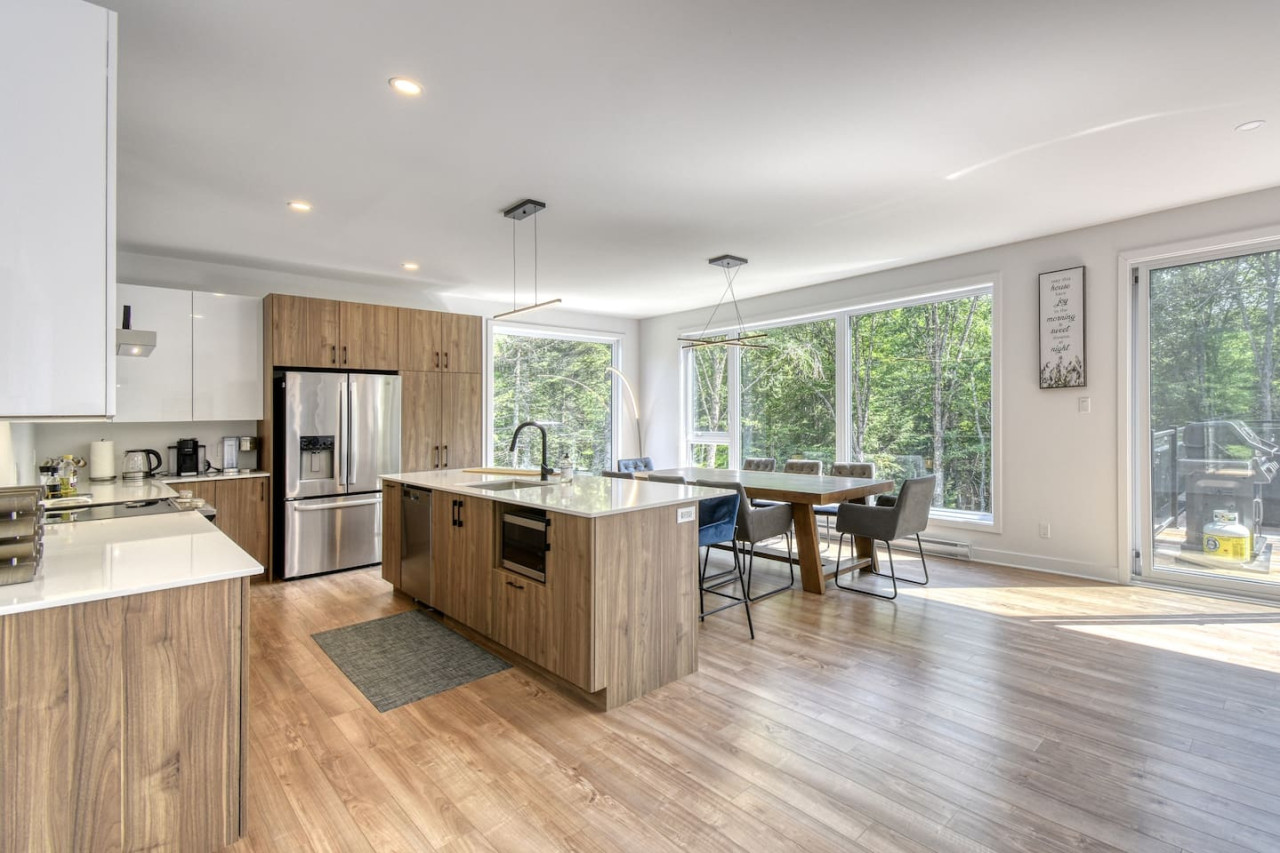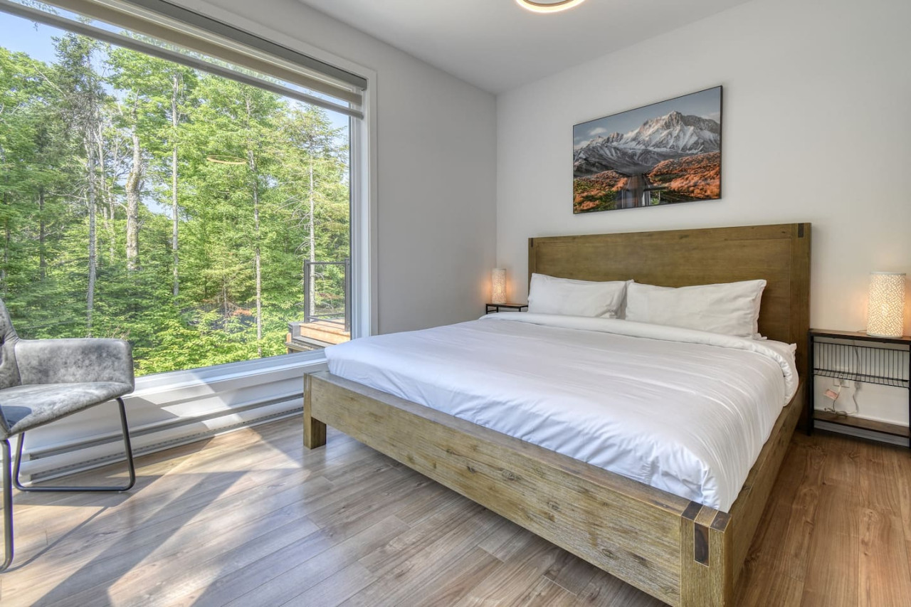 Nous vous invitons à profiter de vos week-ends ou de vos vacances à Mont-Tremblant dans notre maison moderne et confortable. Ce chalet, situé en pleine forêt, est un havre de paix. La combinaison d'un emplacement privé, d'aménagements extérieurs et d'un design chaleureux vous permettra de vous détendre en famille ou entre amis après un après-midi rempli d'activités. La maison peut accueillir confortablement jusqu'à 9 personnes et est située à seulement 18 minutes du village piétonnier et de la station de ski de Mont-Tremblant.