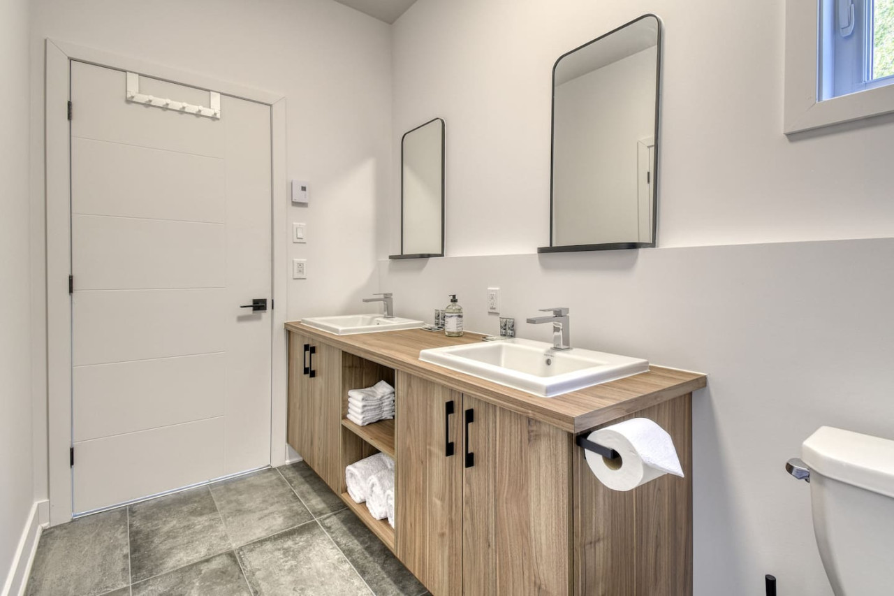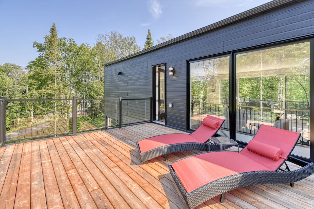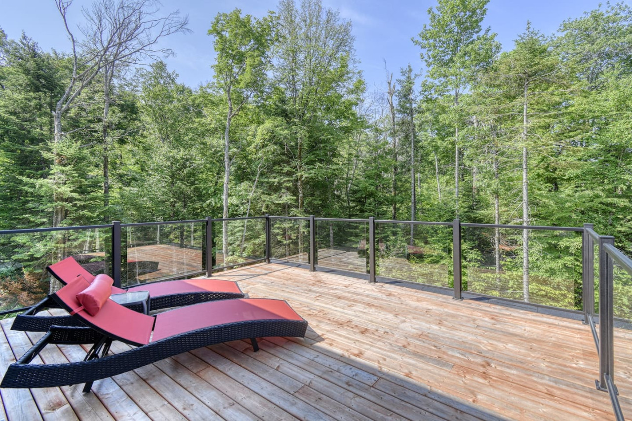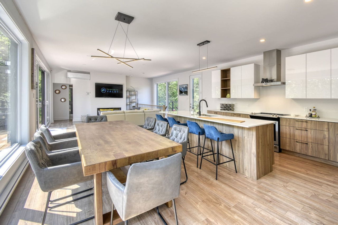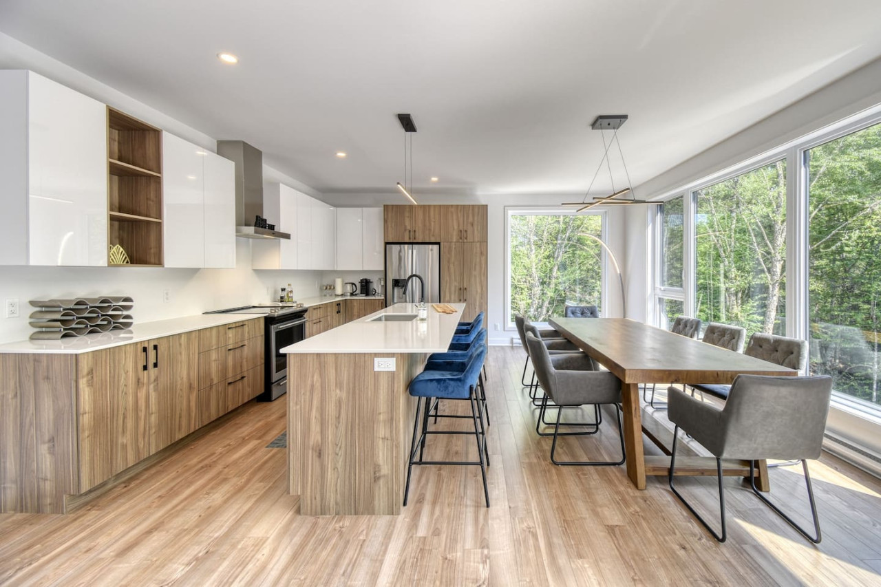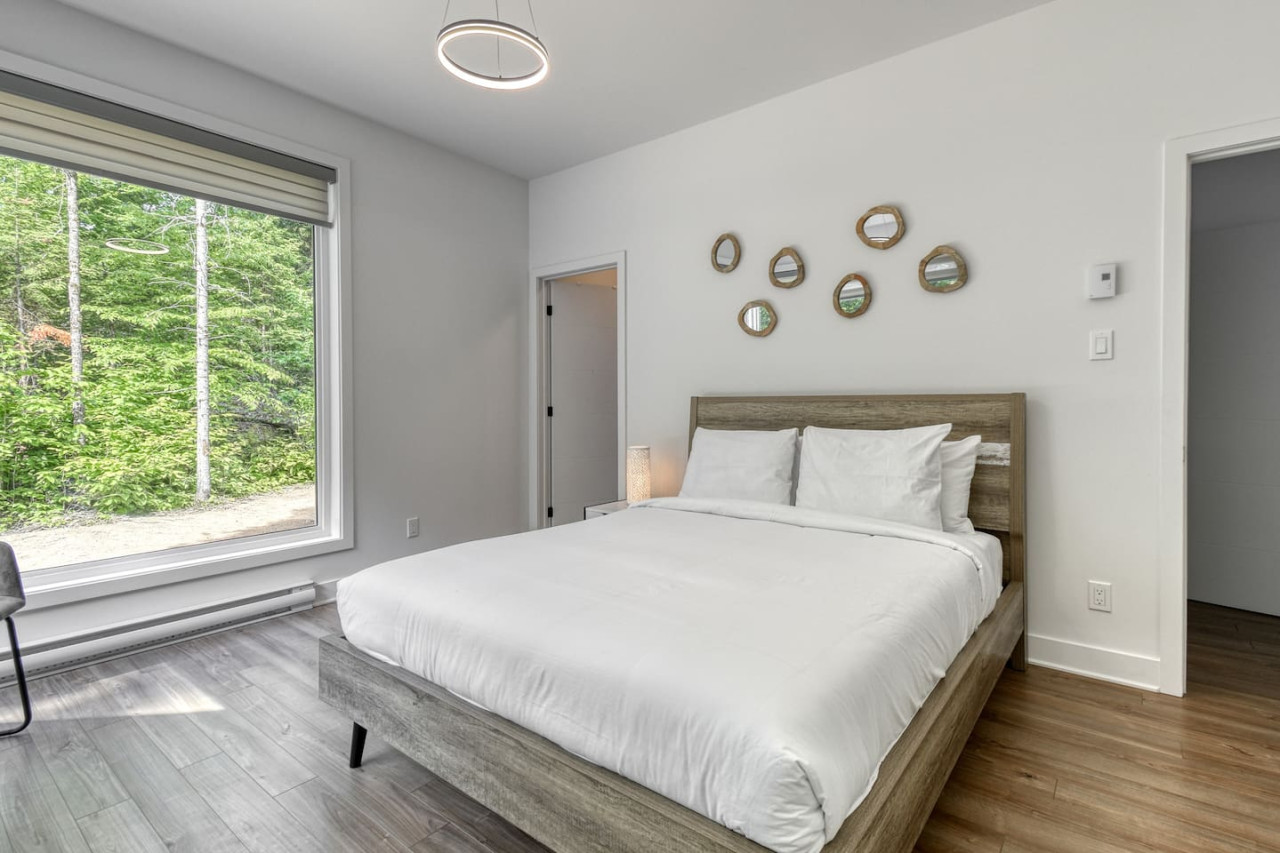 Nous vous invitons à profiter de vos week-ends ou de vos vacances à Mont-Tremblant dans notre maison moderne et confortable. Ce chalet, situé en pleine forêt, est un havre de paix. La combinaison d'un emplacement privé, d'aménagements extérieurs et d'un design chaleureux vous permettra de vous détendre en famille ou entre amis après un après-midi rempli d'activités. La maison peut accueillir confortablement jusqu'à 9 personnes et est située à seulement 18 minutes du village piétonnier et de la station de ski de Mont-Tremblant.