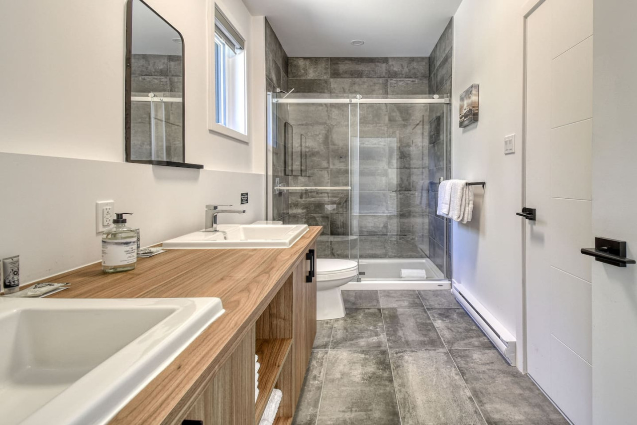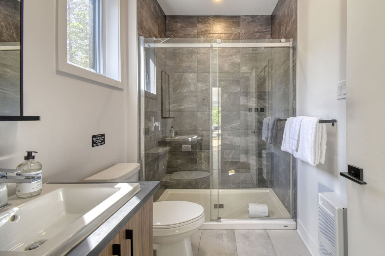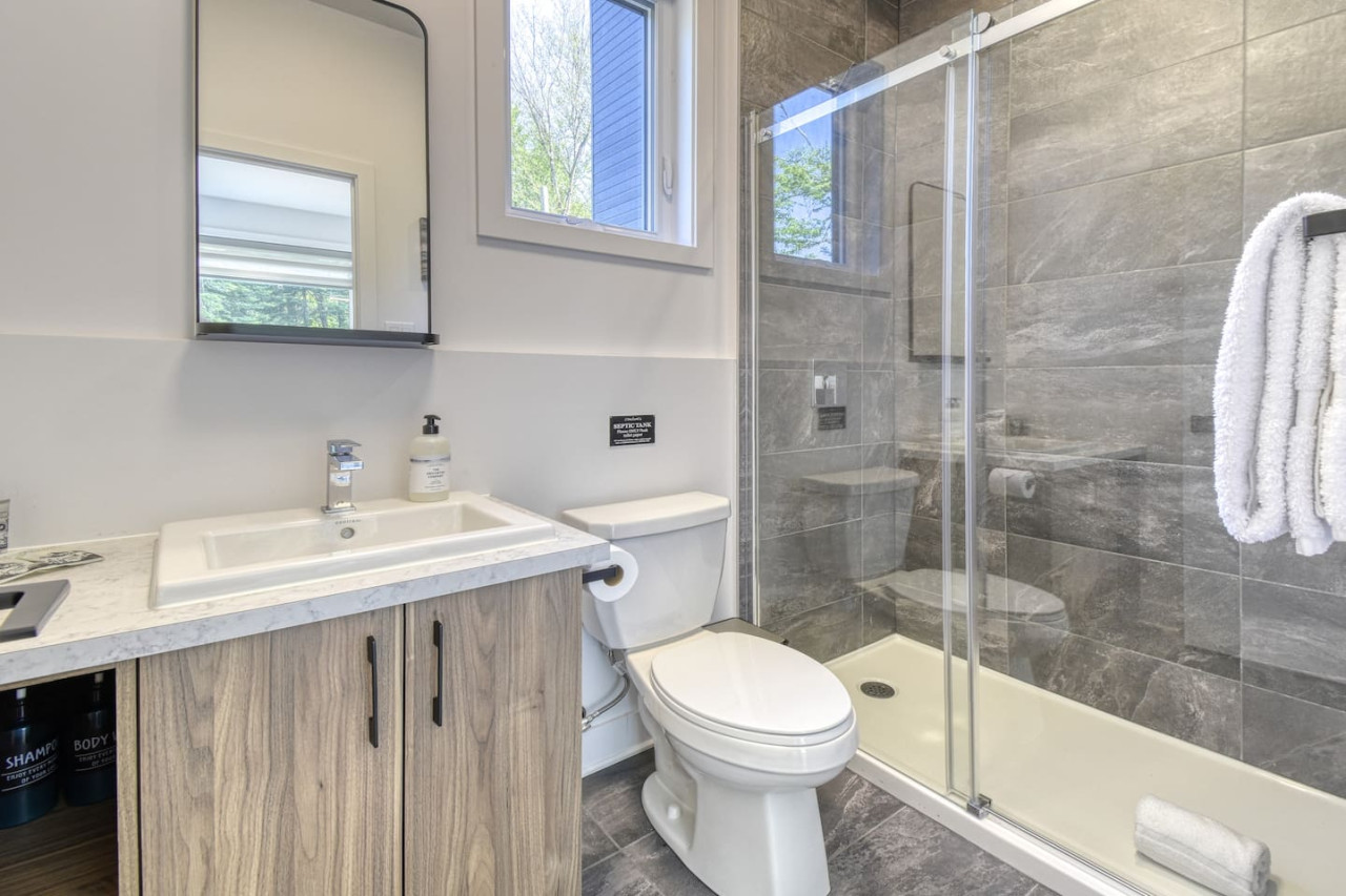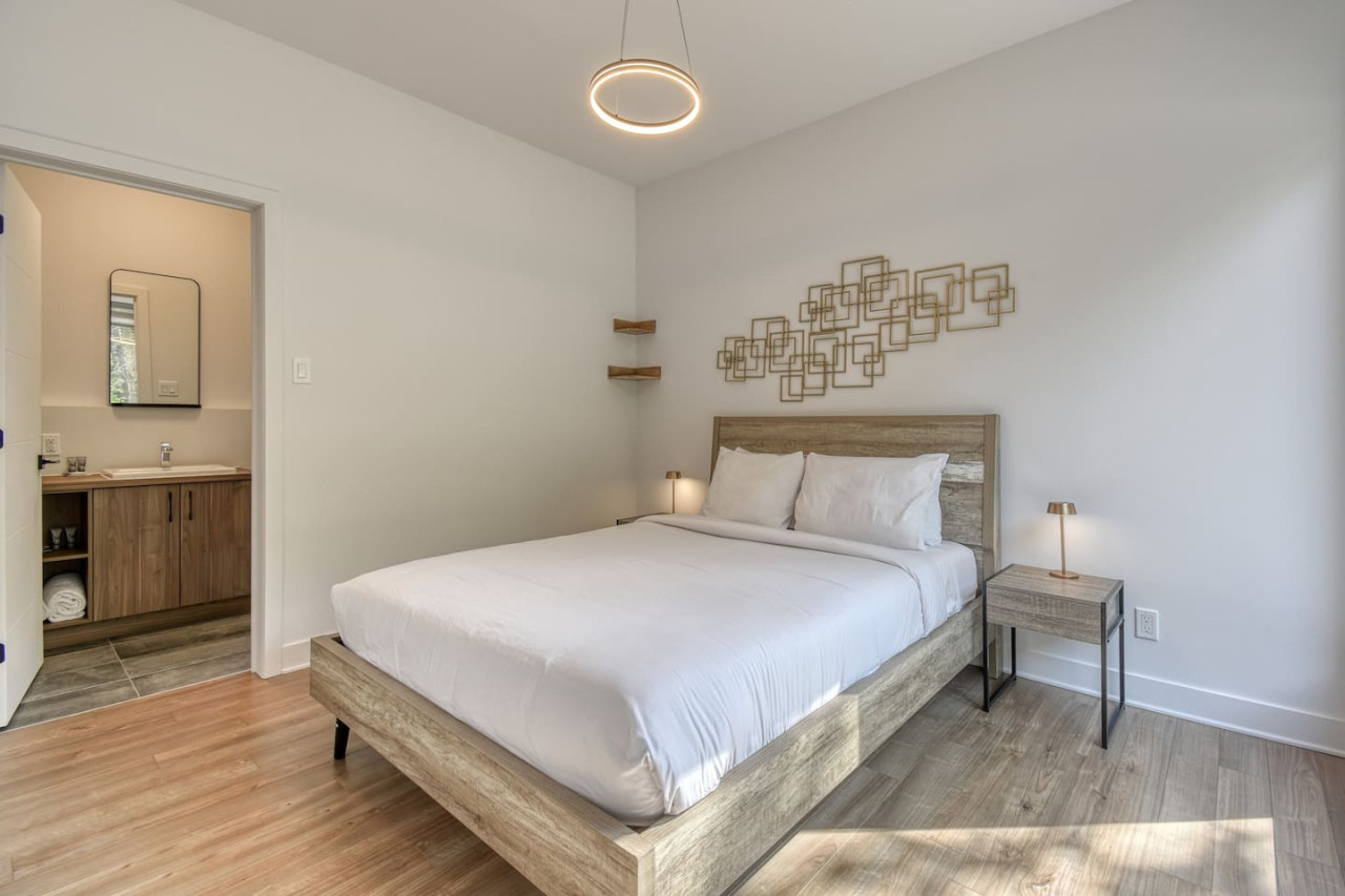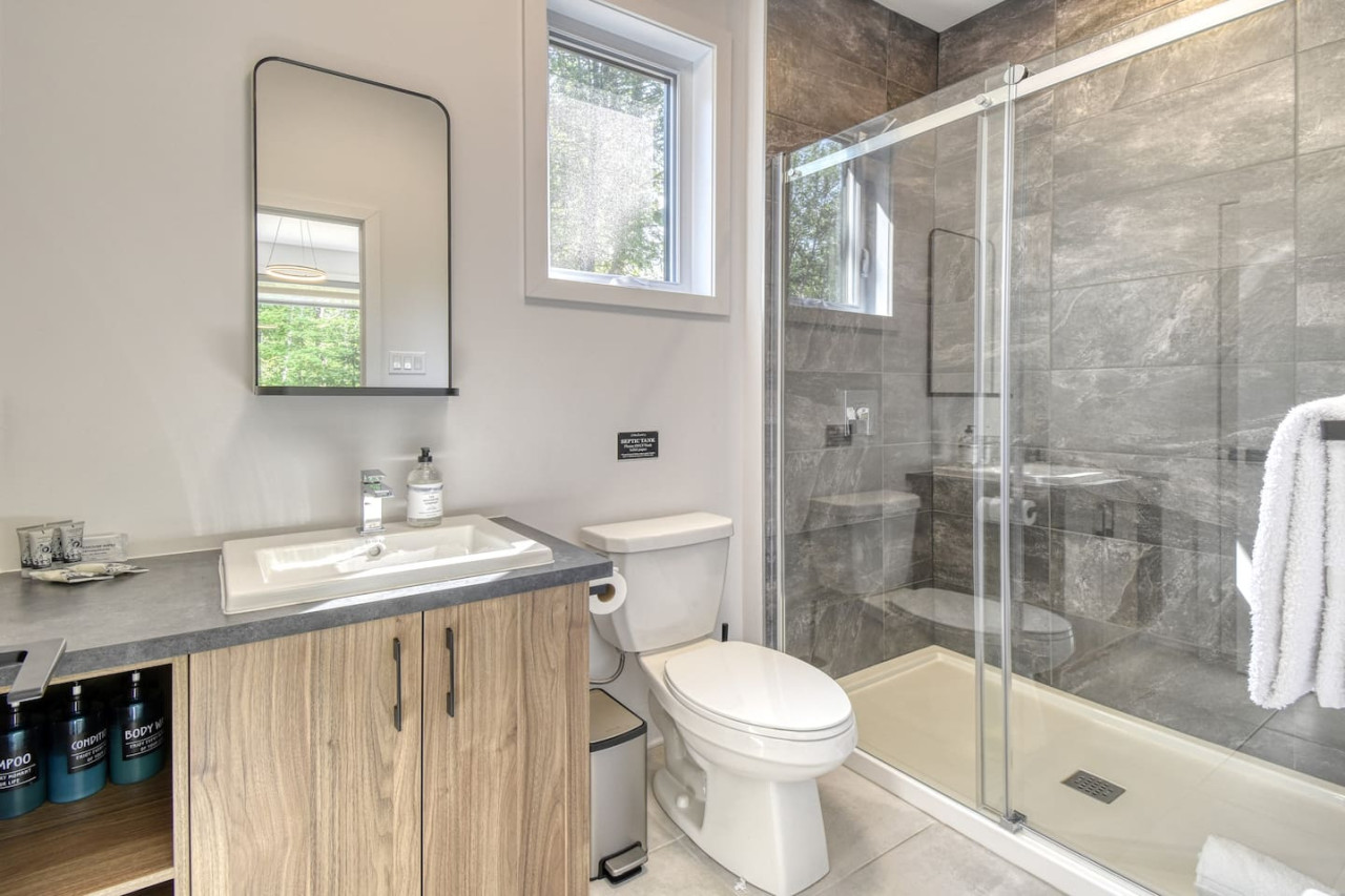 Nous vous invitons à profiter de vos week-ends ou de vos vacances à Mont-Tremblant dans notre maison moderne et confortable. Ce chalet, situé en pleine forêt, est un havre de paix. La combinaison d'un emplacement privé, d'aménagements extérieurs et d'un design chaleureux vous permettra de vous détendre en famille ou entre amis après un après-midi rempli d'activités. La maison peut accueillir confortablement jusqu'à 9 personnes et est située à seulement 18 minutes du village piétonnier et de la station de ski de Mont-Tremblant.