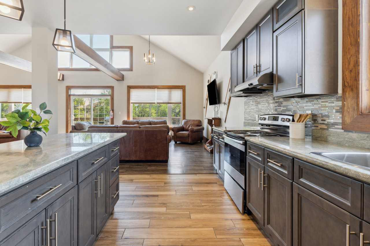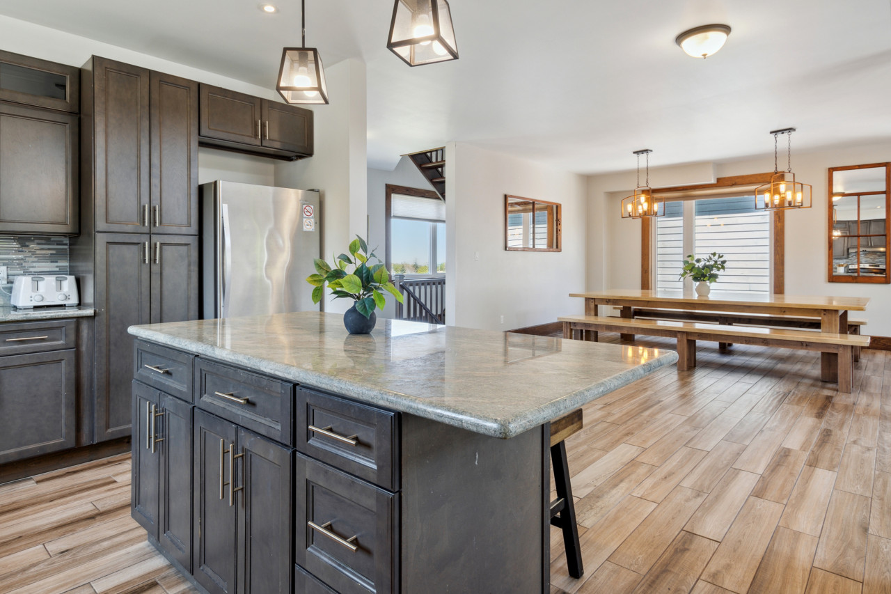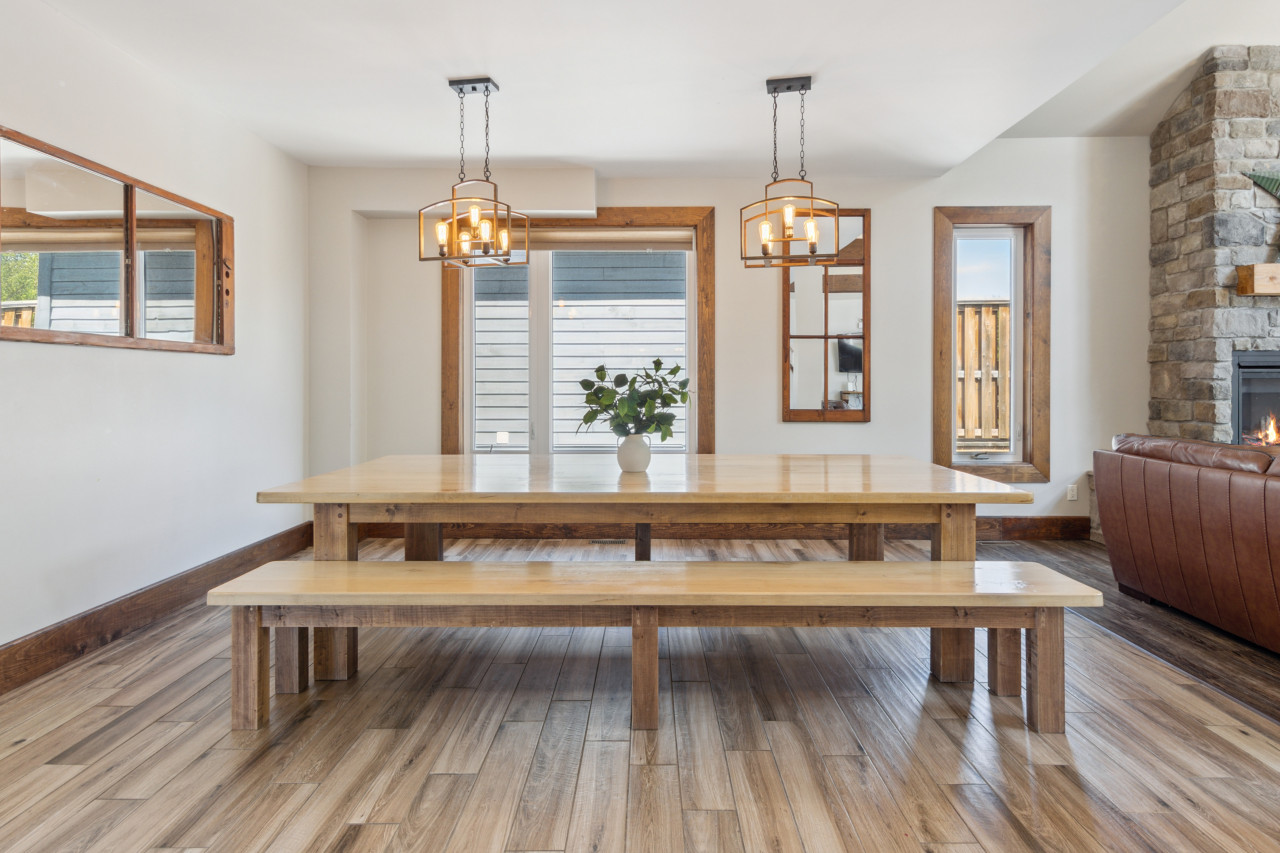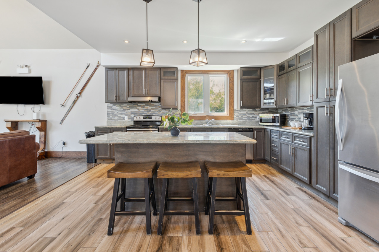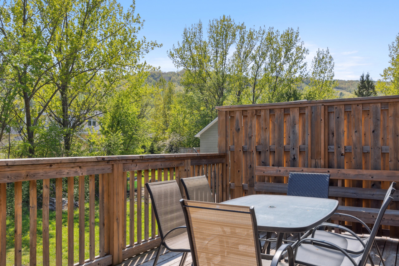 On the upper level, you'll find a fully equipped kitchen, a spacious dining room, and a cozy living room complete with a gas fireplace and a generous 58" flat screen smart HD TV. Step out onto the large deck, where views of the ski hills await you.