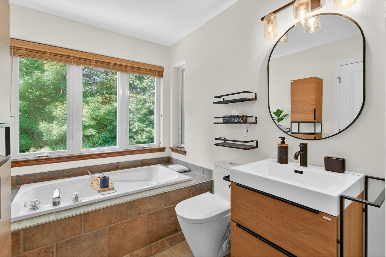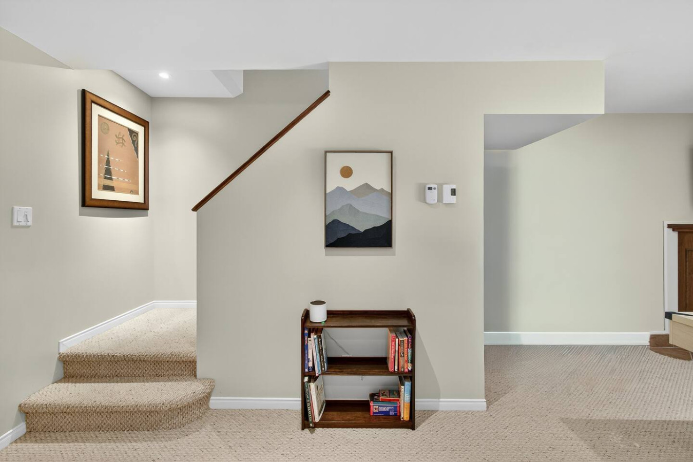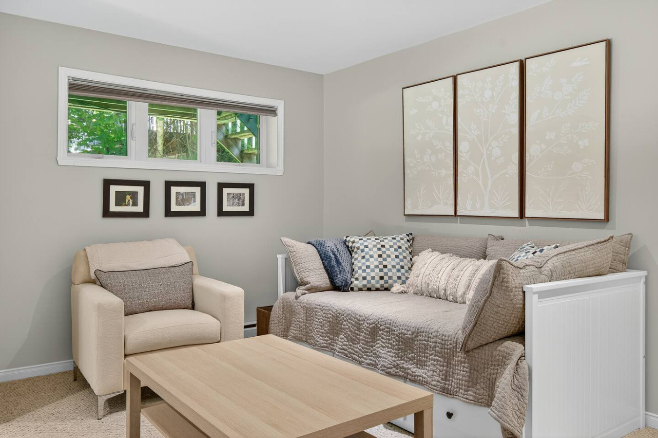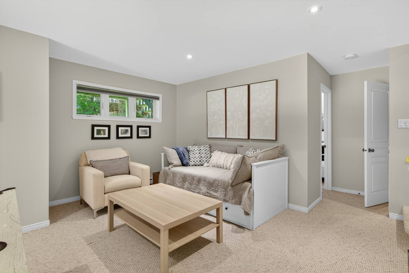 The garden level floor features a cozy den with another Smart TV, a gas fireplace, a pool table for games night and a brand new spa just outside, ready for deep relaxation.
