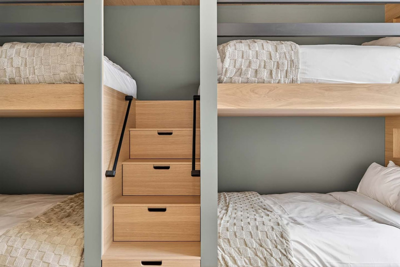 Chambre 5 : 2 lits superposés doubles (niveau jardin)